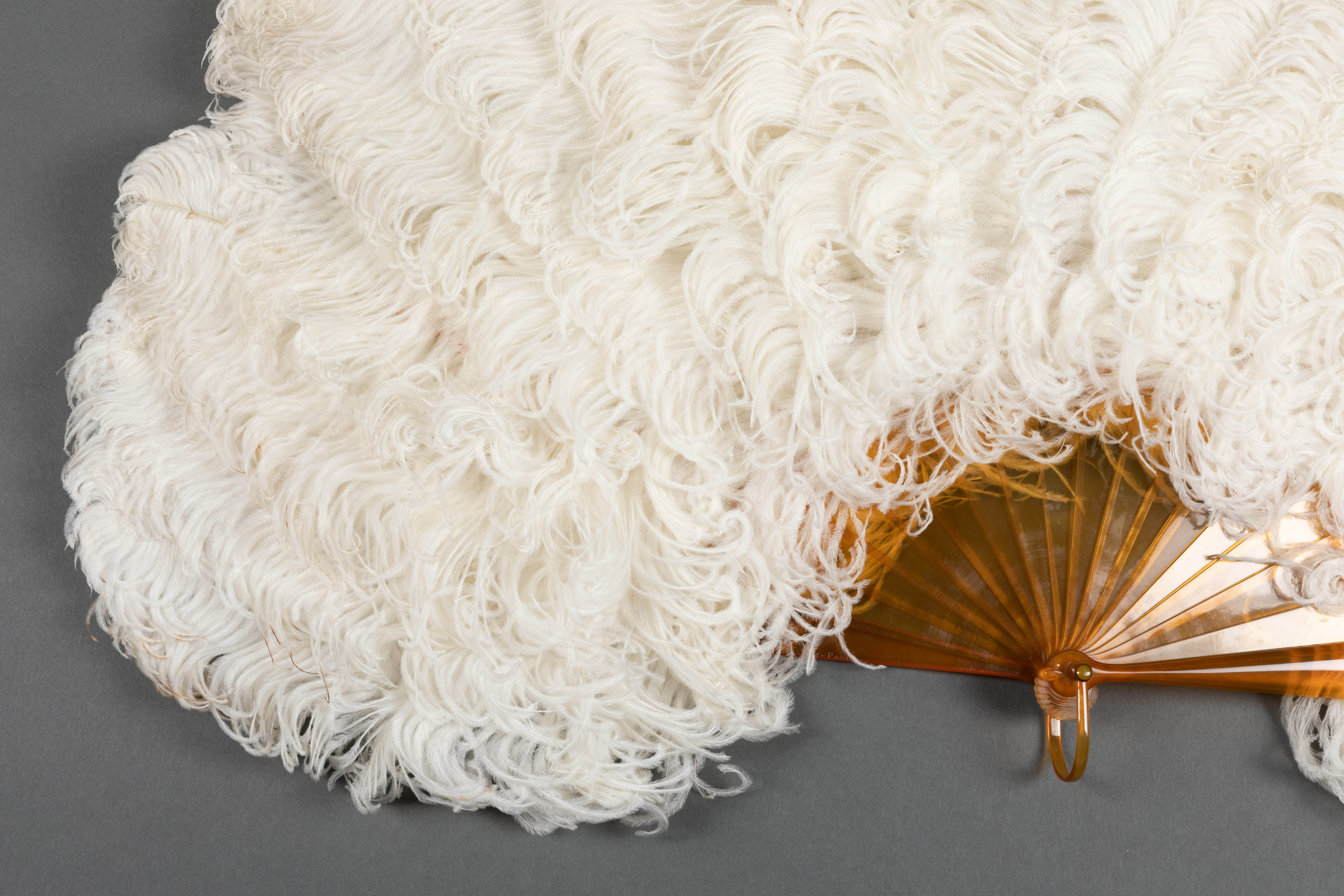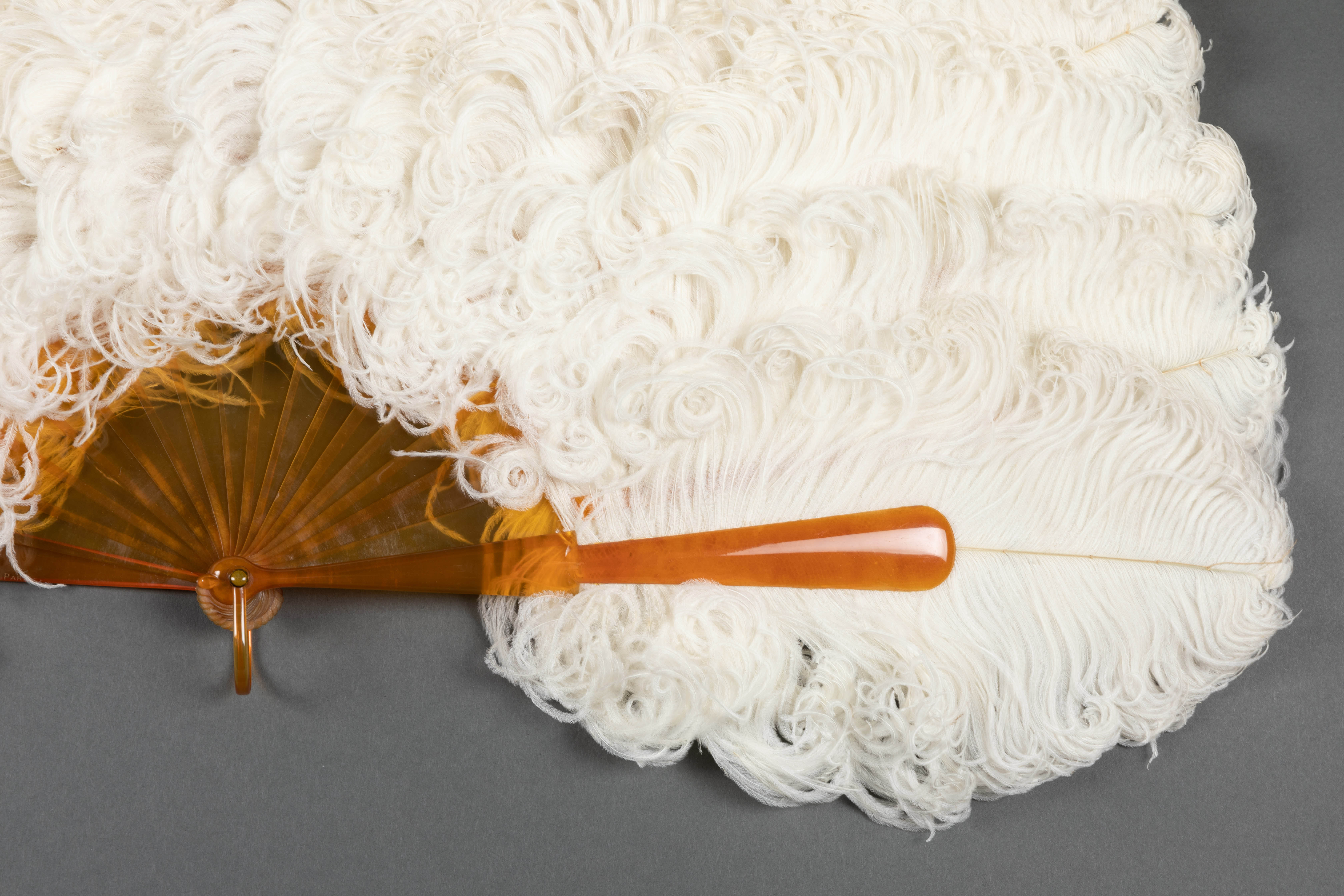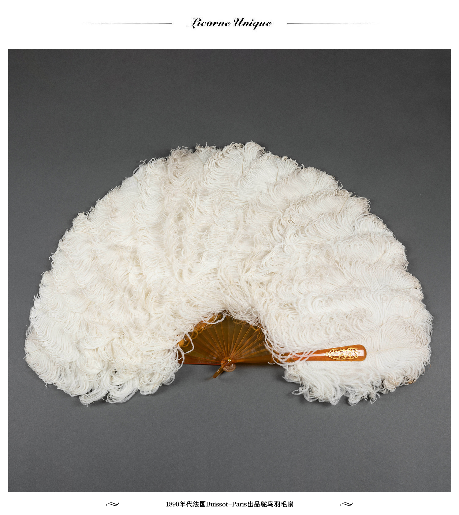 独角鹿西洋古董1890年代法国Buissot-Paris出品鸵⻦羽毛折扇