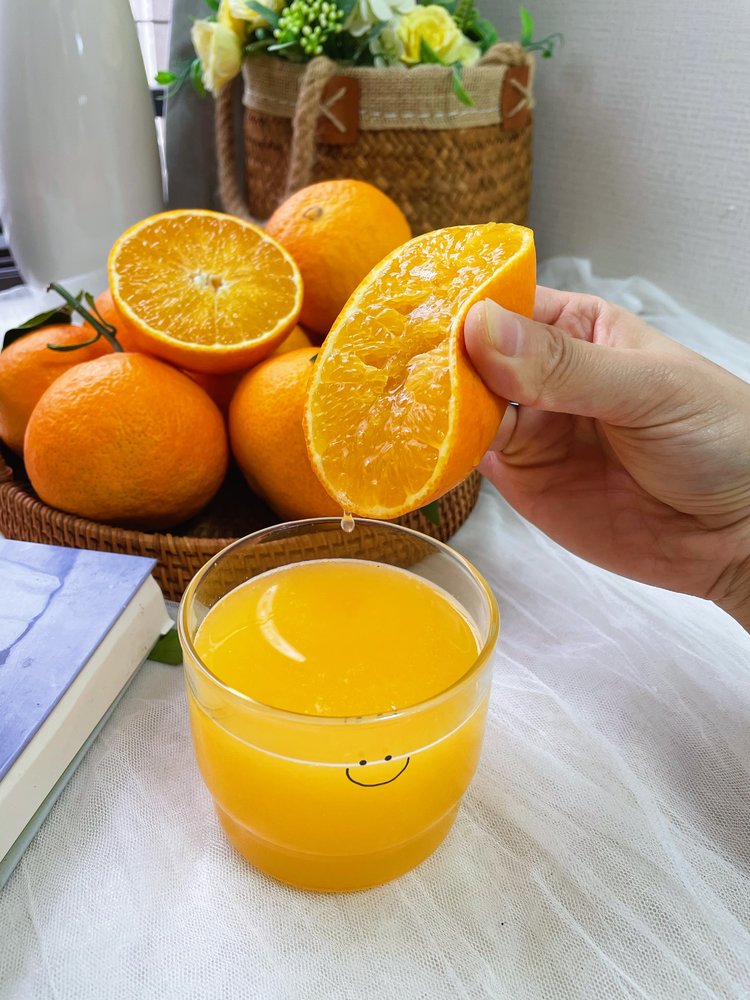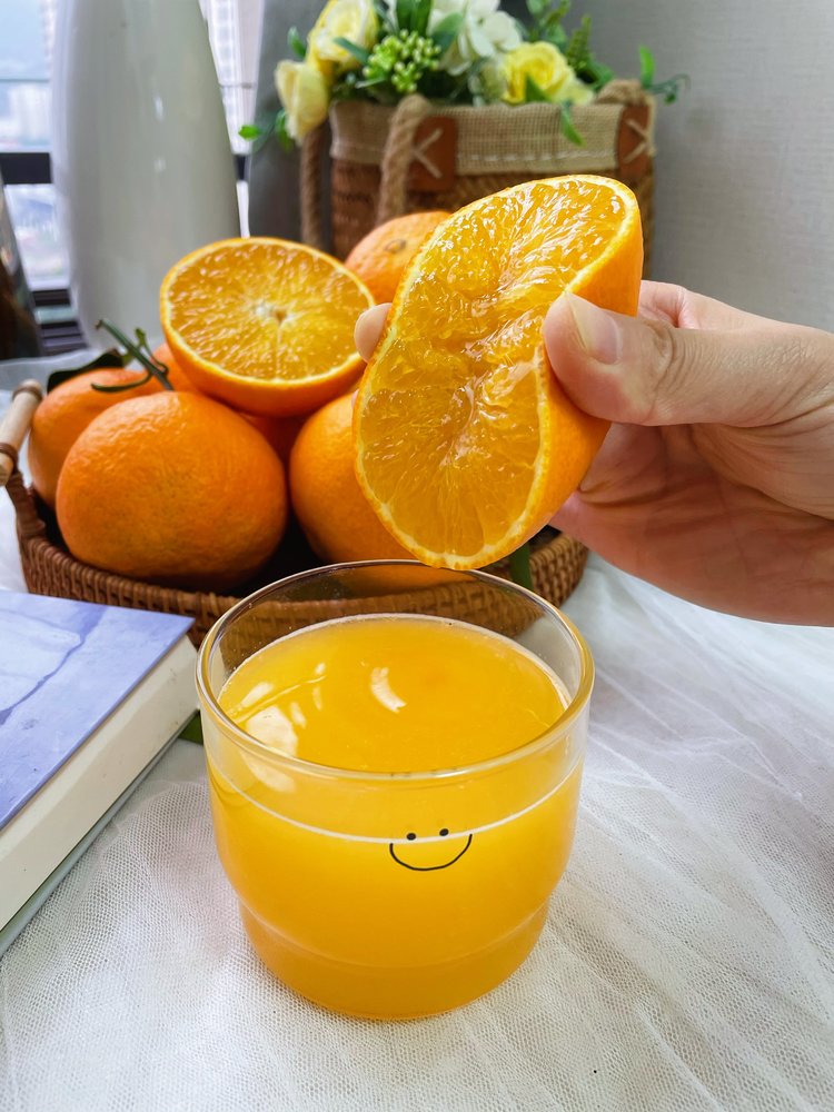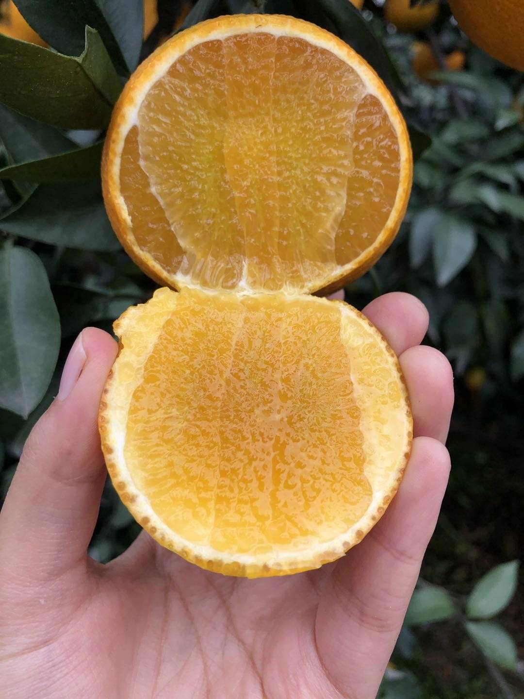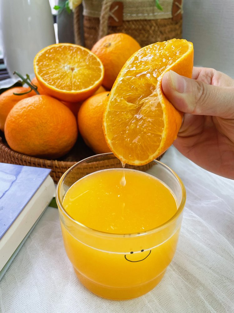 个大圆润,肉厚多汁,无籽无渣,徒手榨汁,直接吸喝的橙子