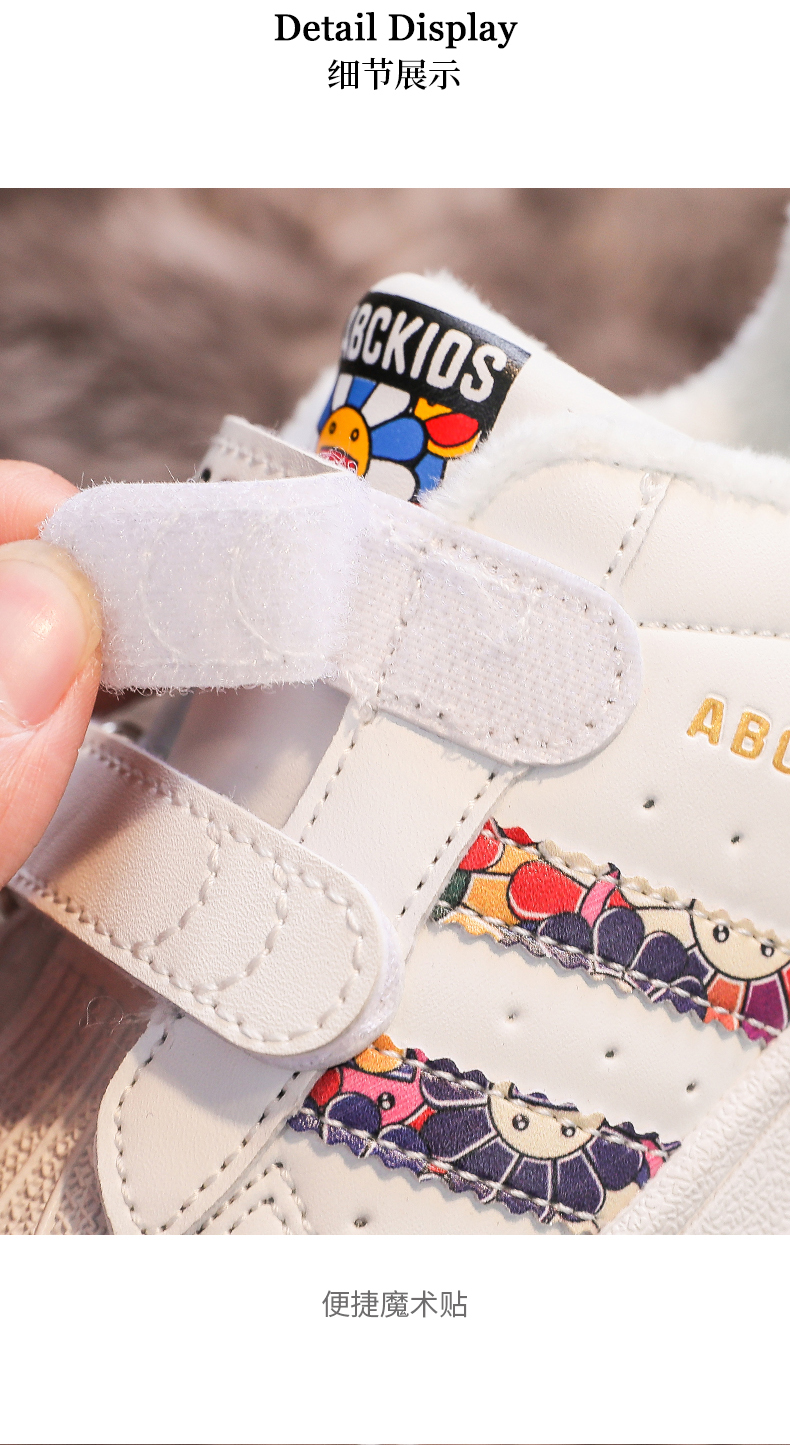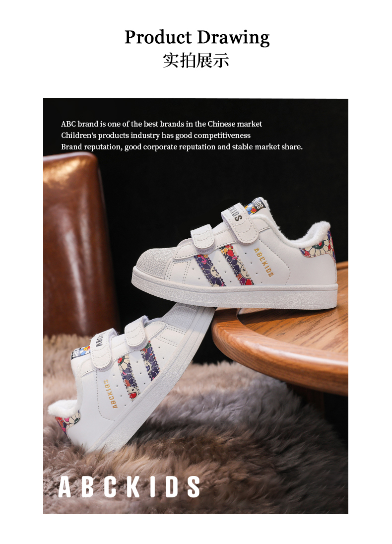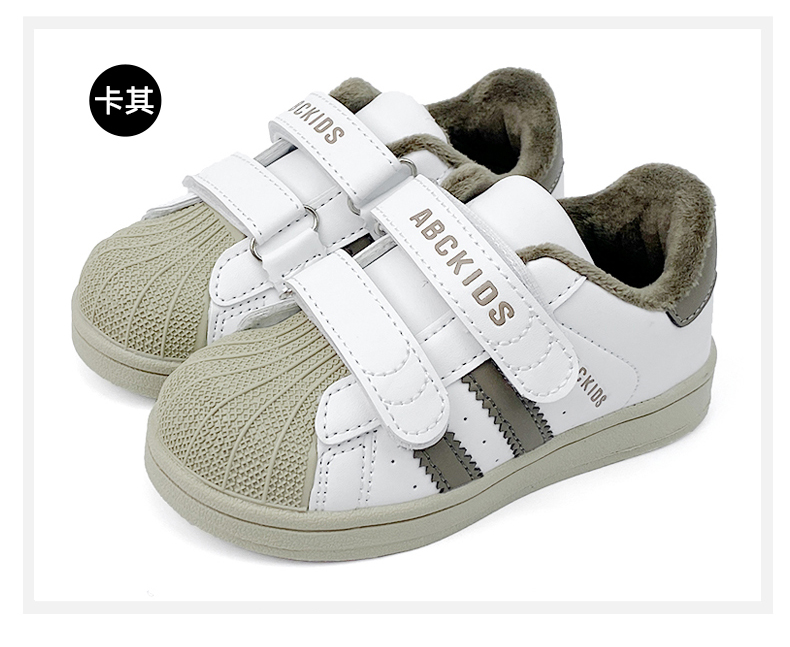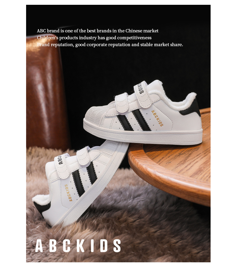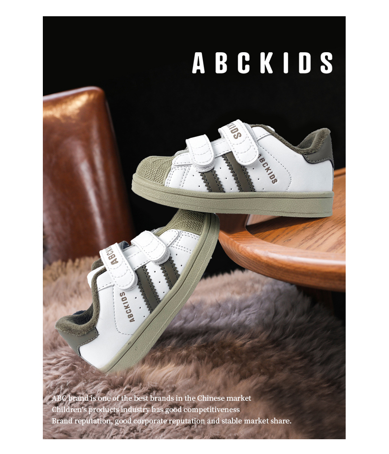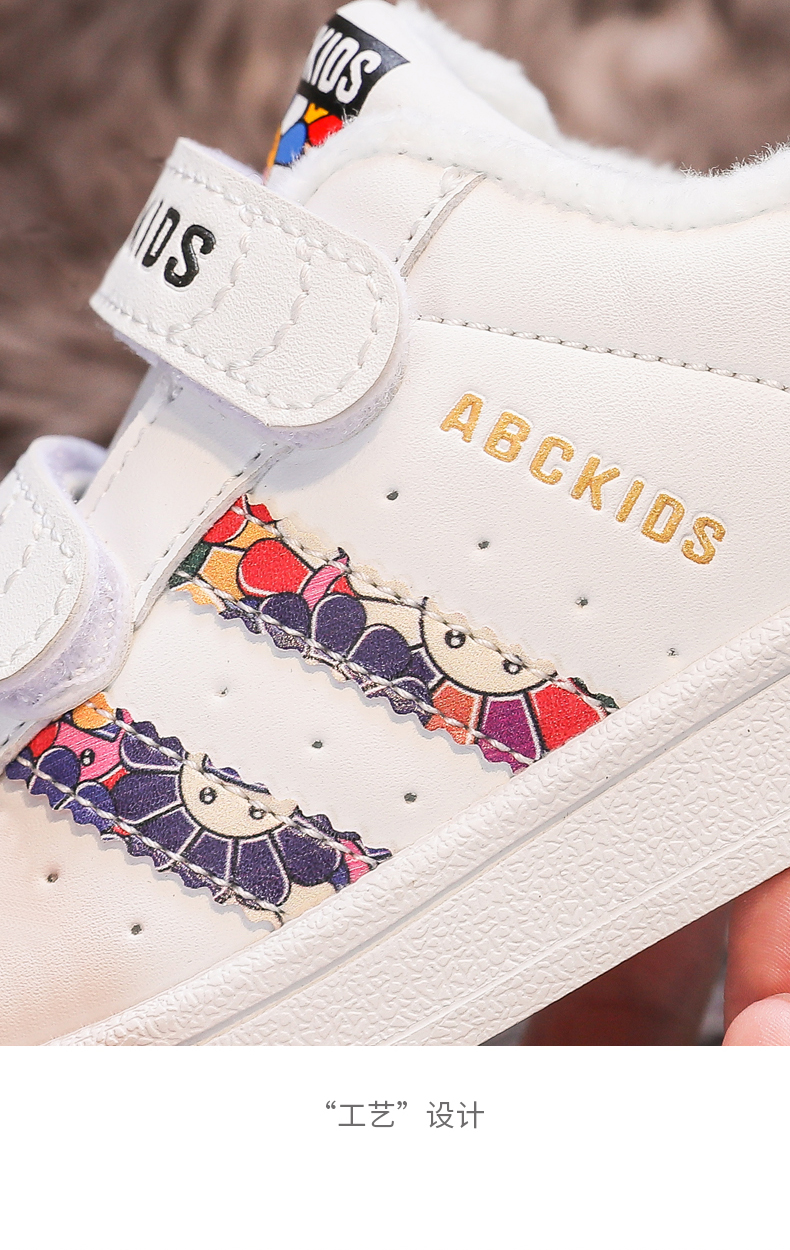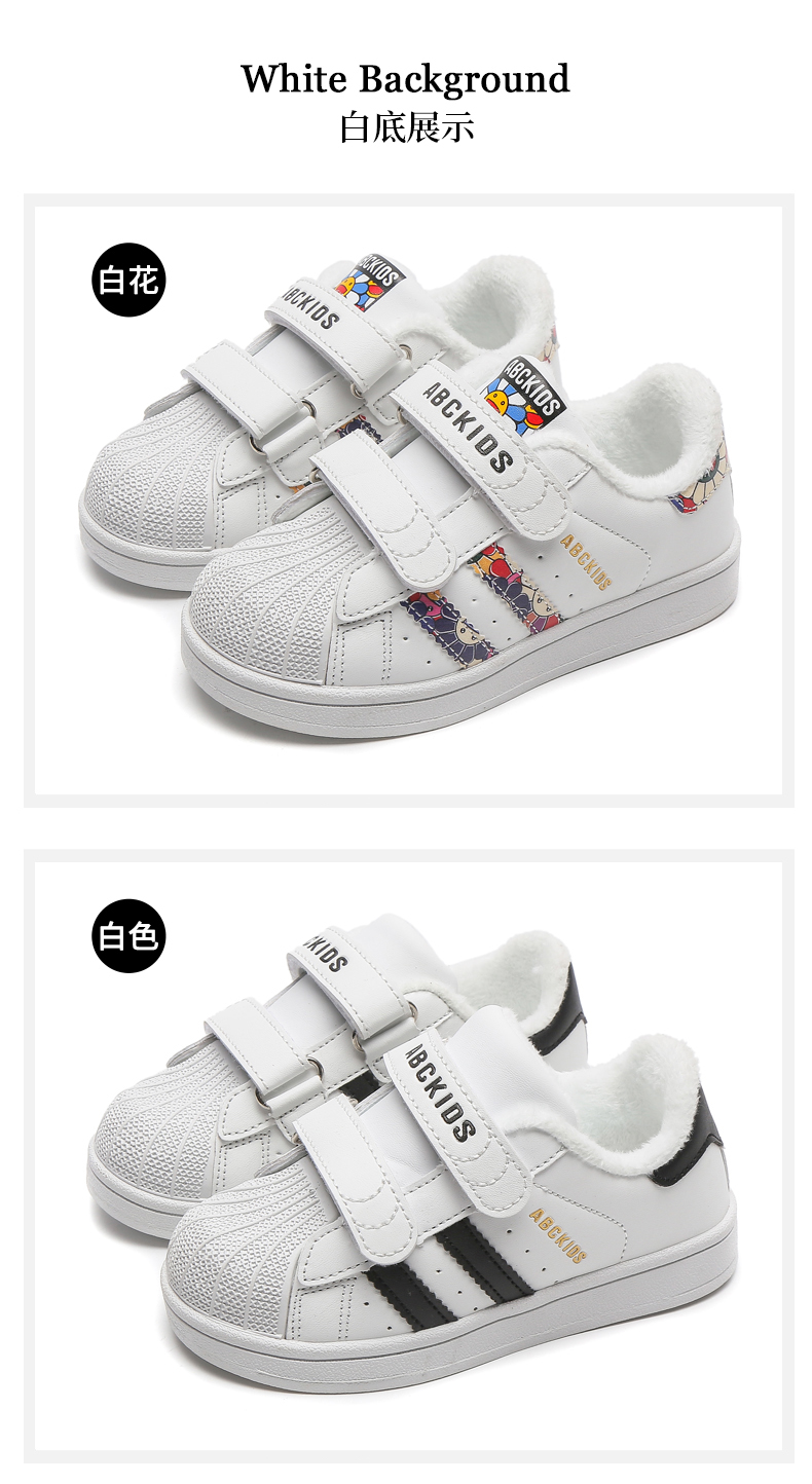 Abckids贝壳头童鞋冬款二棉儿童小白鞋加绒保暖男童板鞋皮面防水女童学生休闲鞋26-37