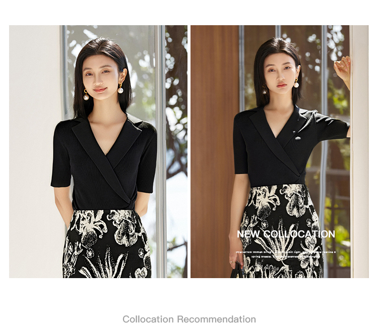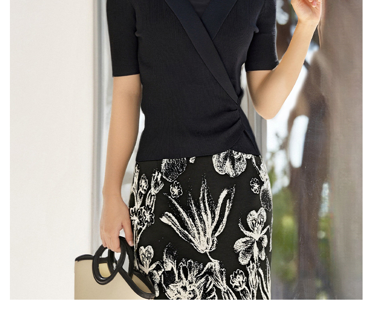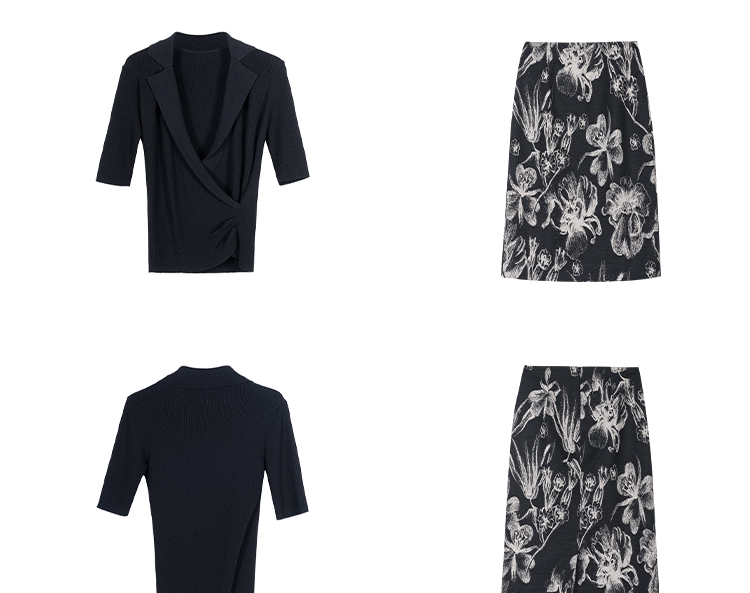 剩S/M 针织T恤+印花半裙套装5P25CG4802