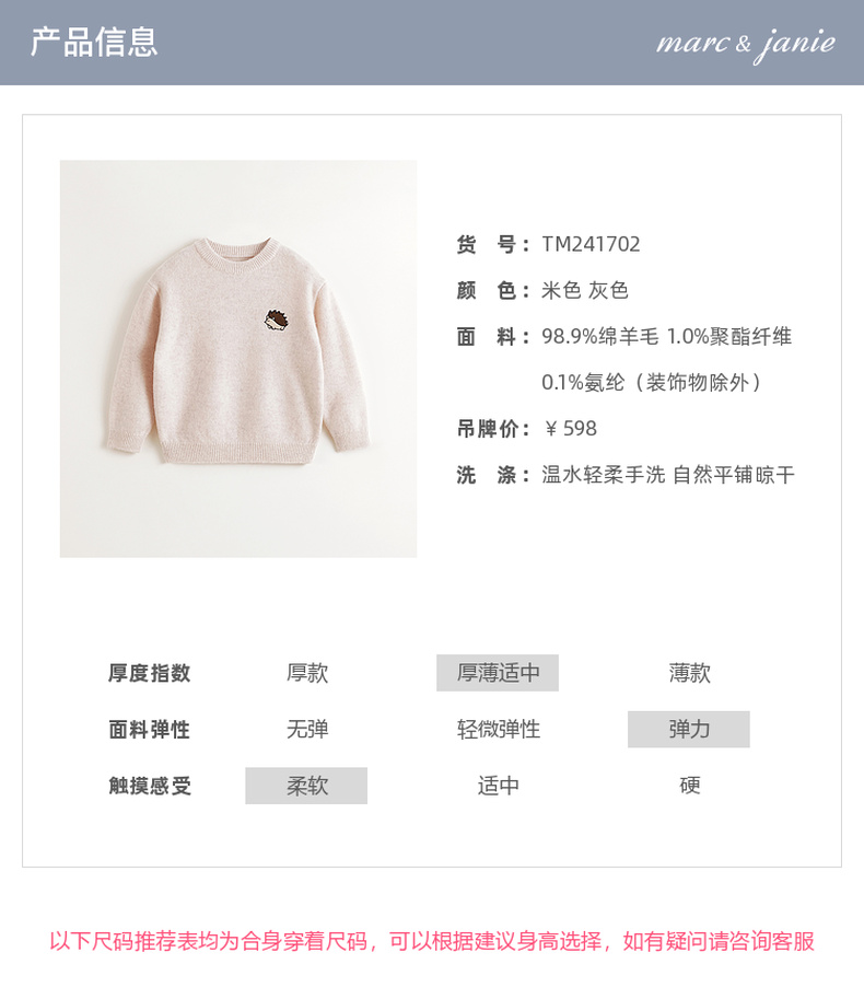 马克珍妮男童山系户外纯羊毛针织衫儿童毛衣2024年秋冬新款241702