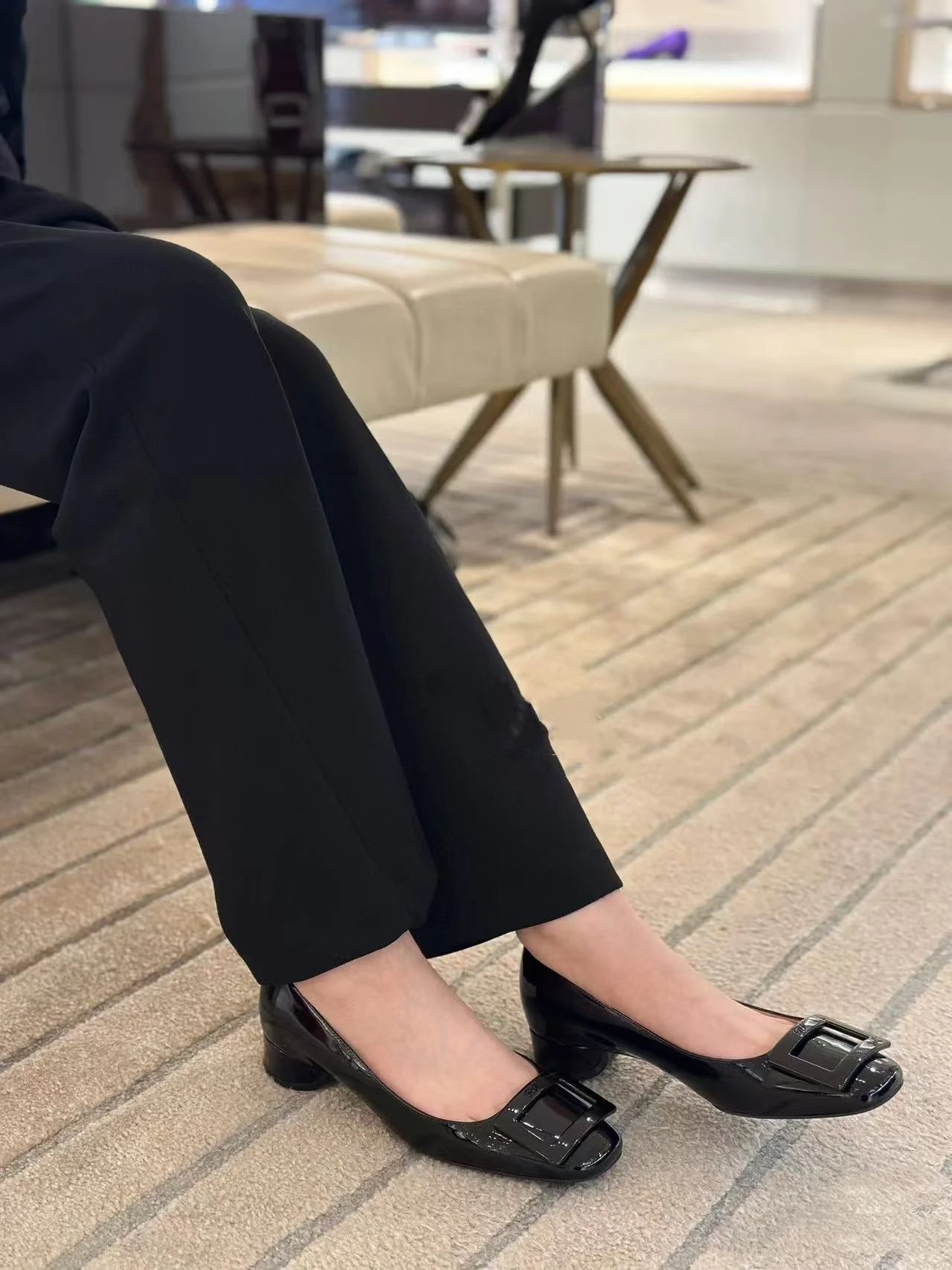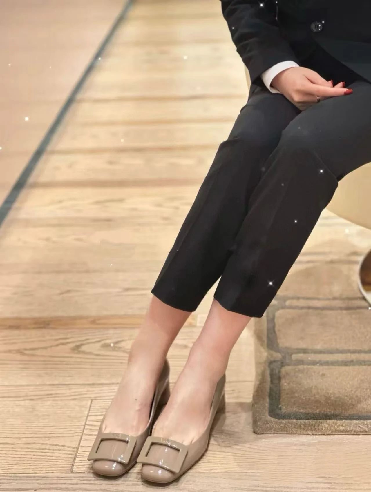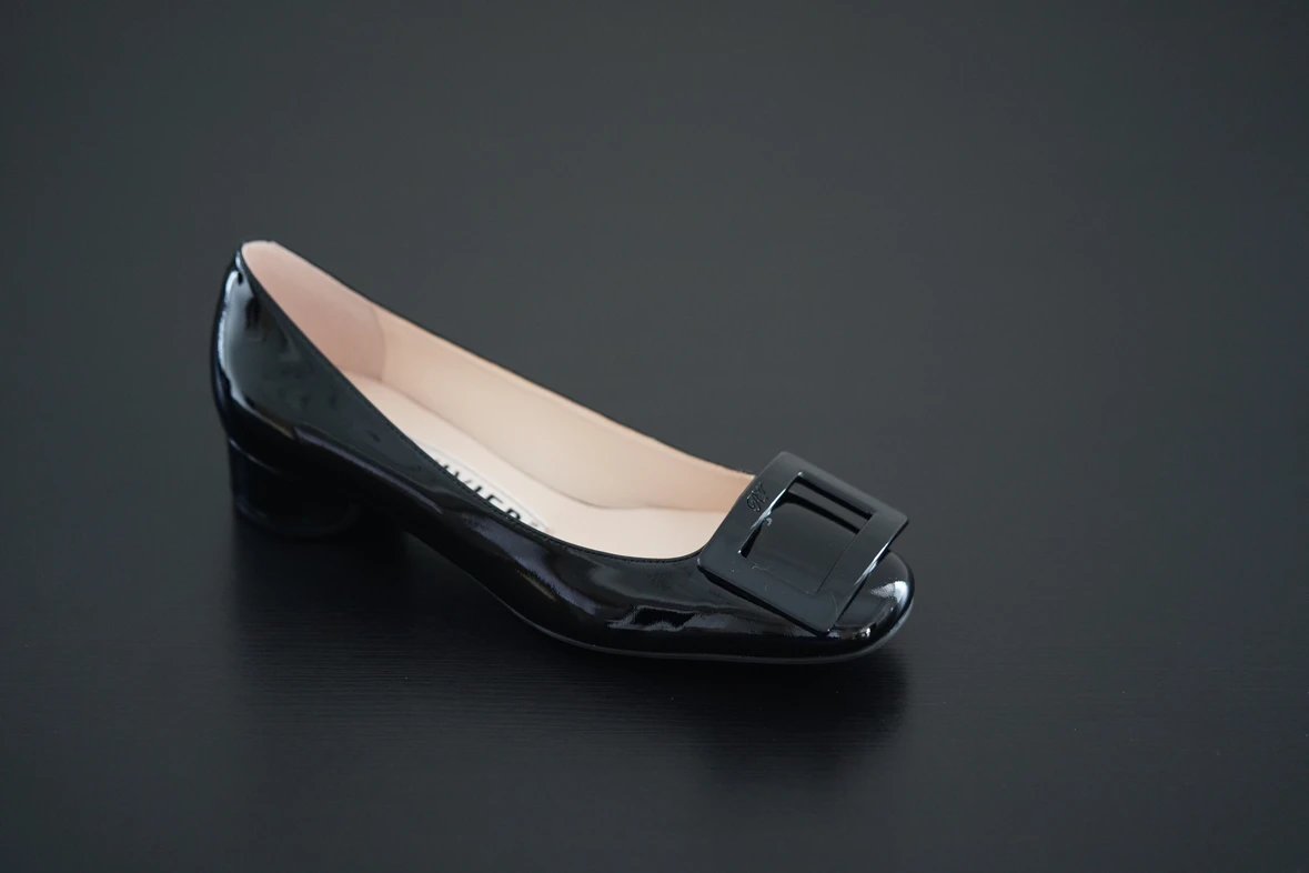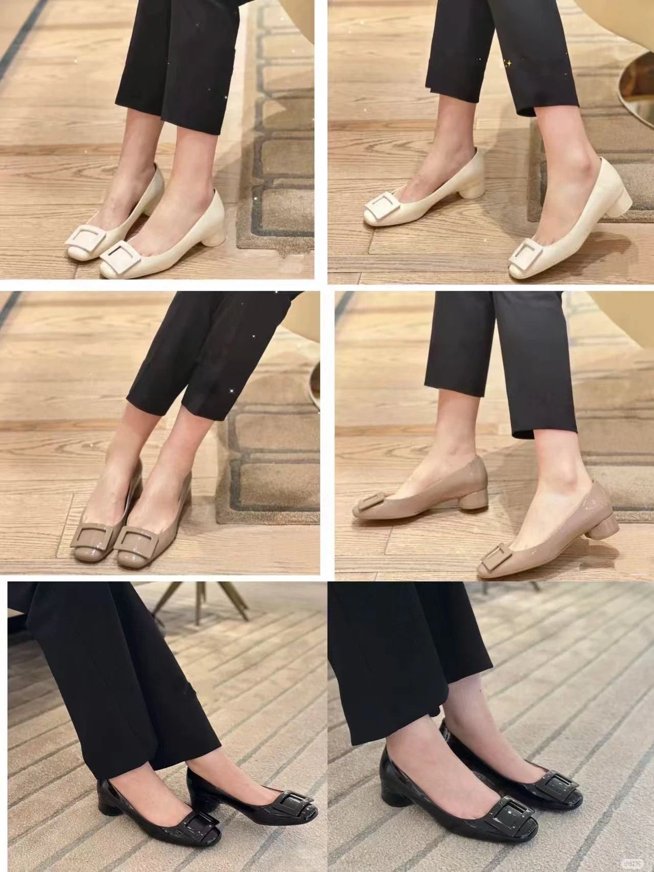 重磅渠道! 2.5cm果冻漆皮方扣单鞋 烤漆方扣单鞋 低跟通勤 橡胶软底