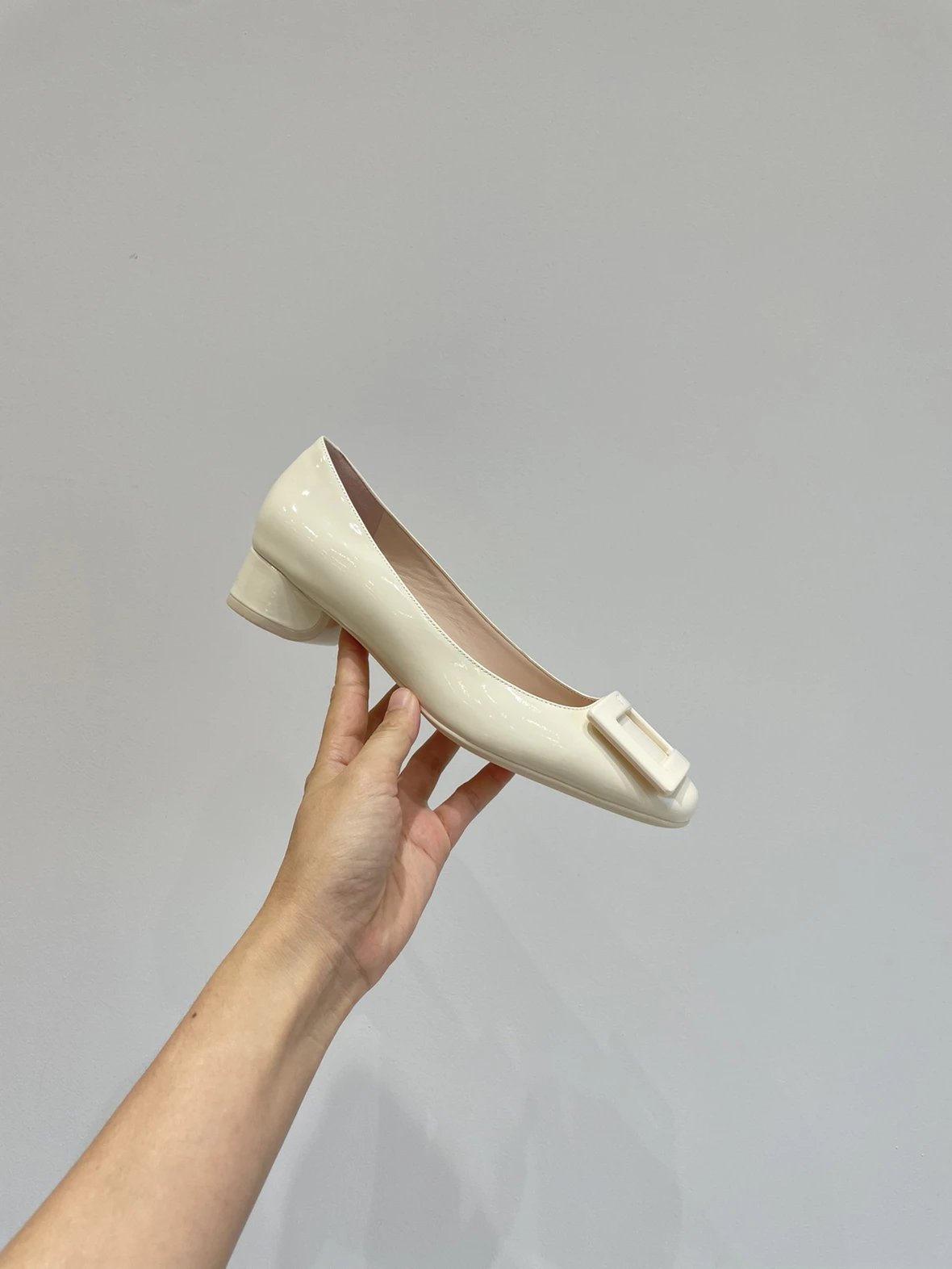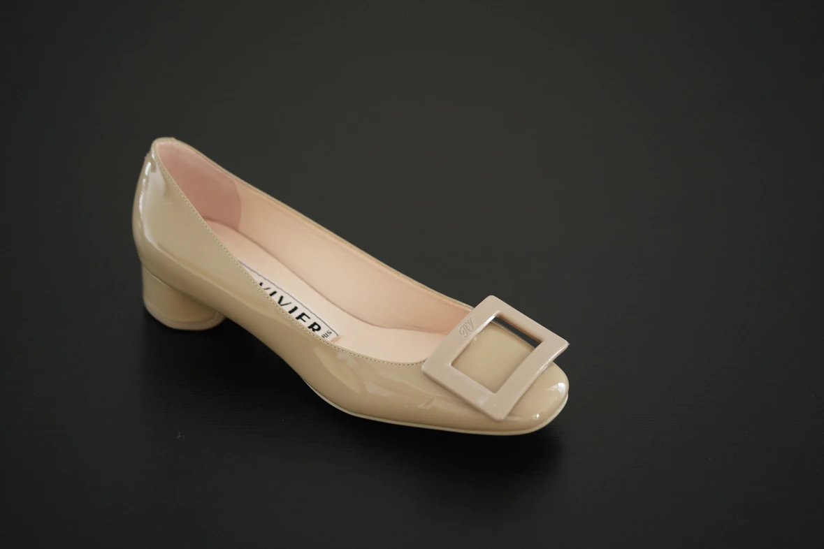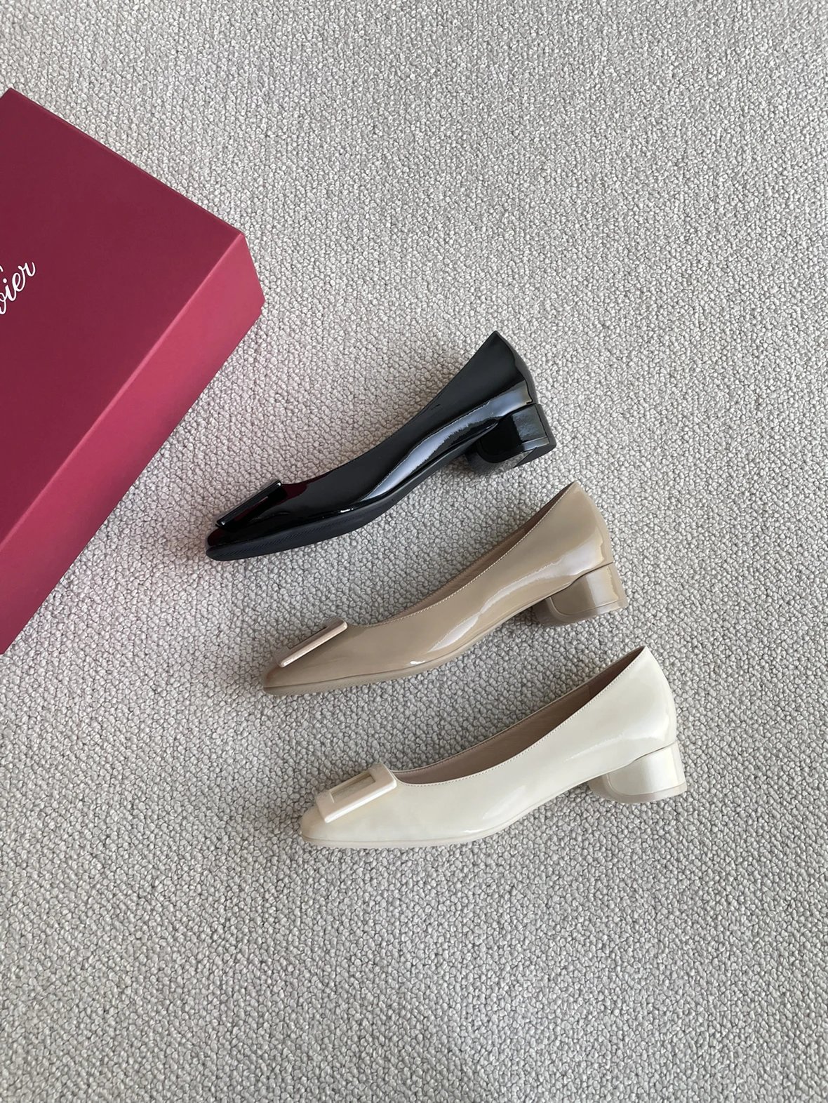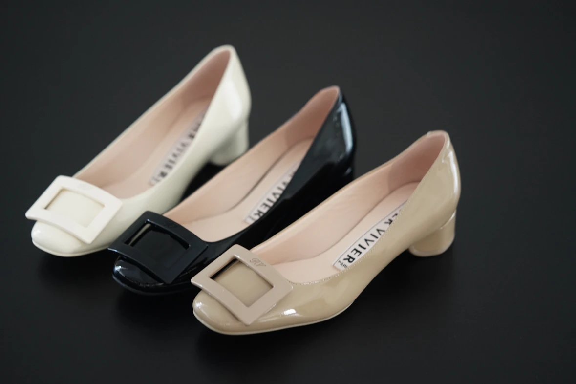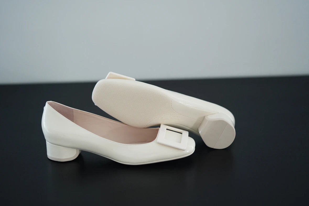 重磅渠道! 2.5cm果冻漆皮方扣单鞋 烤漆方扣单鞋 低跟通勤 橡胶软底