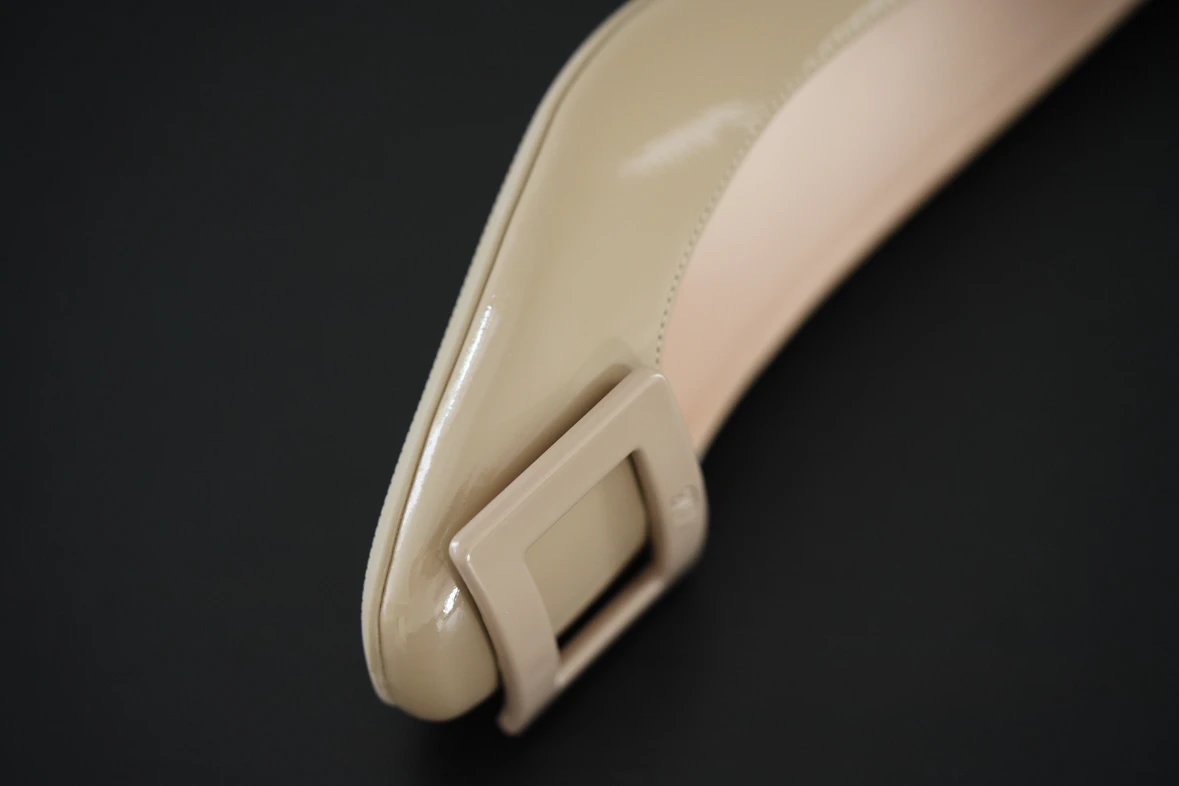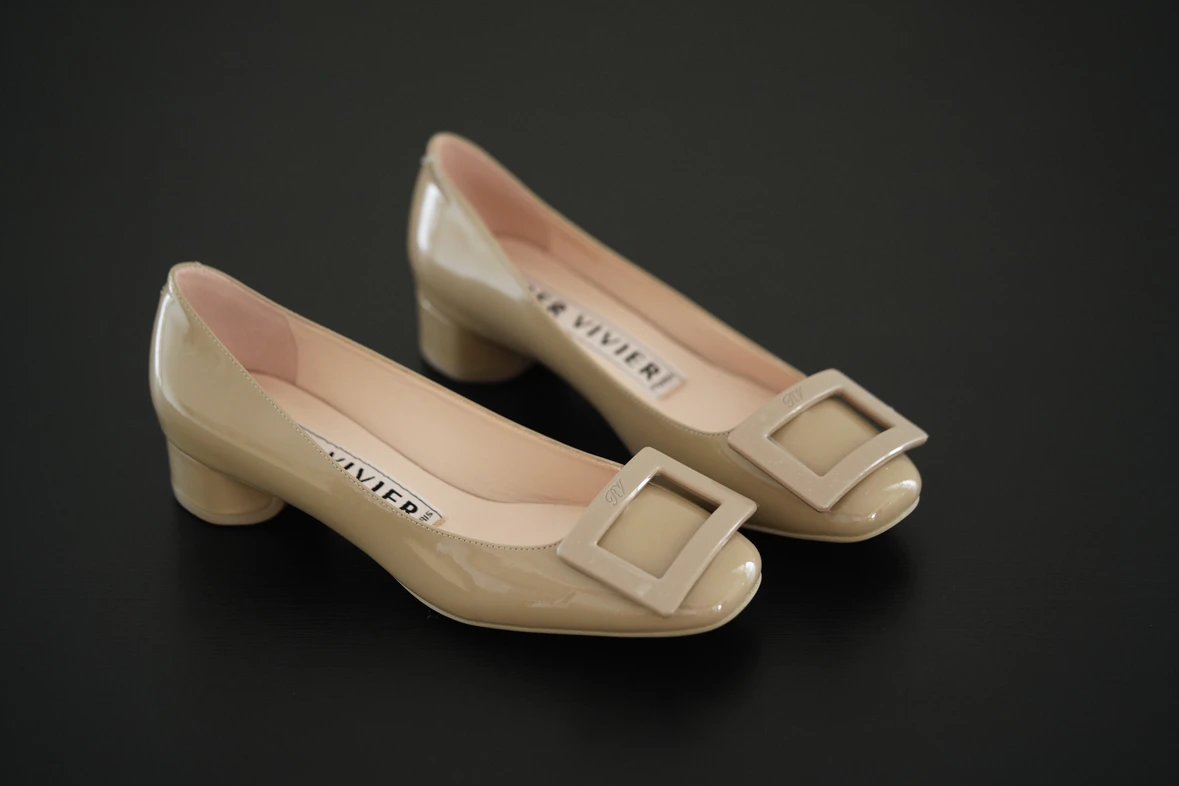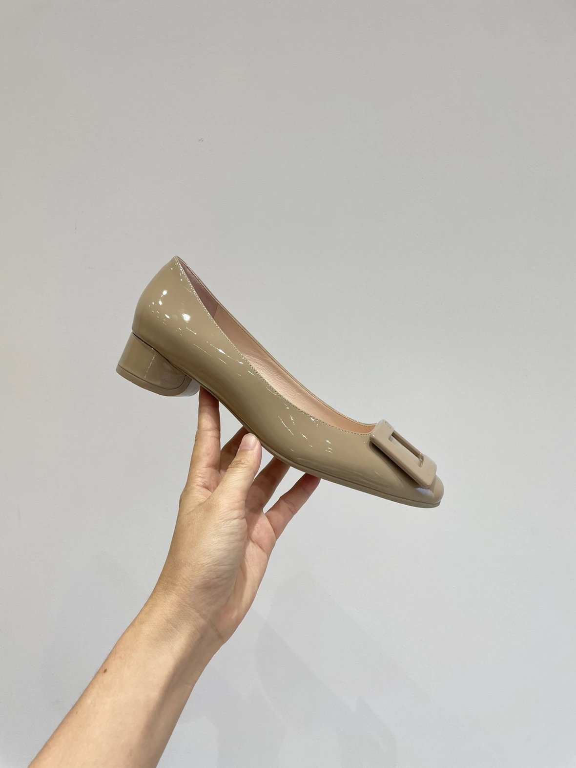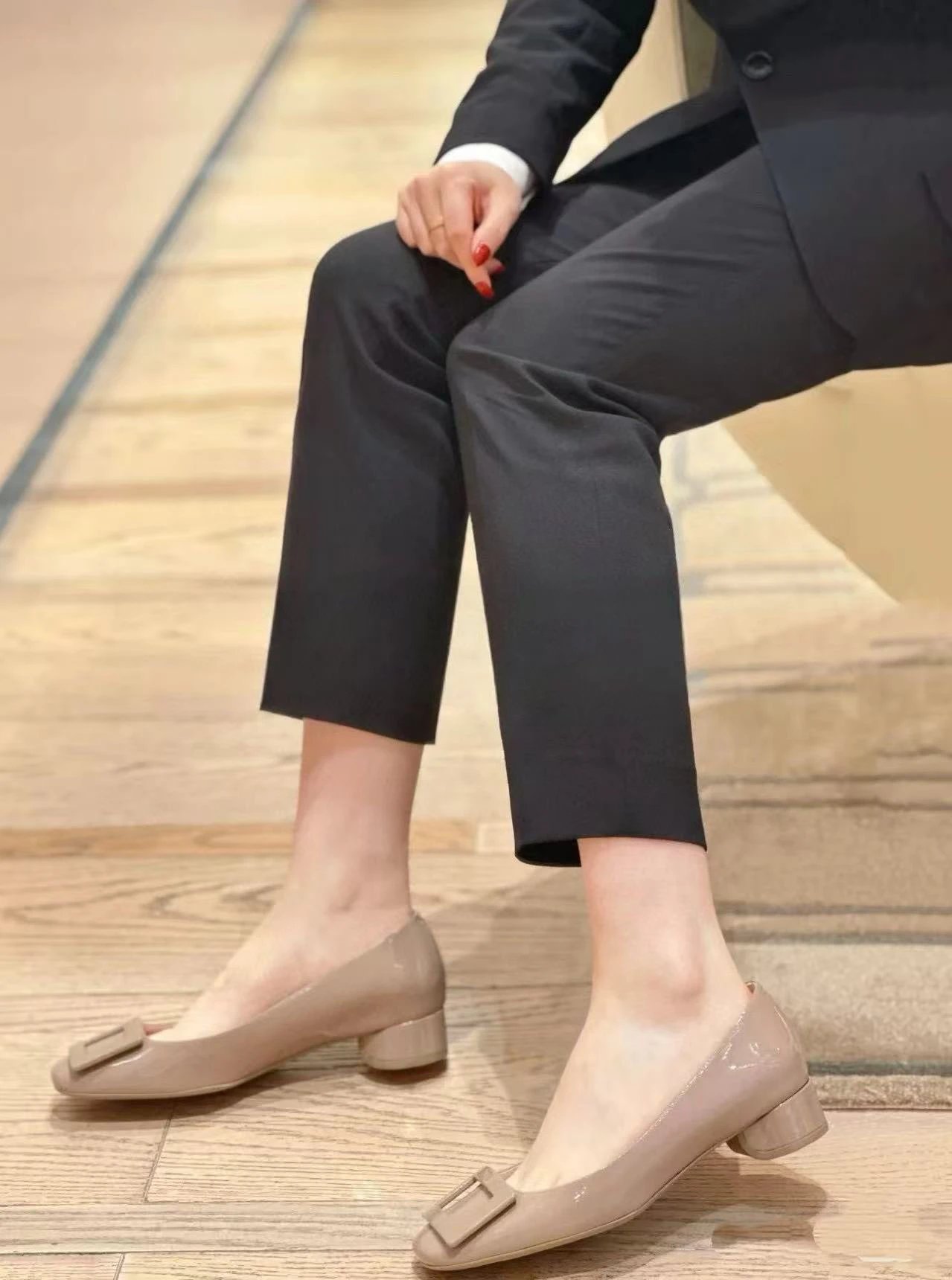 重磅渠道! 2.5cm果冻漆皮方扣单鞋 烤漆方扣单鞋 低跟通勤 橡胶软底