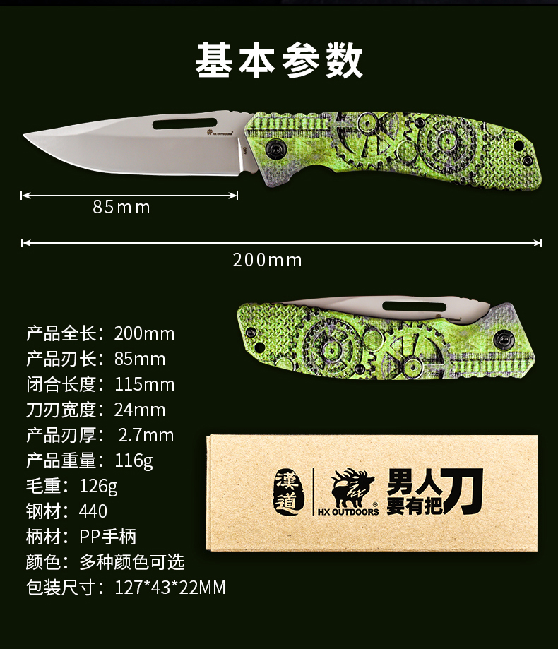 汉道变色龙折叠刀户外随身刀野外锋利防身刀