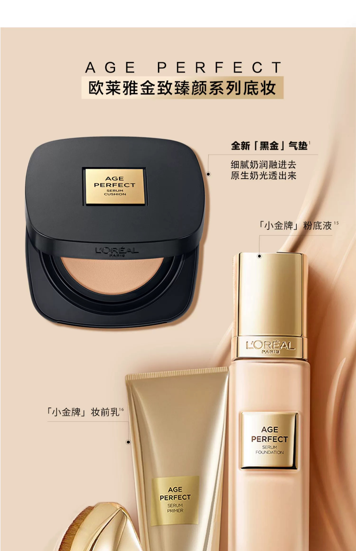 【干皮首选】法国 L'OREAL欧莱雅 金致臻颜细腻奶润黑金气垫 12g