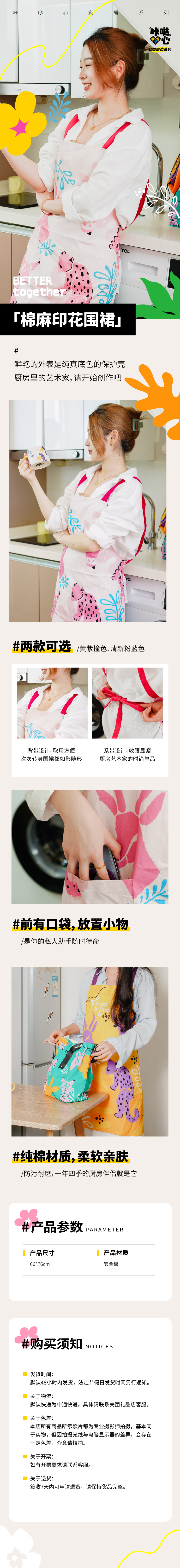咔哒心系列棉麻印花围裙