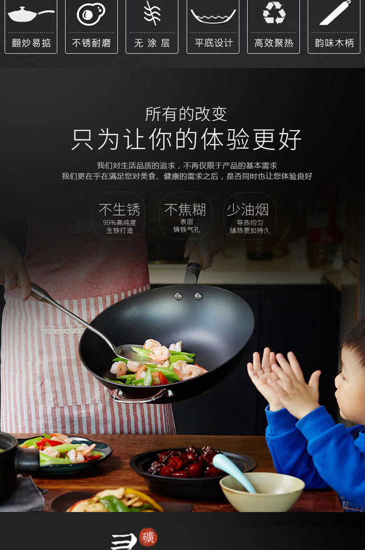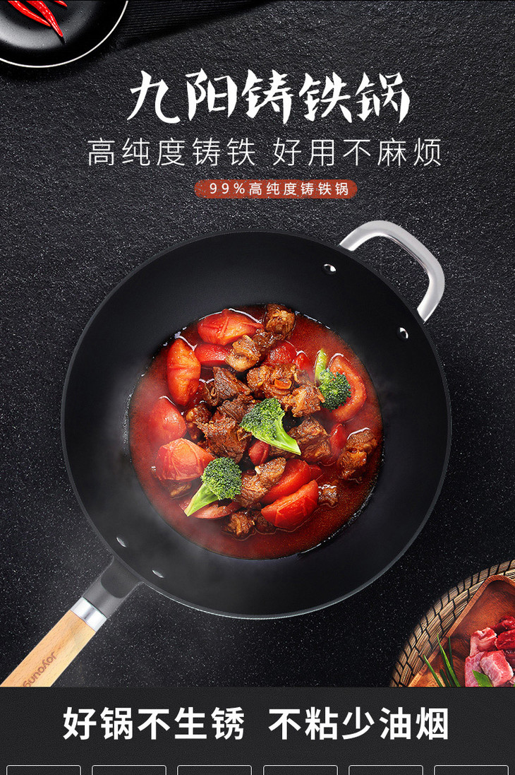 九阳(Joyoung)(507993 )炒锅老式生铁锅家用电磁炉炒菜锅燃煤气灶专用平底锅铸铁炒锅 CZB3025