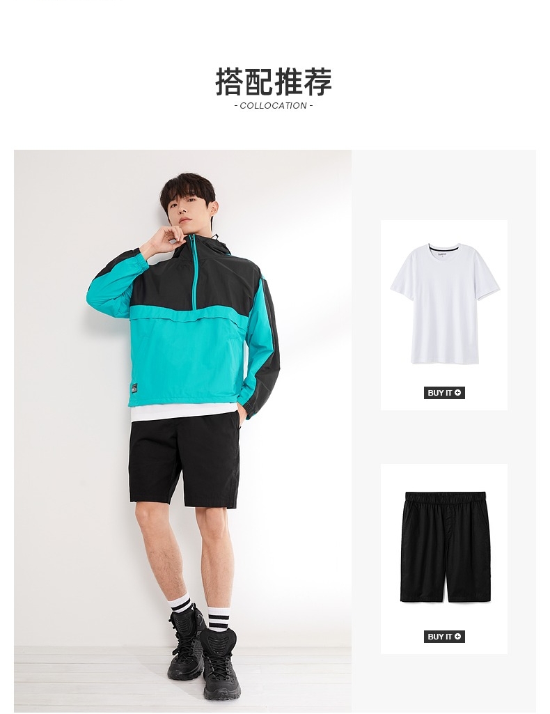 班尼路 春季新款户外半开衫连帽外套男宽松休闲青年轻薄风衣