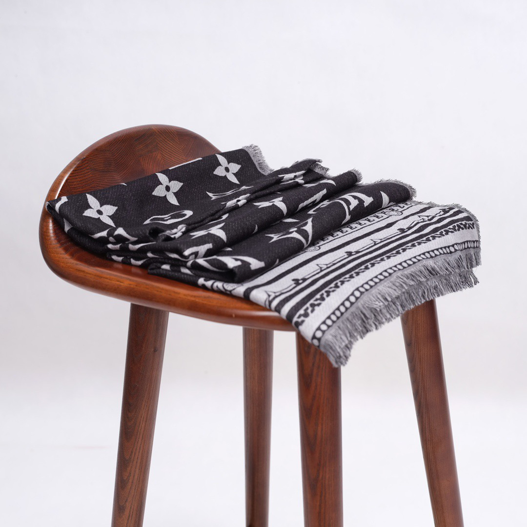 L家经典花色21年新款花纹边 一货难求的款男女真丝+羊绒围巾