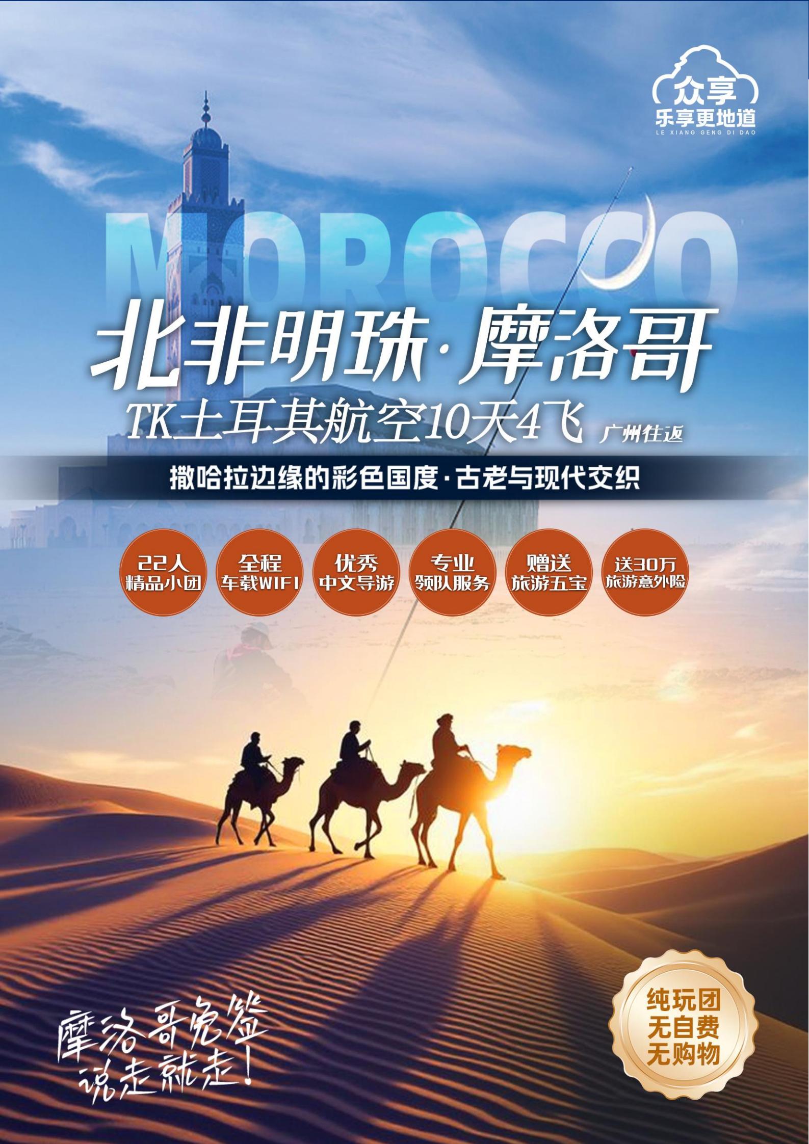 <摩洛哥一地纯玩10天(22人精品小团)>卡萨布兰卡、瓦尔扎扎特、梅祖卡、舍夫万沙、丹吉尔、拉巴特、马拉喀什、菲斯、梅克内斯