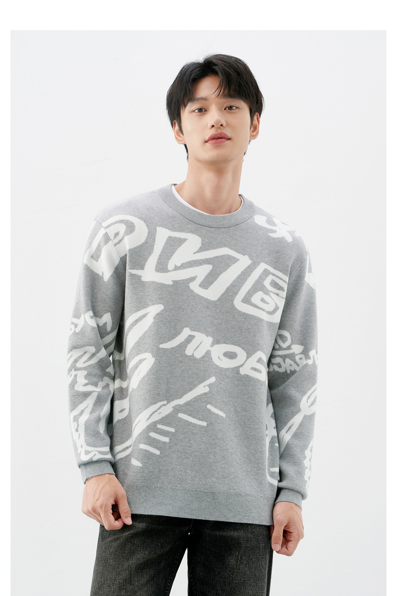 gxg jeans男装冬季双色提花设计圆领毛衫JED12008584 热卖毛衫