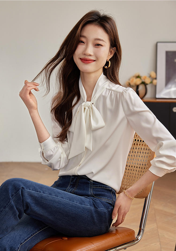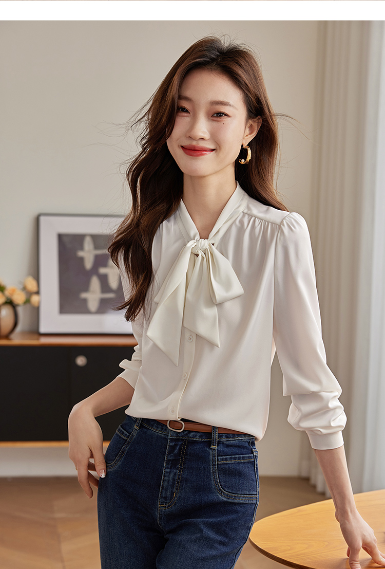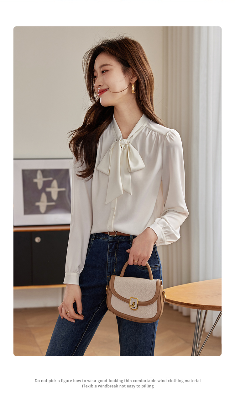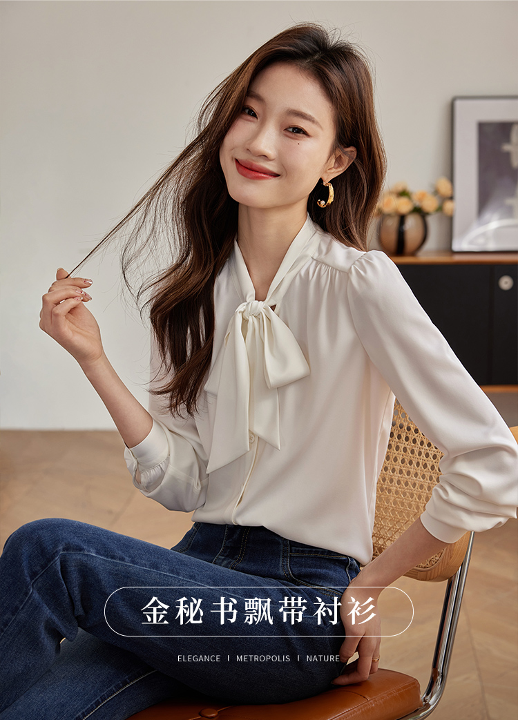【年终特卖】熙世界法式飘带蝴蝶结长袖衬衫女设计高级感抗皱OL衬衣2025秋新款