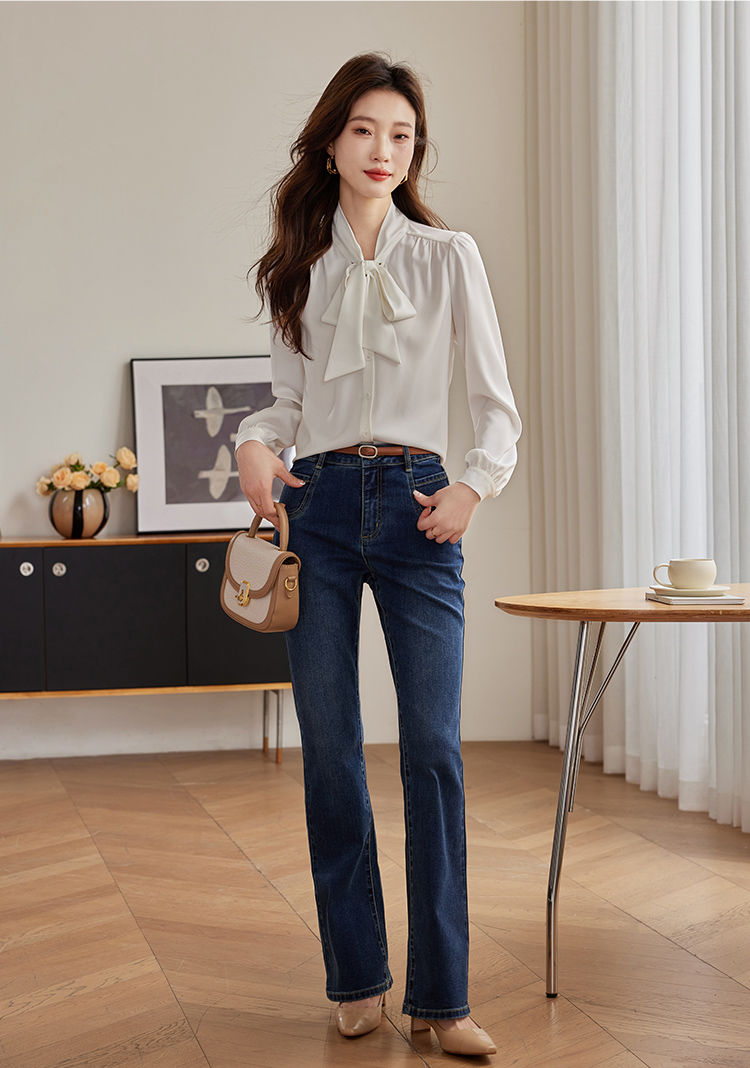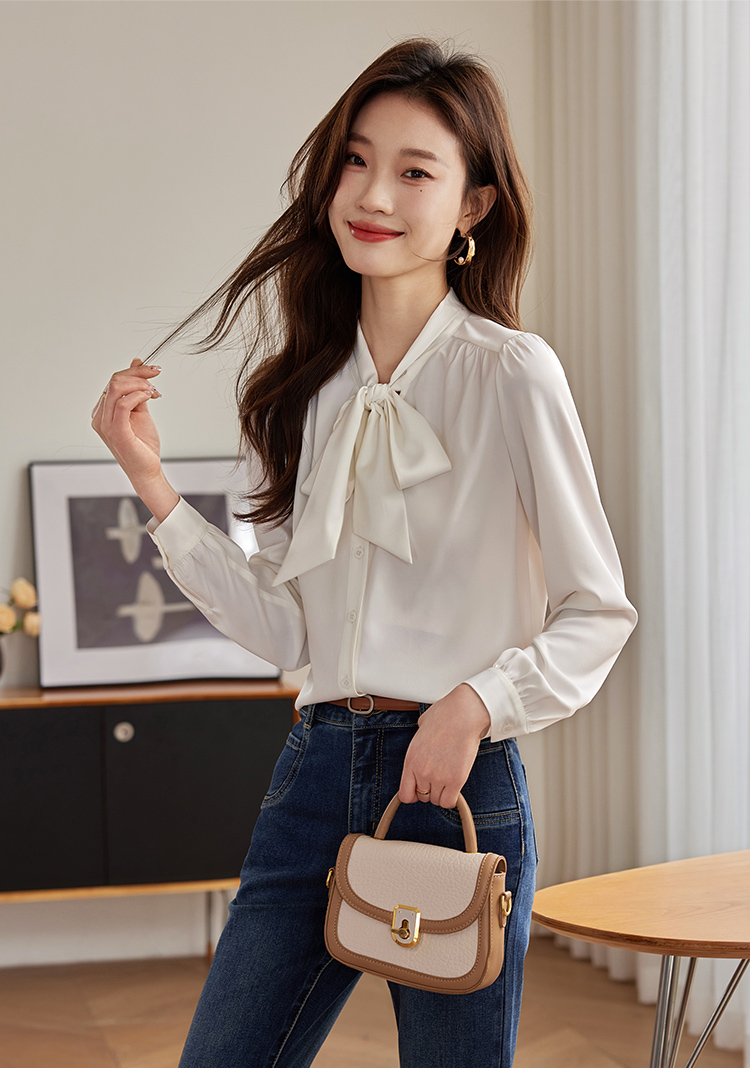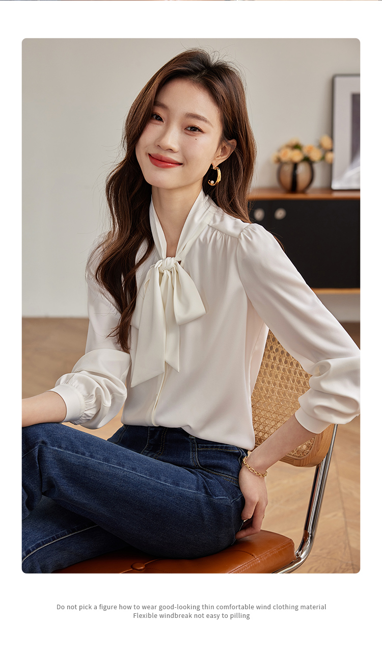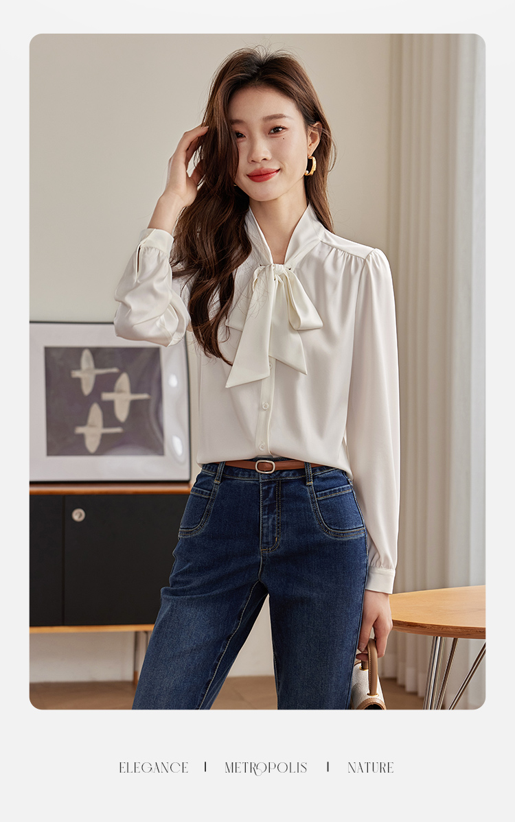 【年终特卖】熙世界法式飘带蝴蝶结长袖衬衫女设计高级感抗皱OL衬衣2025秋新款