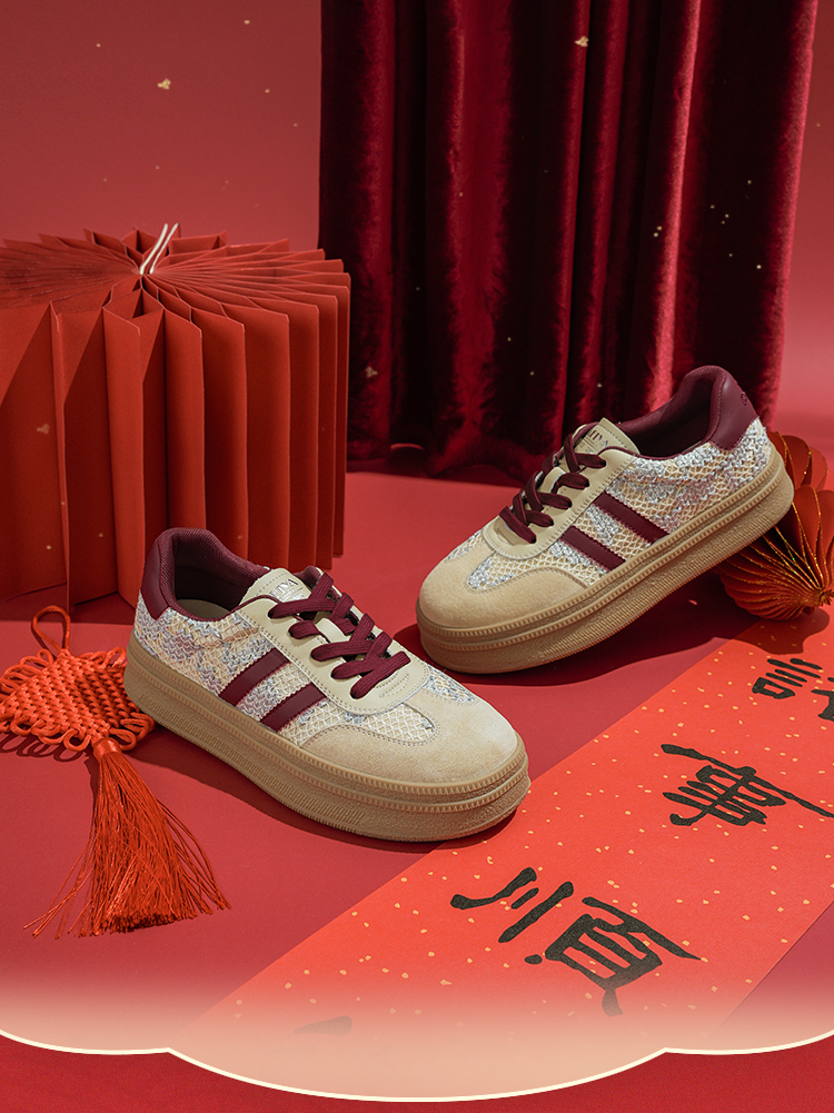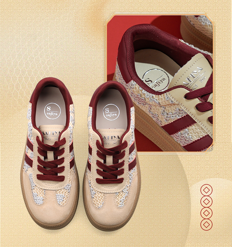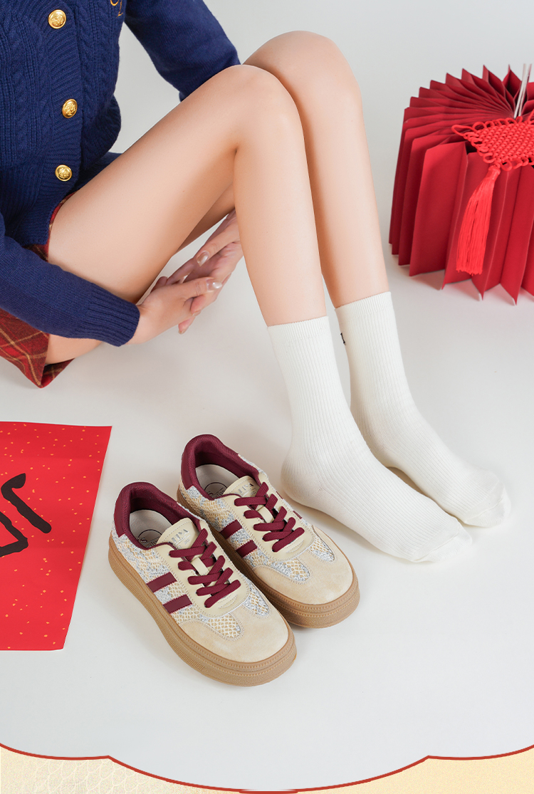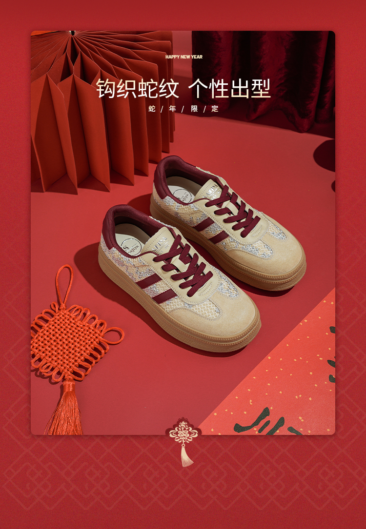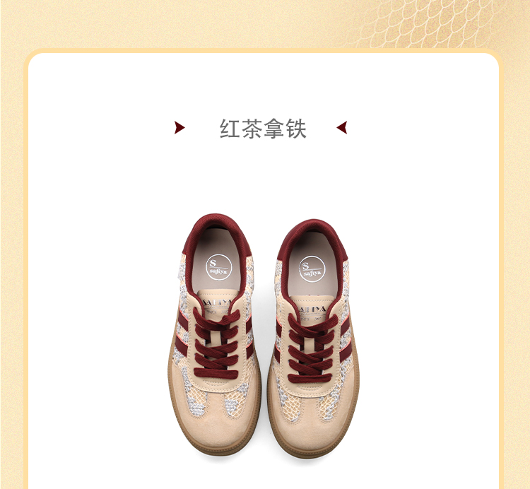 Safiya/索菲娅2025蛇年限定拼色复古透气百搭厚底德训鞋 SFD1112266