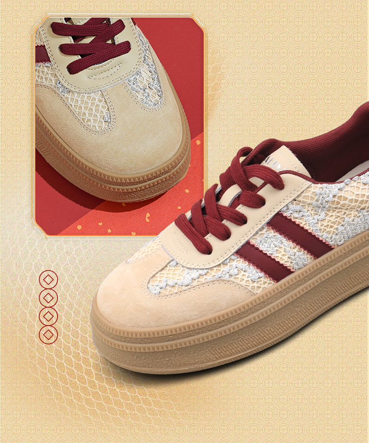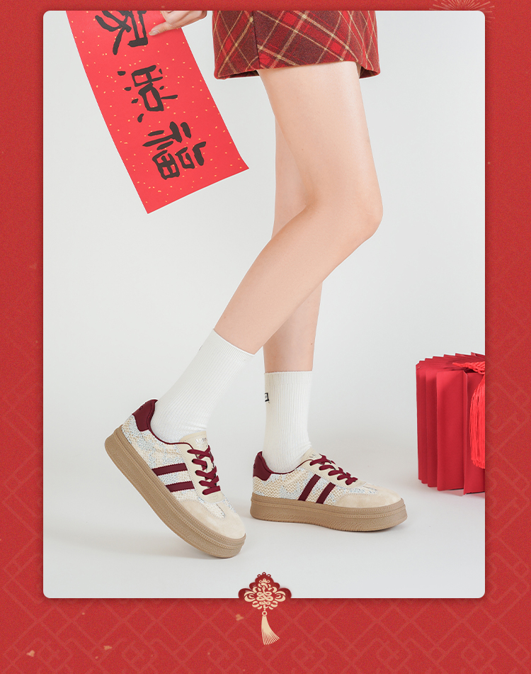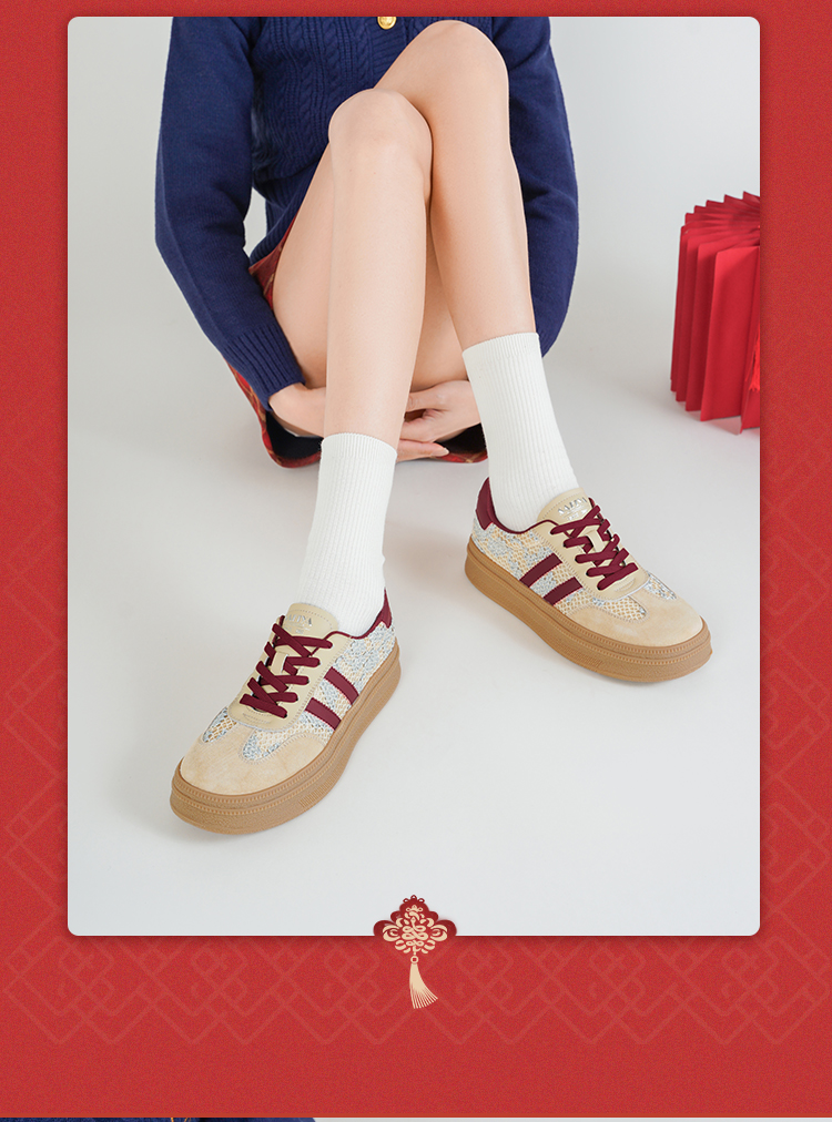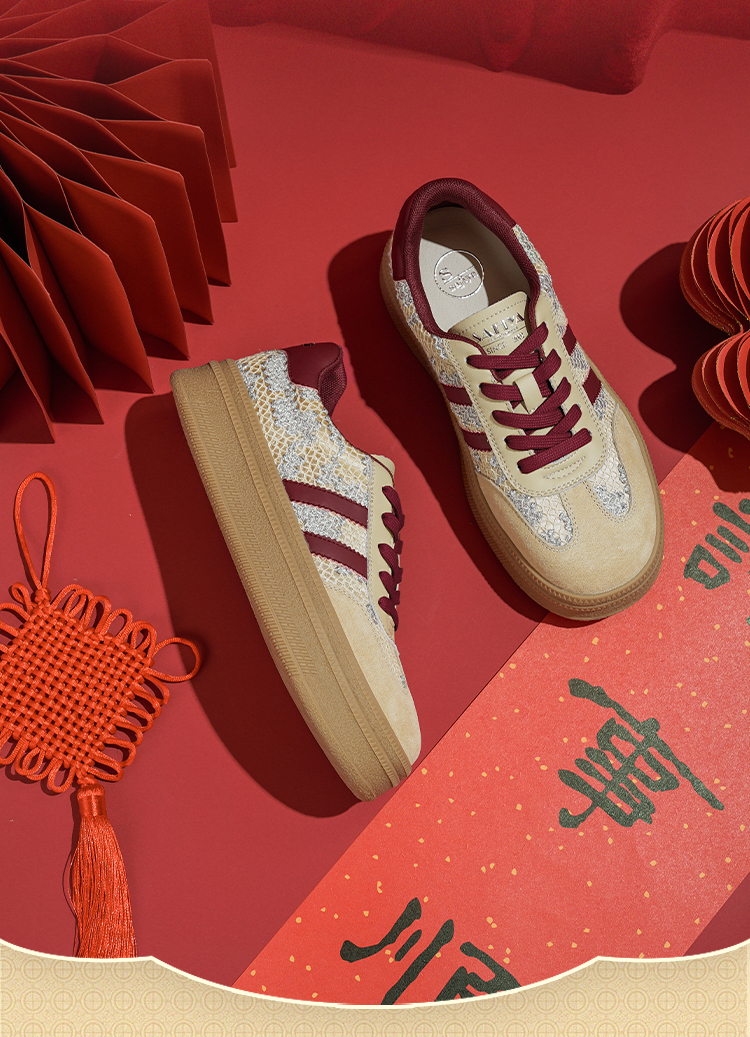 Safiya/索菲娅2025蛇年限定拼色复古透气百搭厚底德训鞋 SFD1112266