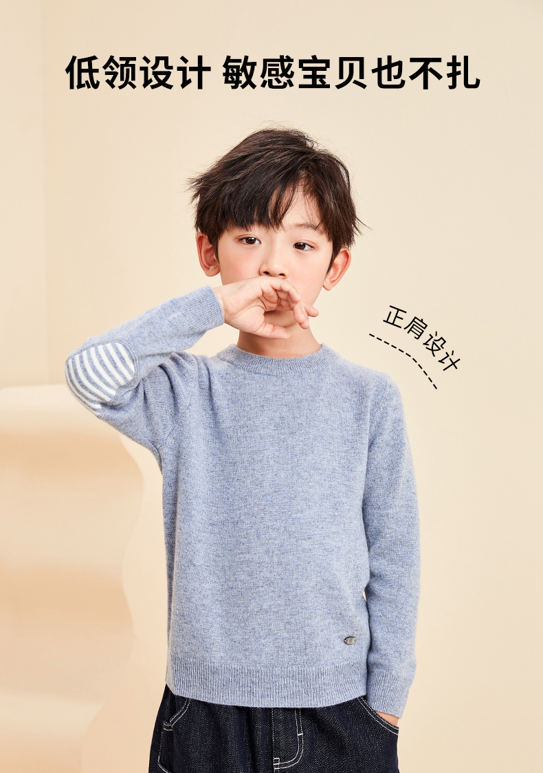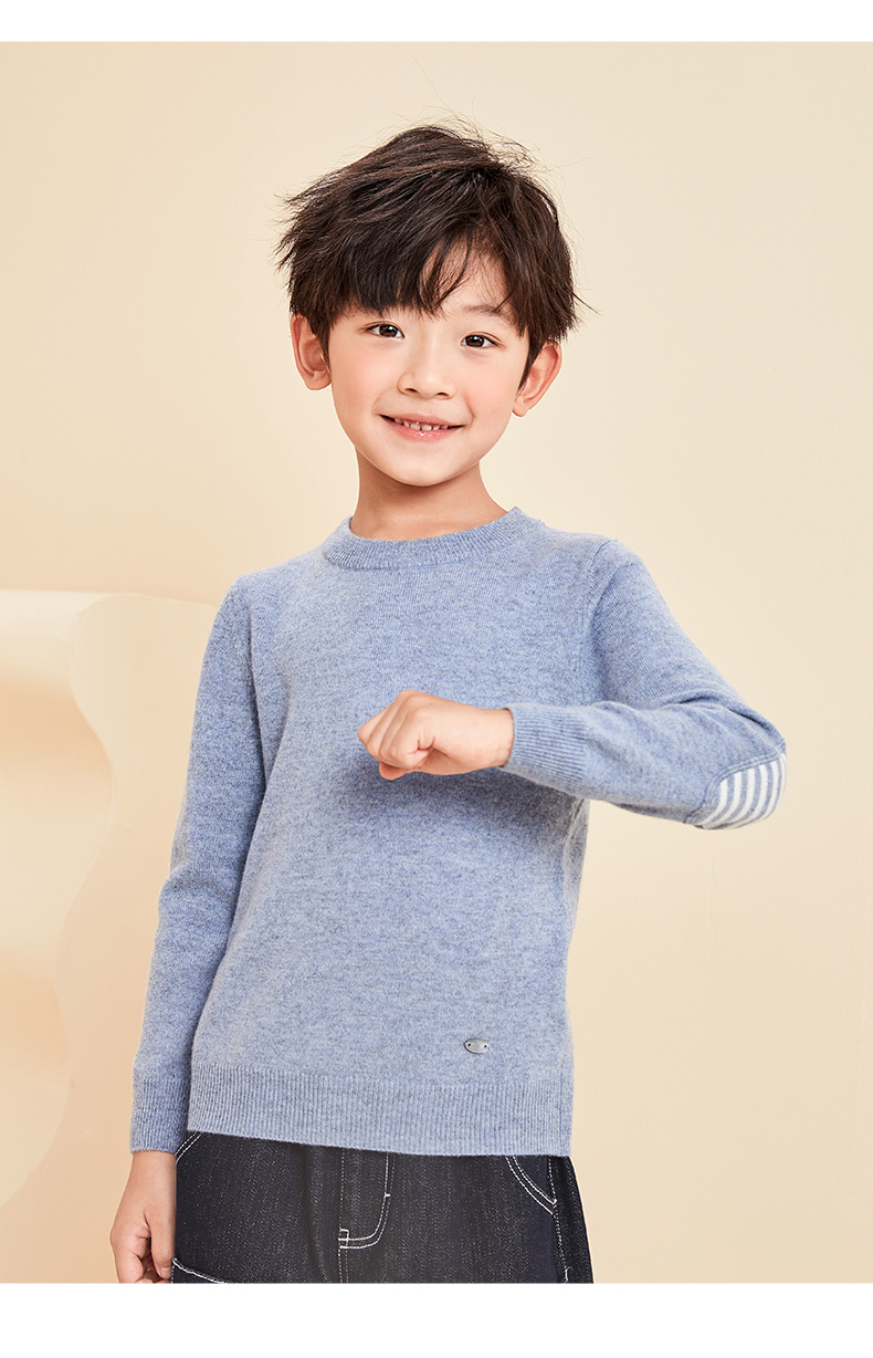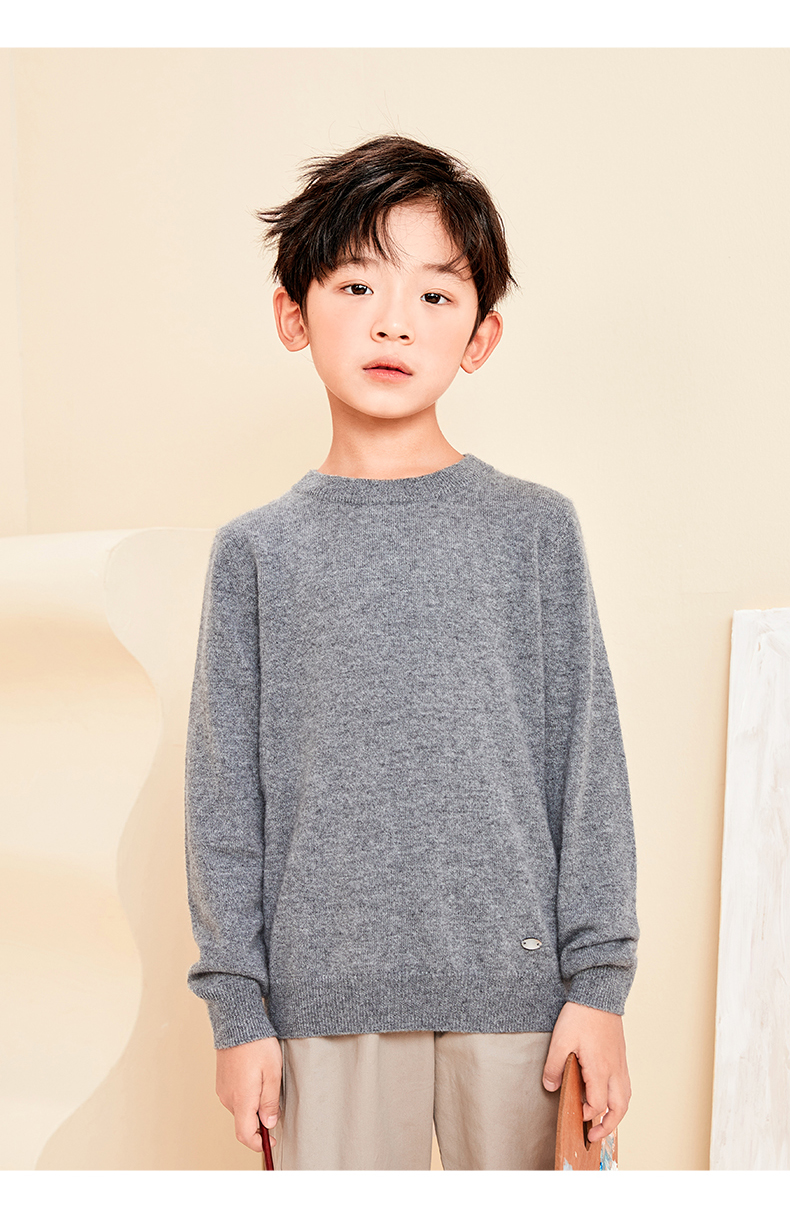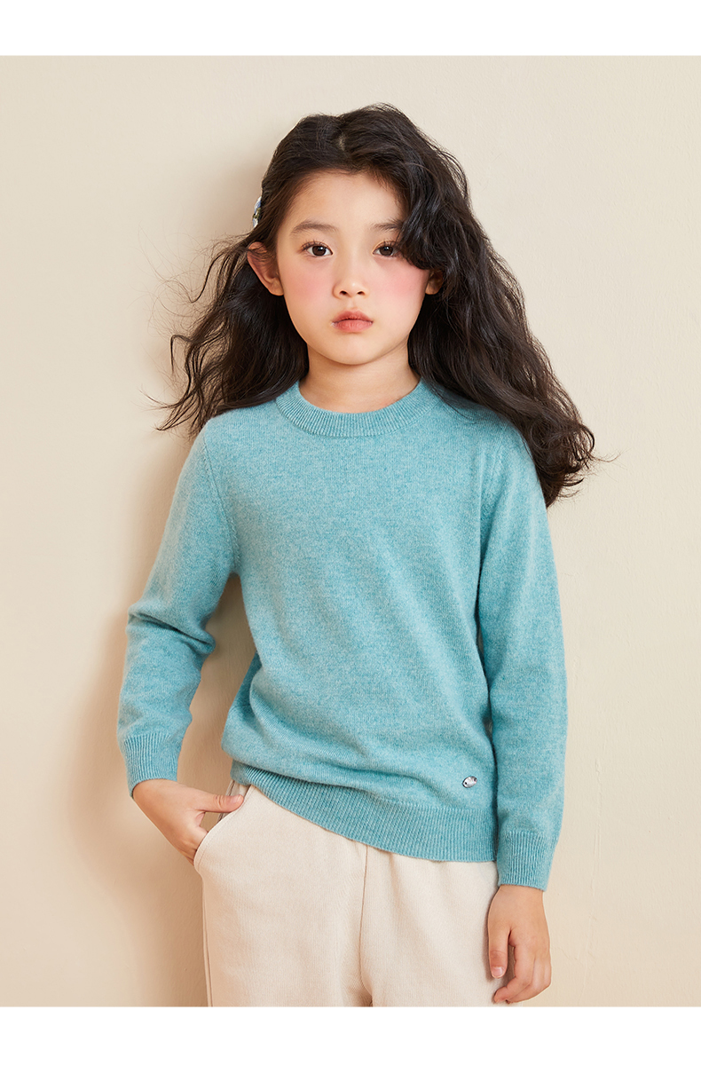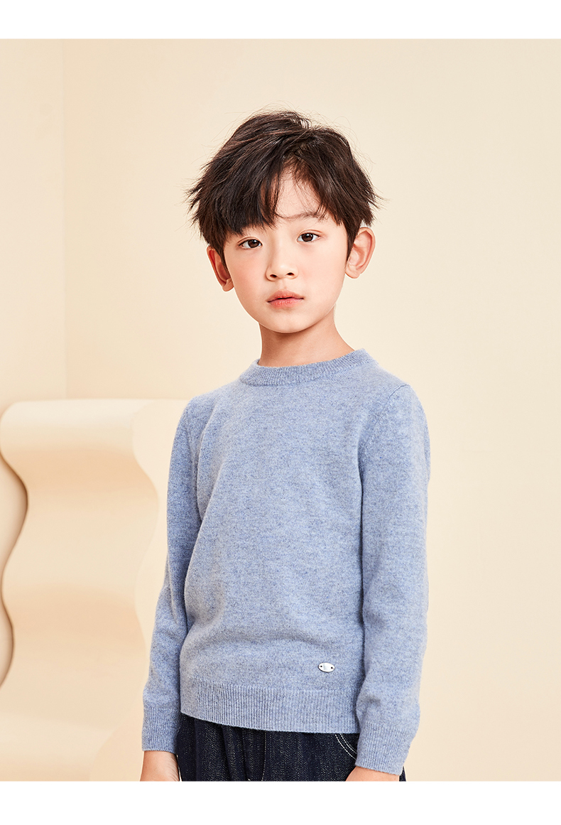 mettekids儿童羊绒衫春秋圆领大童毛衣男童薄款打底衫女童针织衫