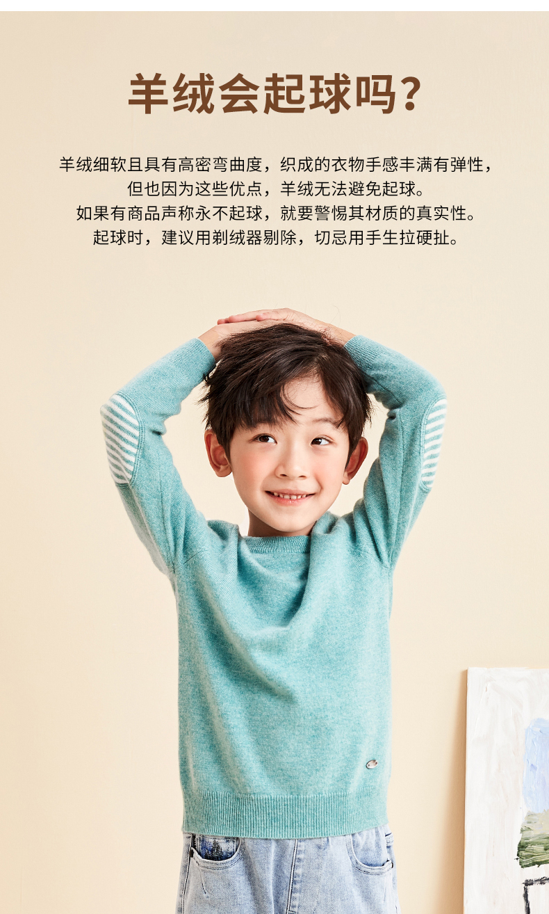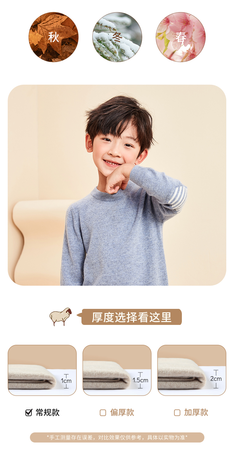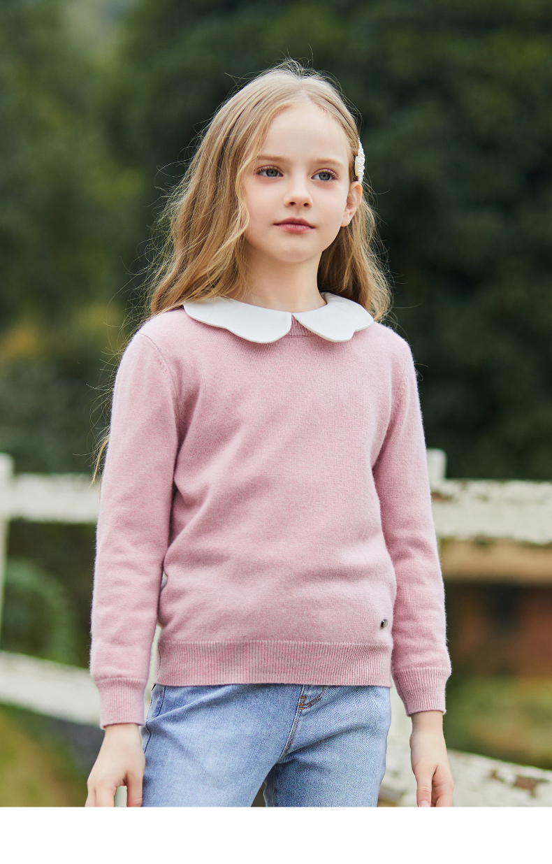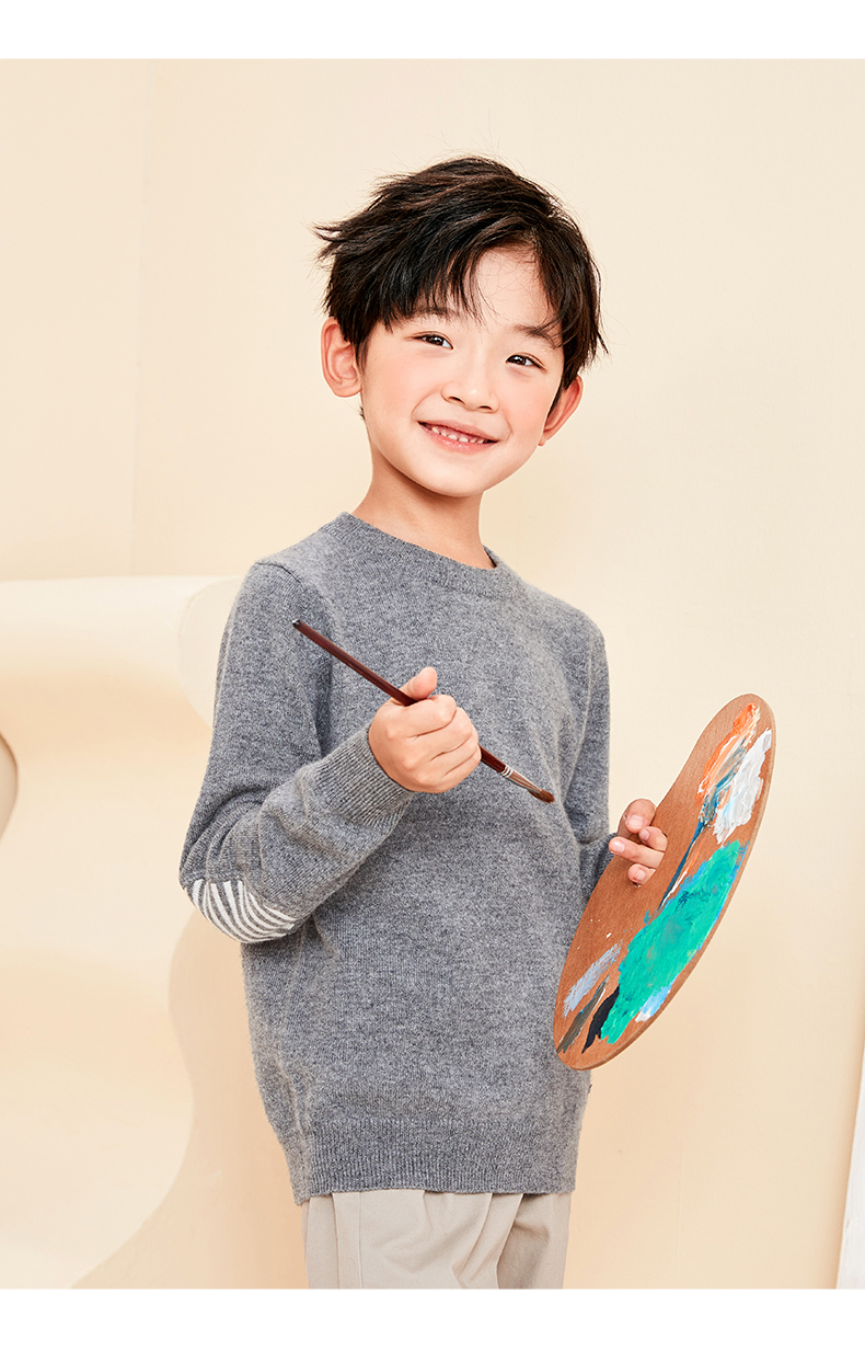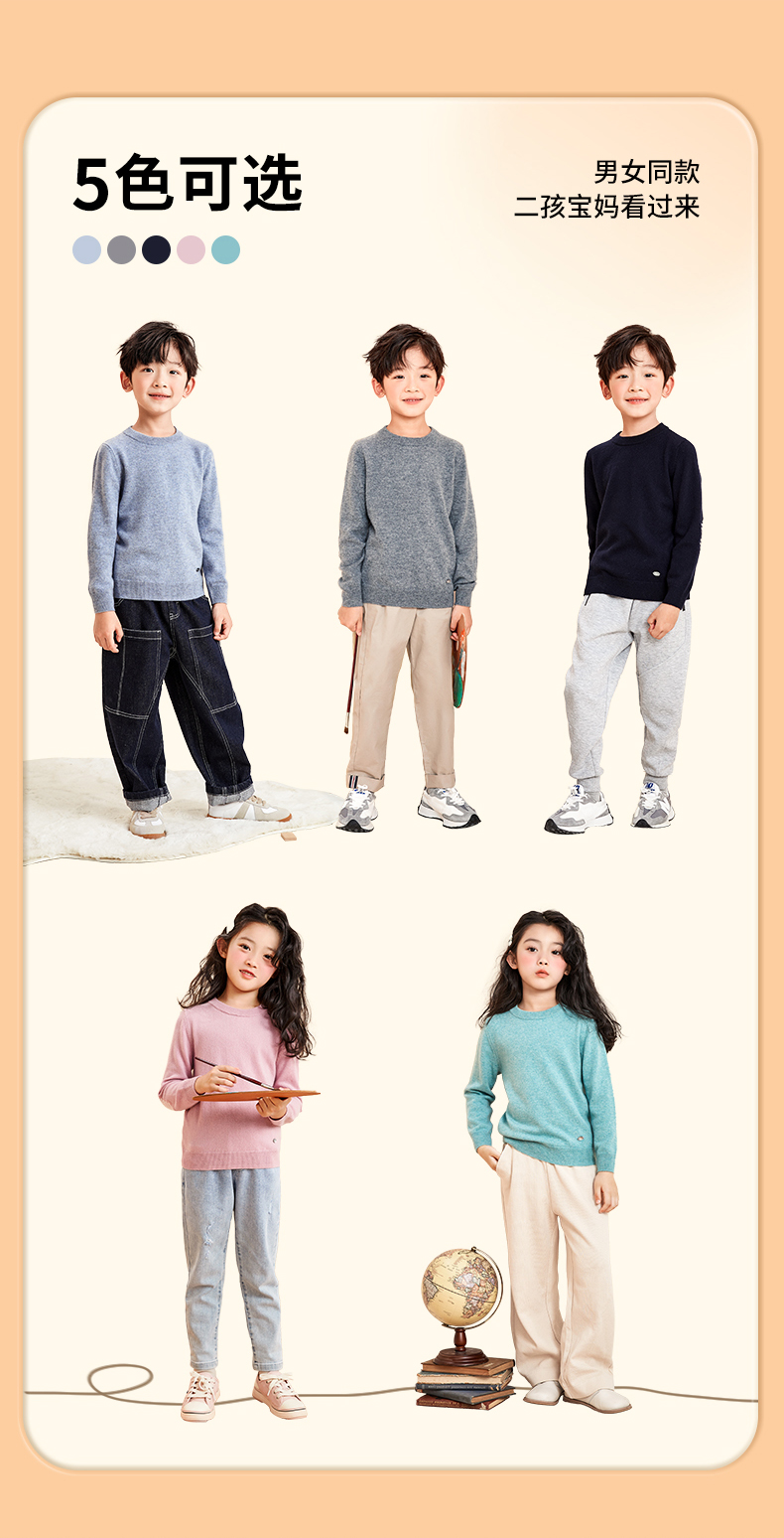 mettekids儿童羊绒衫春秋圆领大童毛衣男童薄款打底衫女童针织衫