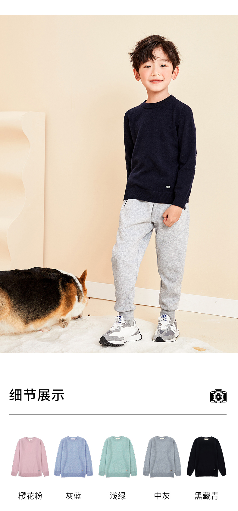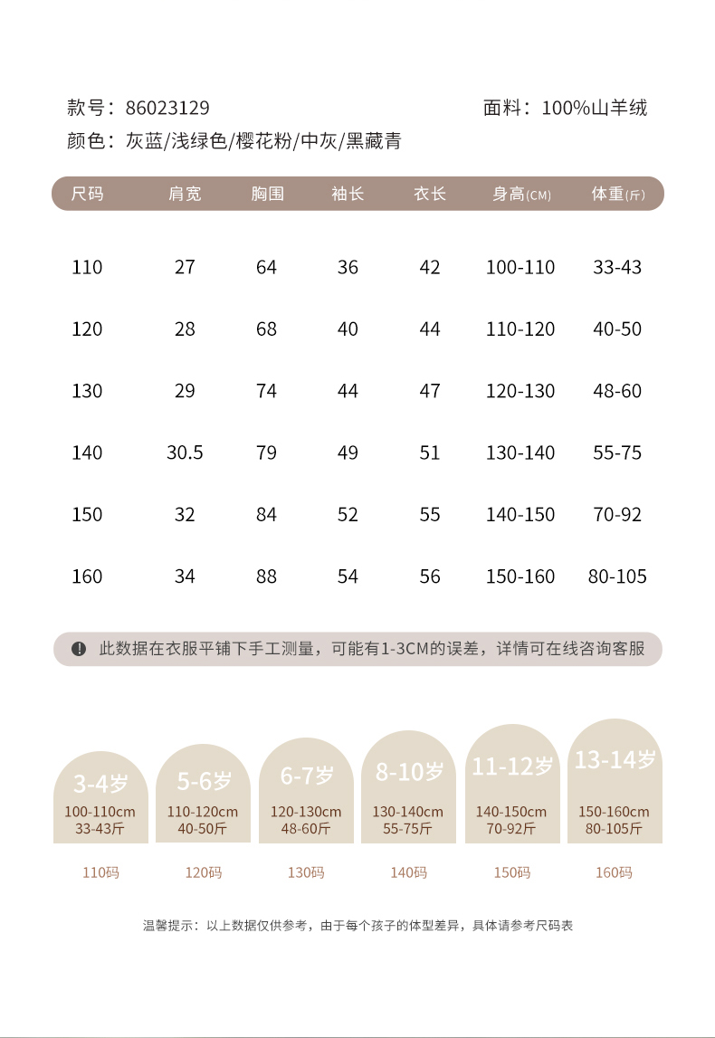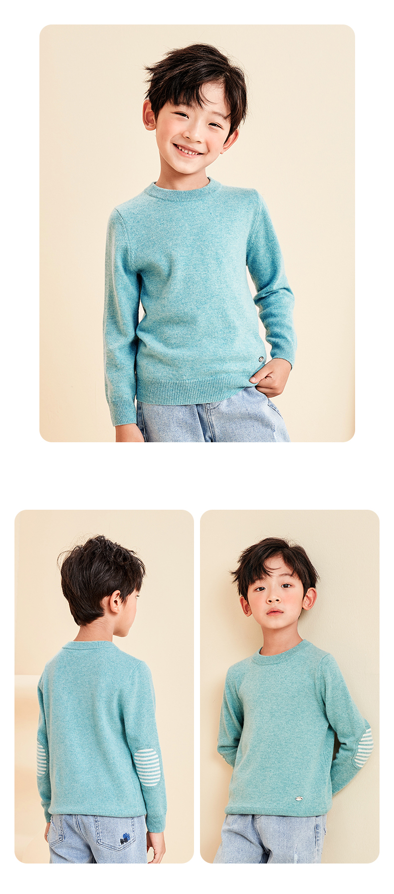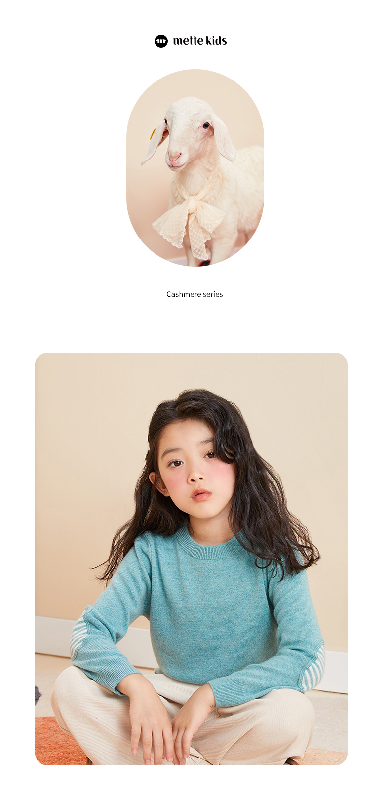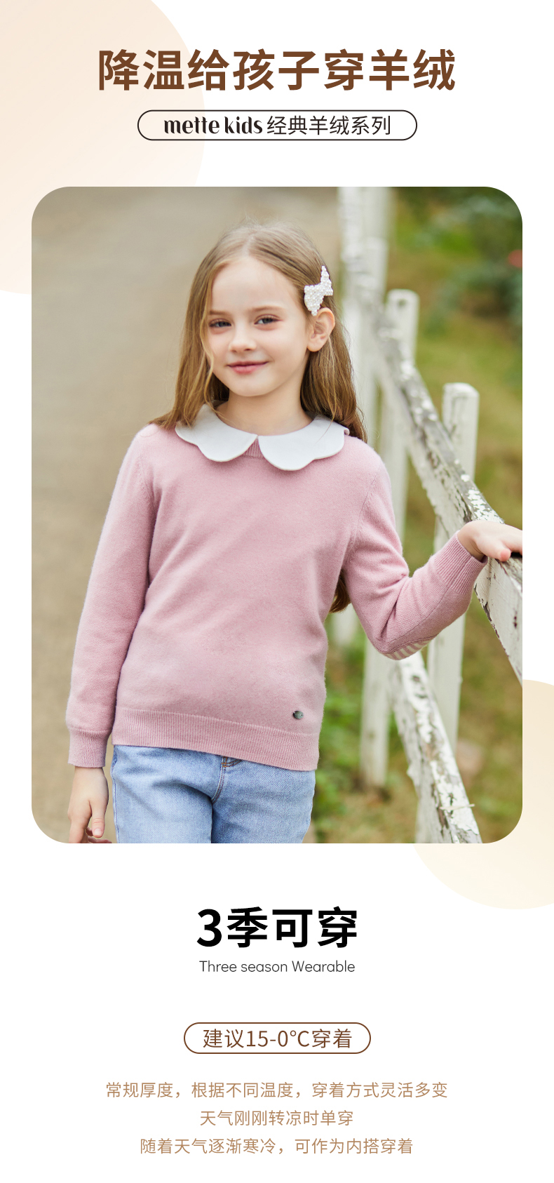 mettekids儿童羊绒衫春秋圆领大童毛衣男童薄款打底衫女童针织衫