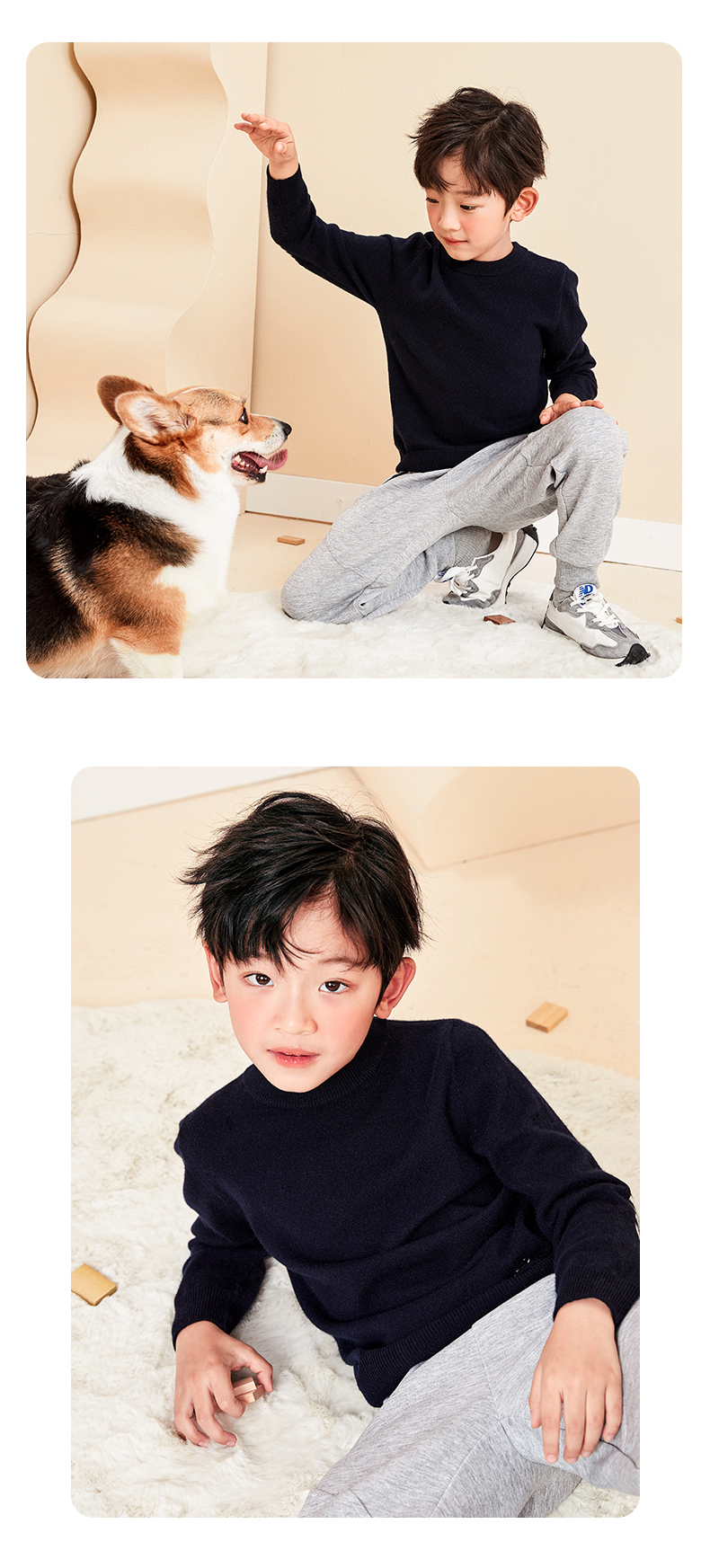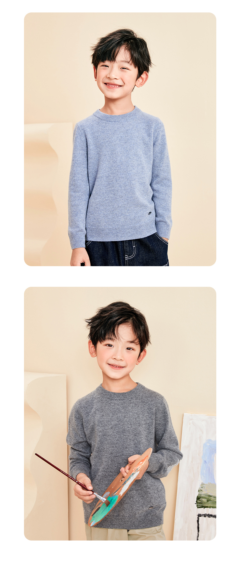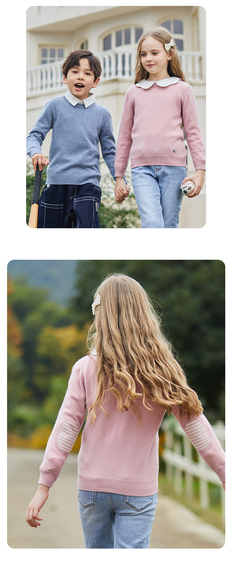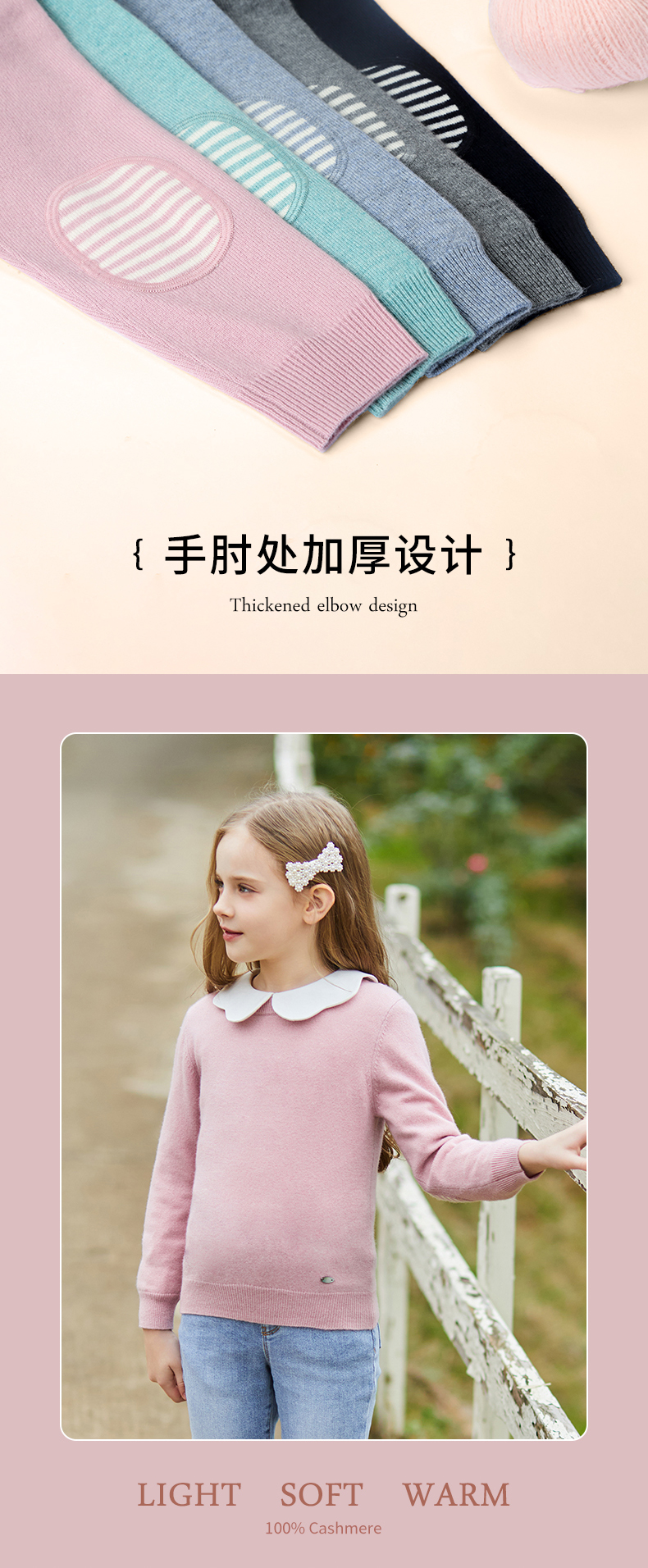 mettekids儿童羊绒衫春秋圆领大童毛衣男童薄款打底衫女童针织衫