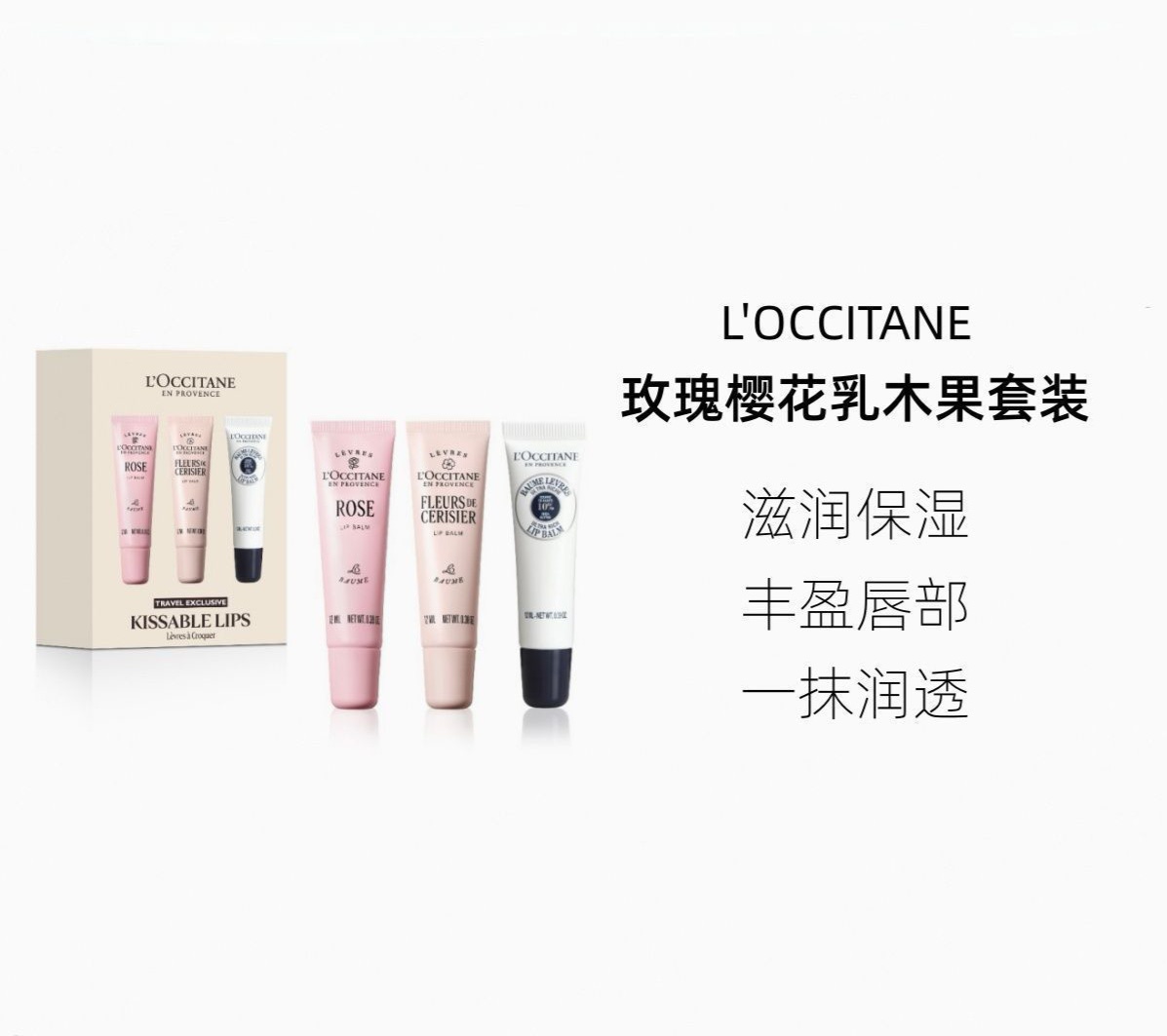 L'OCCITANE欧舒丹 香氛润唇膏(全新樱花/乳木果/瑰香 )12ml*3 滋润保湿补水留香