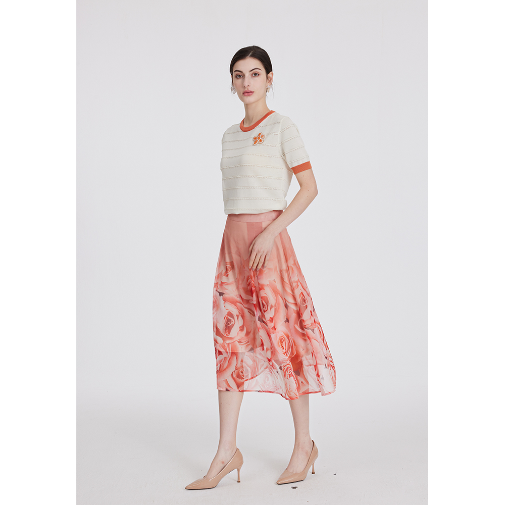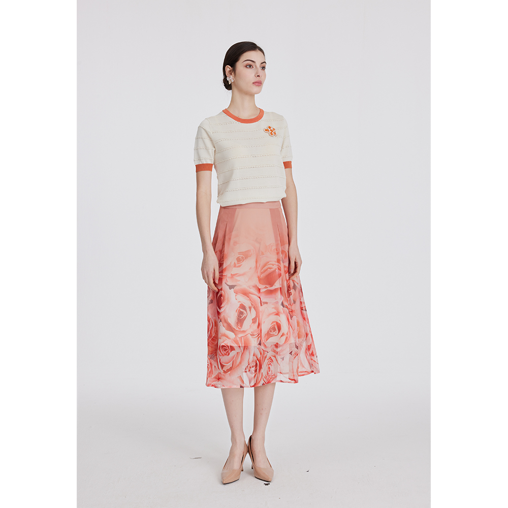 司歌雪纺半裙印花轻薄伞裙C891007X