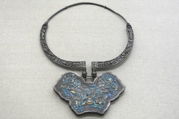 传统的银锁图案和繁复的纹样配以简单艳丽的底色,对比强烈,设计感极强。