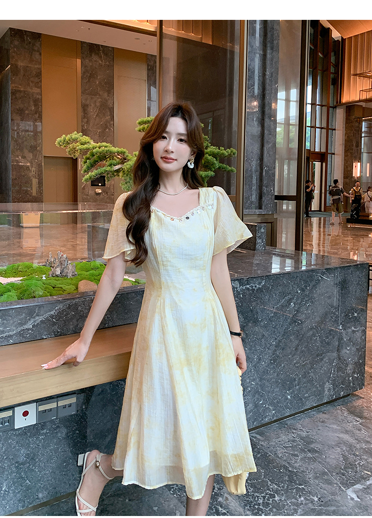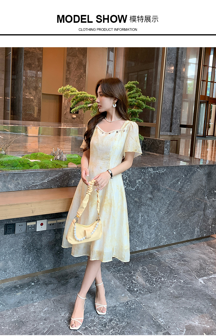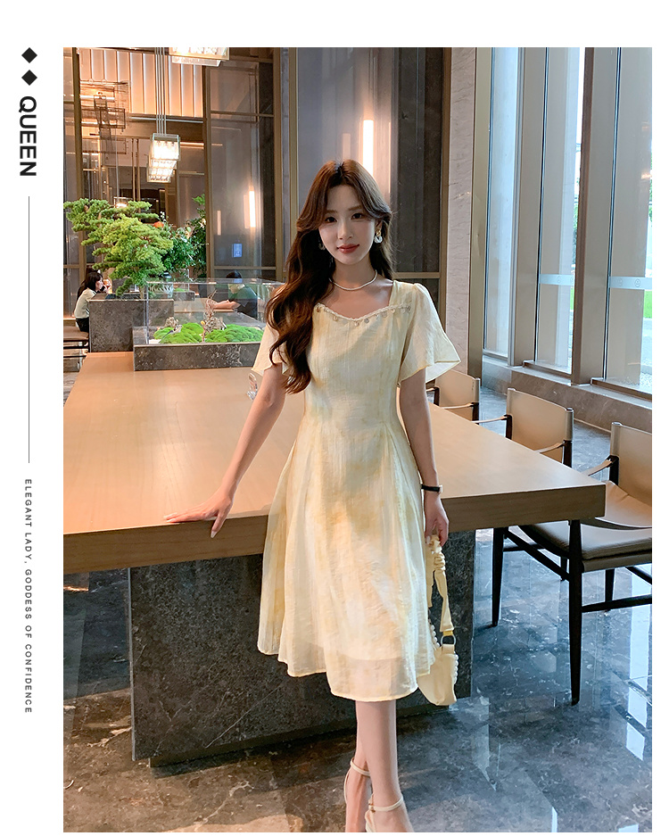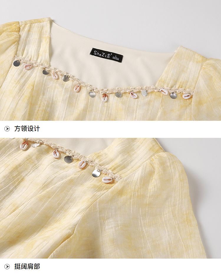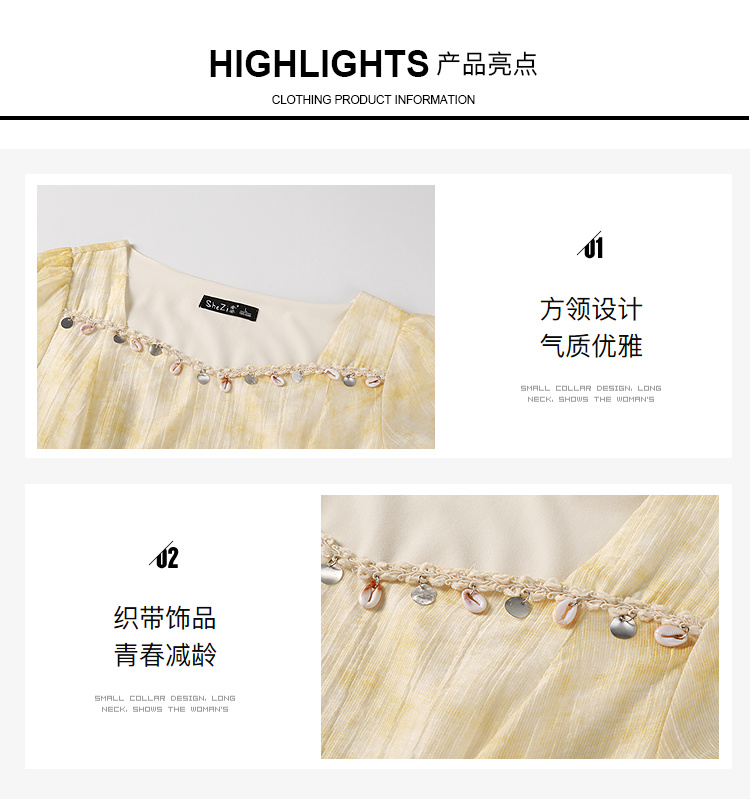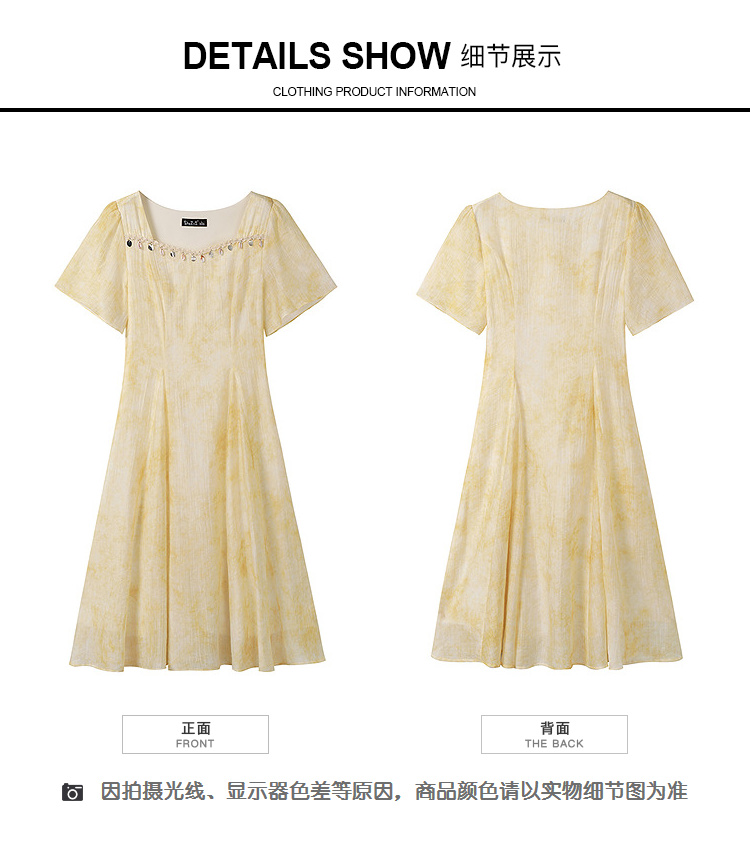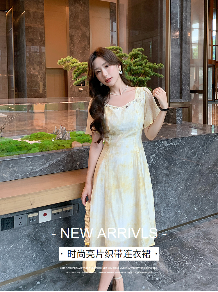 奢姿大码女装2025夏季减龄亮片饰品设计时尚裙子胖妹妹方领连衣裙9952853383