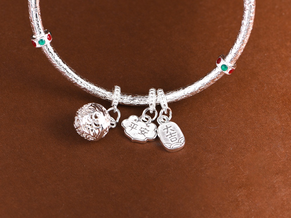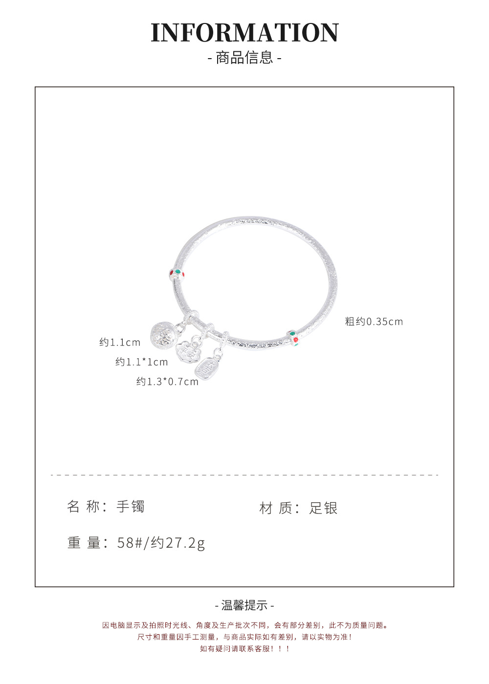 【玲珑平安】足银999圆棍实心平安锁玲珑球手镯【SCH-SZ0026-1.2-87】