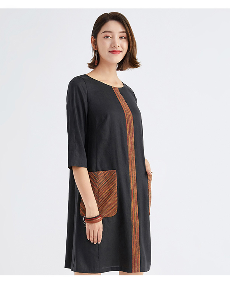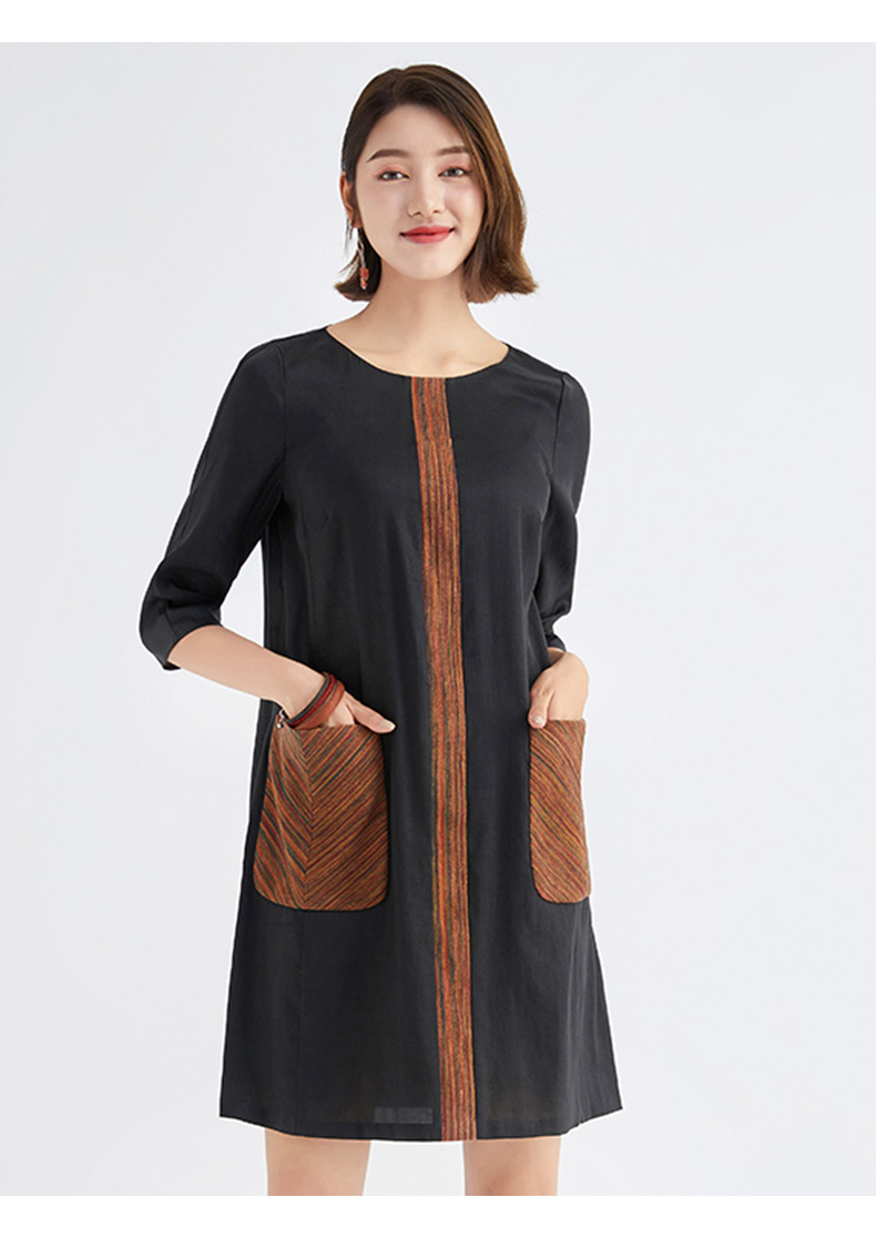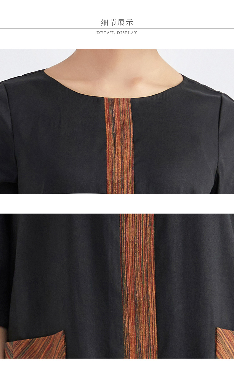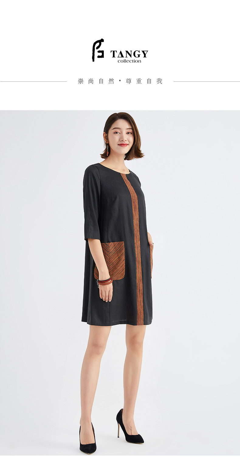 TANGY Collection/天意精品林隐系列春秋新品真丝莨绸拼撞连衣裙