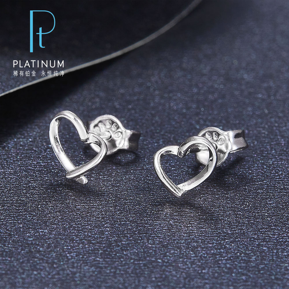 【限时8.8折】PT950 【国际铂金协会】铂金镂空爱心耳钉(直针配铂金耳迫)(BES00036)预售产品下单后不退款不退货不换货不补差价)预售产品下单后不退款不退货不换货不补差价