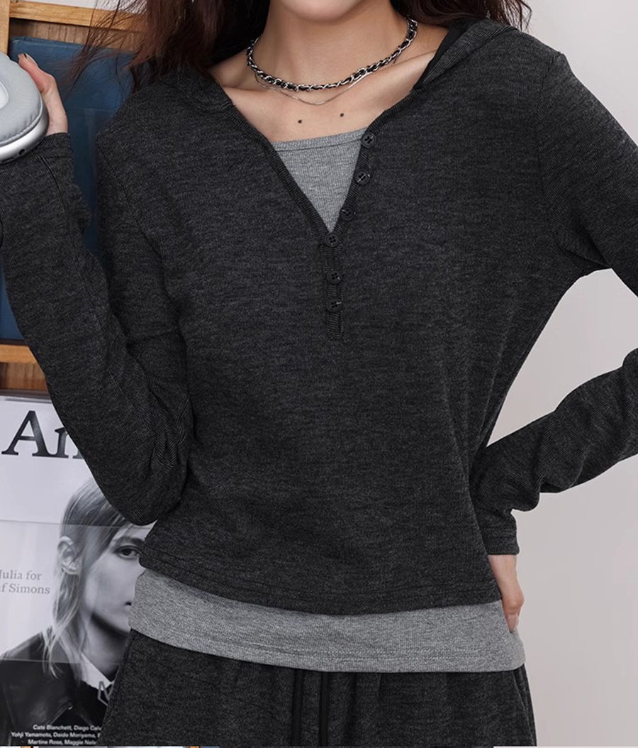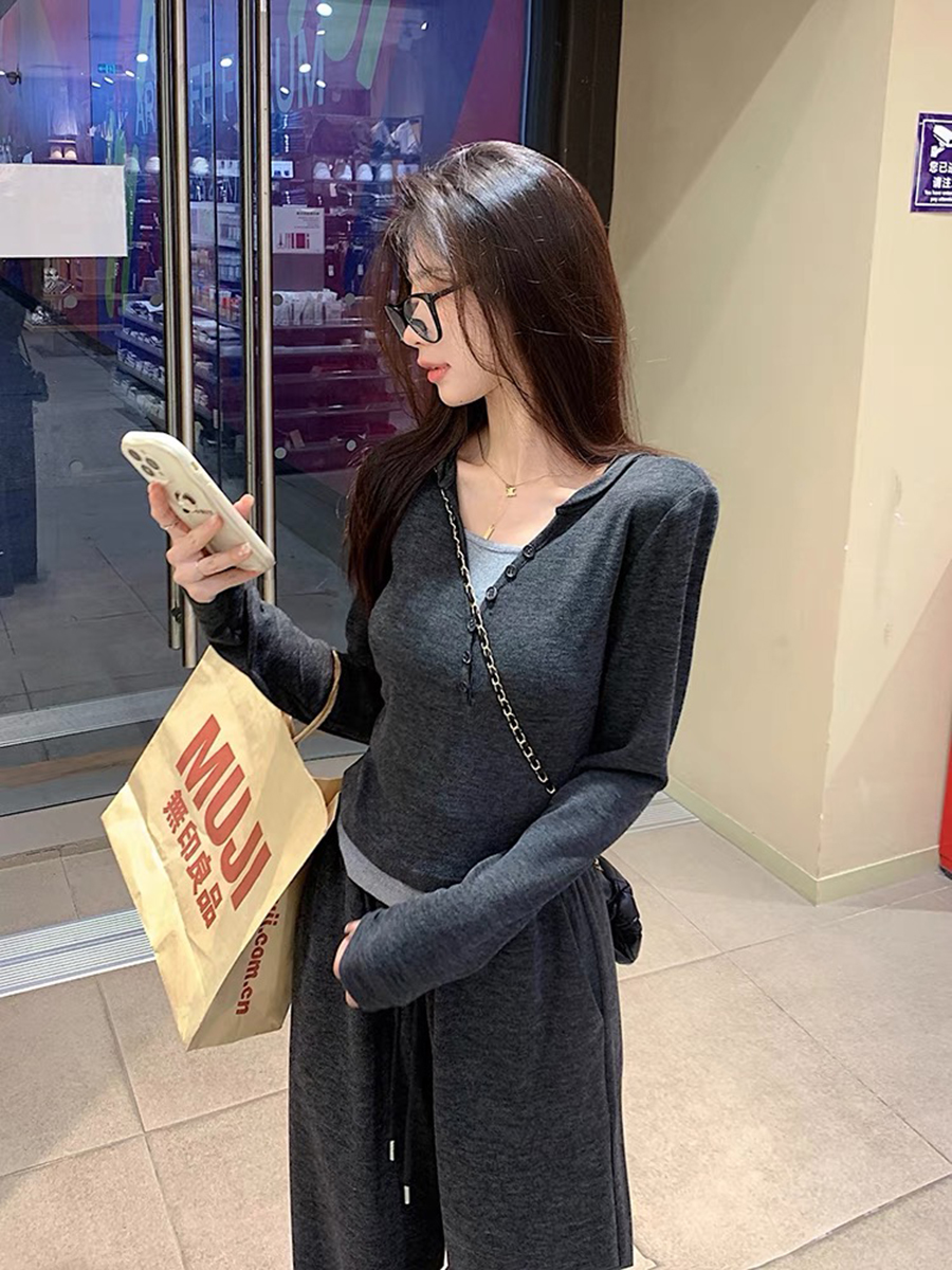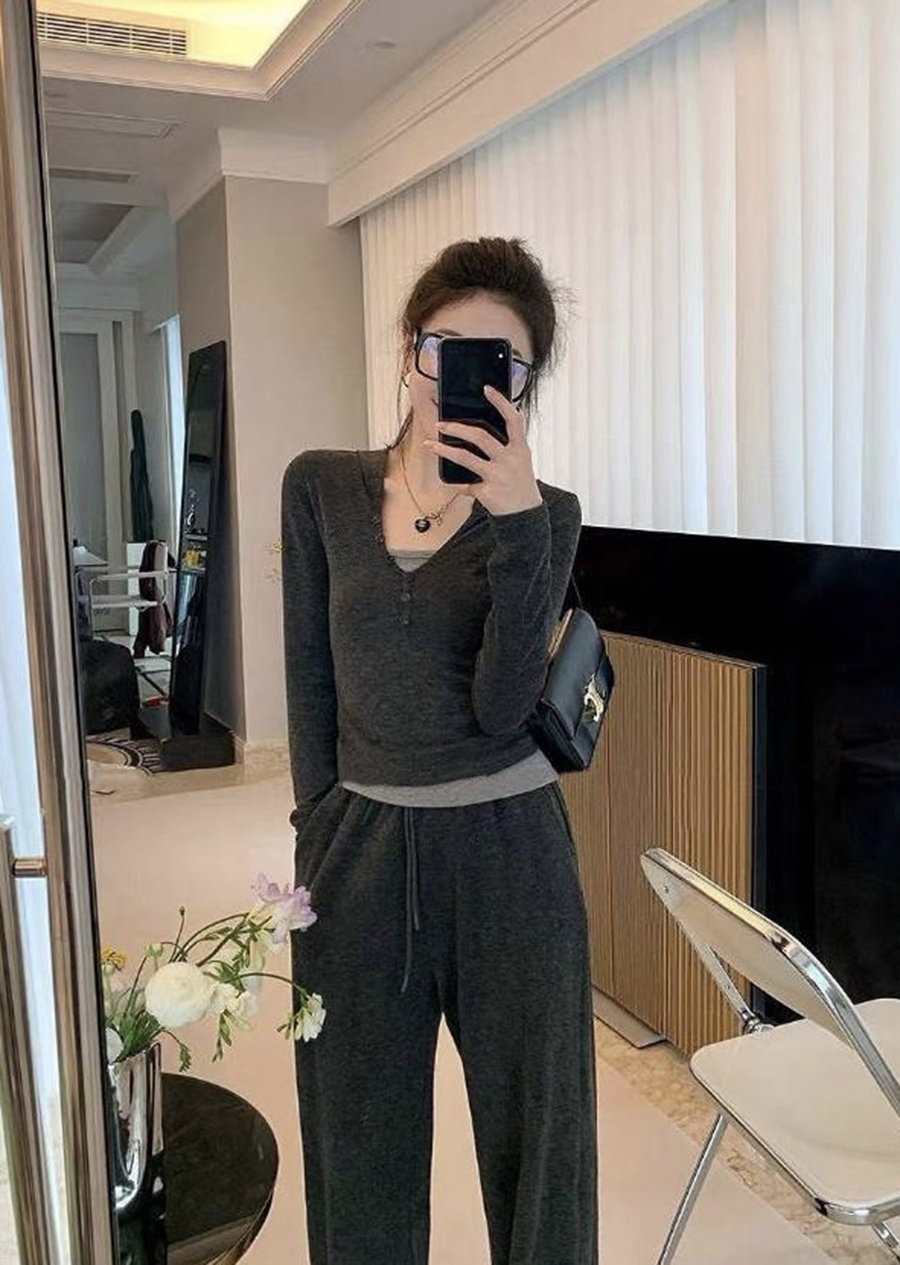 【百图lulu定制】【糯米套装】【预售10天发】拼接假两件上衣 + 针织抽绳 休闲裤长裤