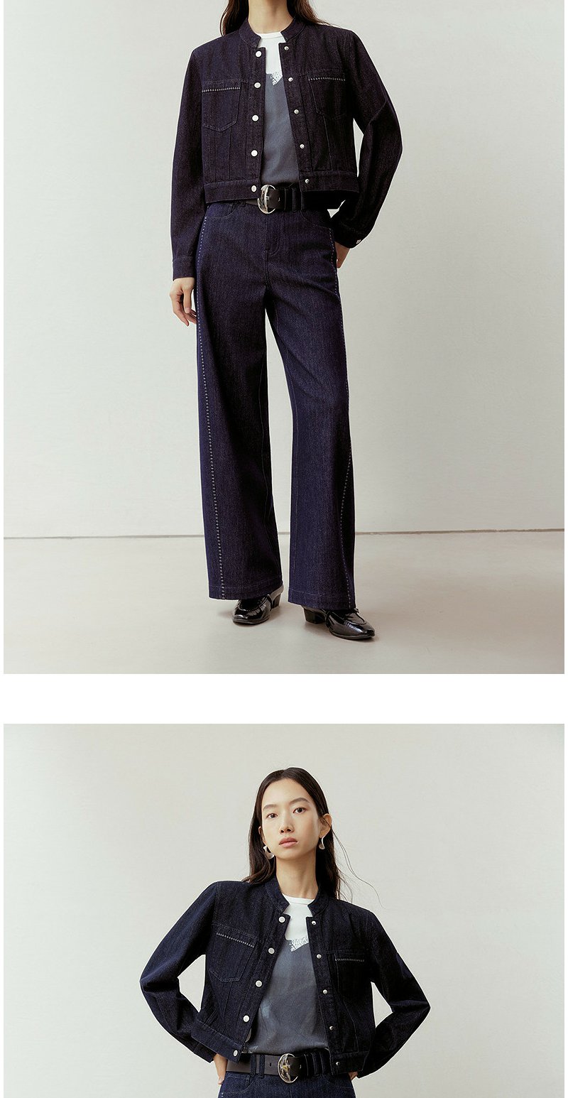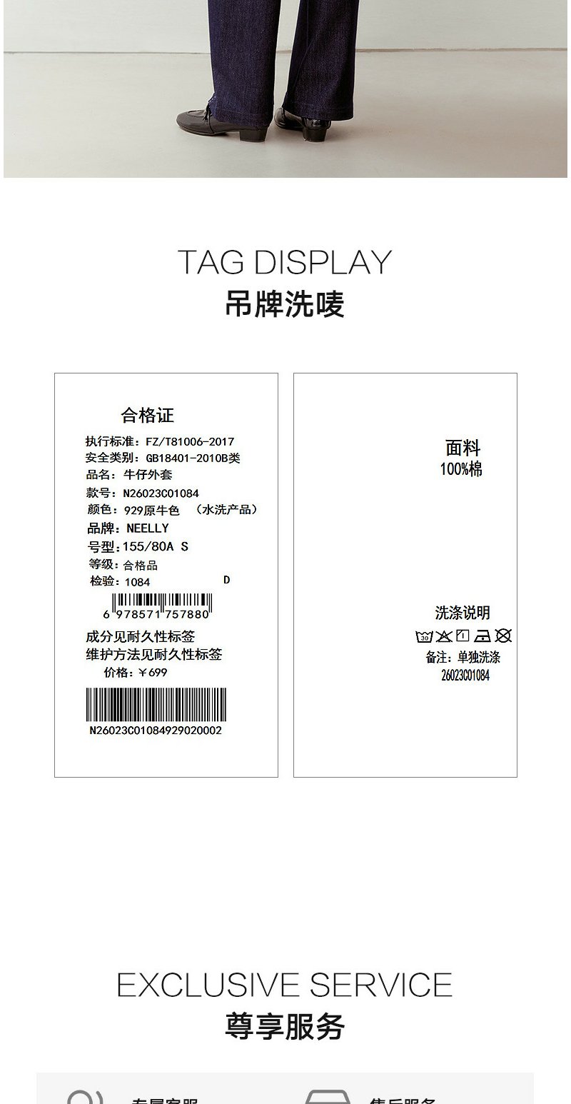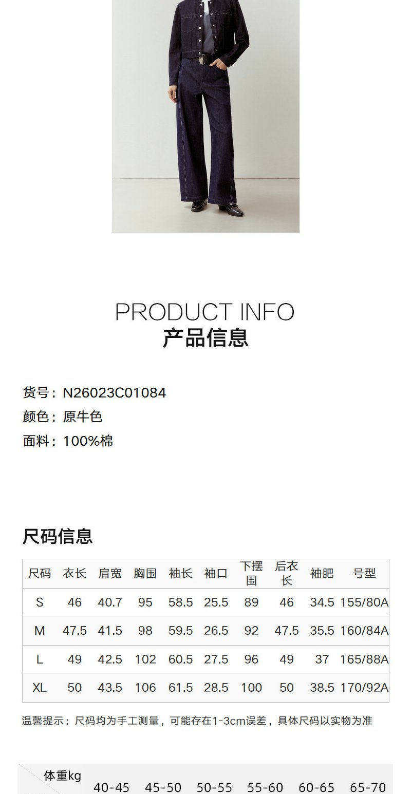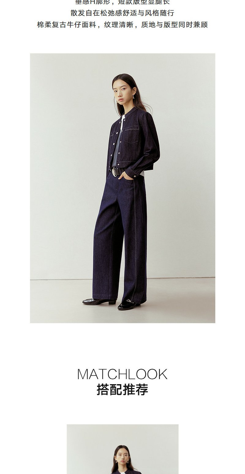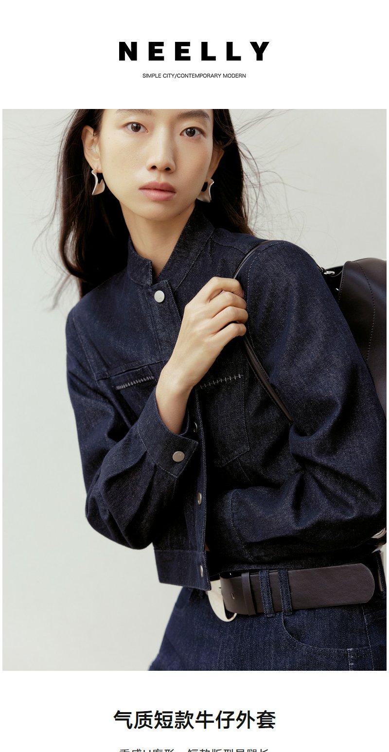 NEELLY纳俪商场同款春季新款复古气质短款牛仔外套女垂感舒适上衣N26023C01084