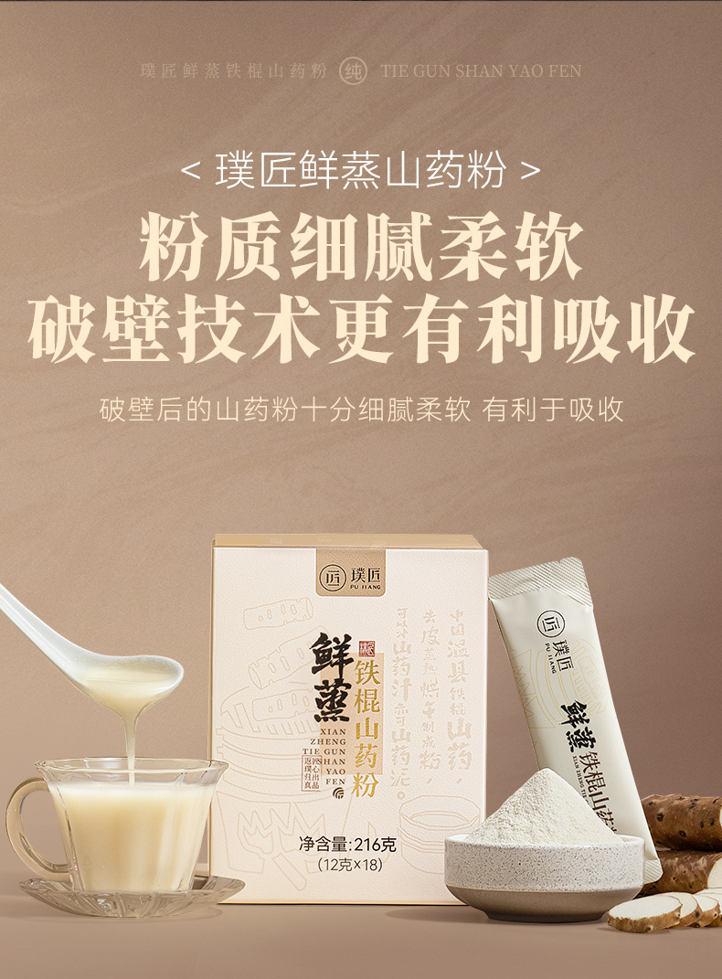 璞匠鲜蒸铁棍山药粉官方旗舰店河南焦作怀山药冲饮即食代餐早餐粉