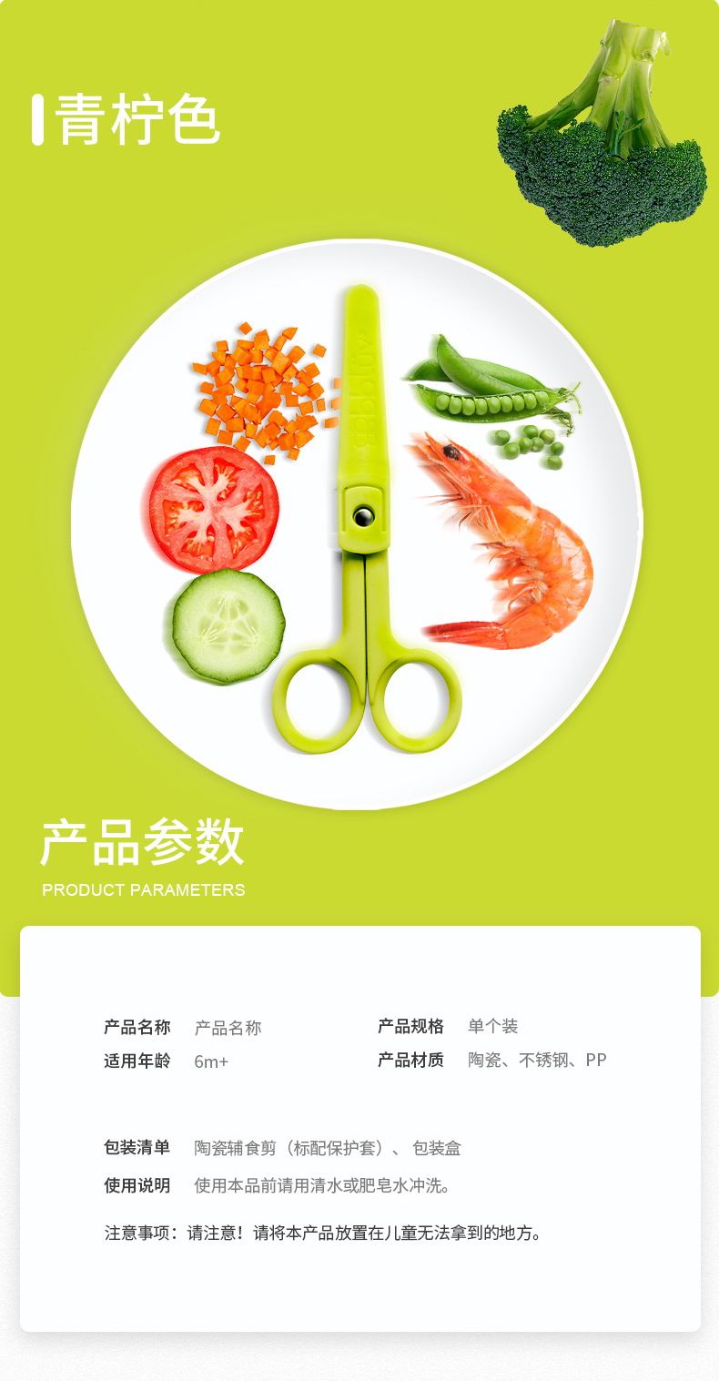 加拿大进口bbluv 陶瓷辅食剪刀宝宝饭儿童剪肉菜外带便携剪刀