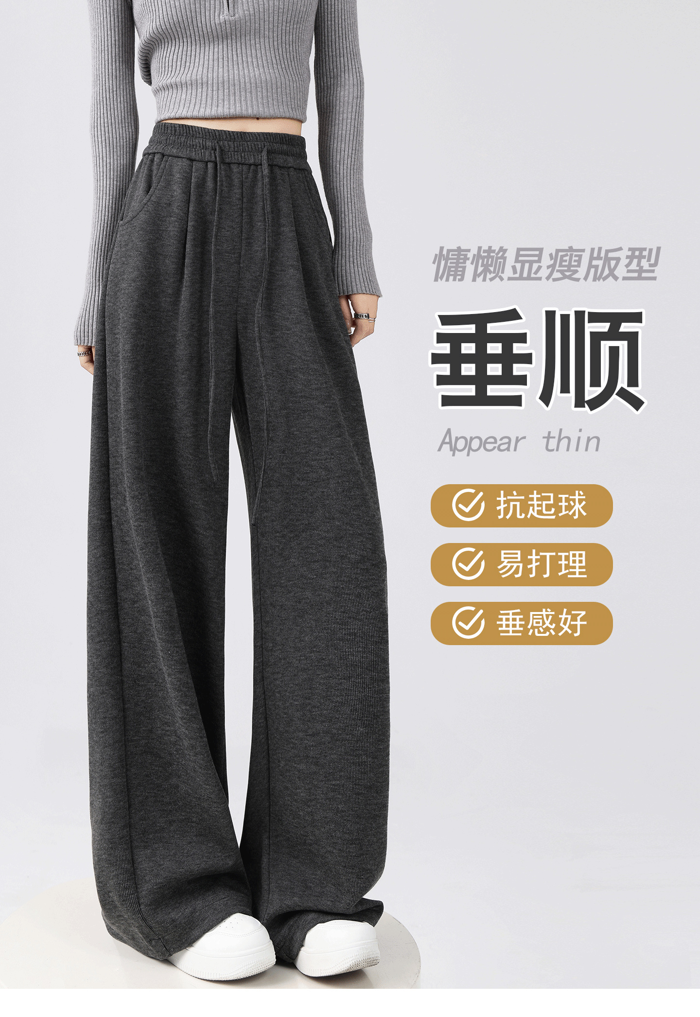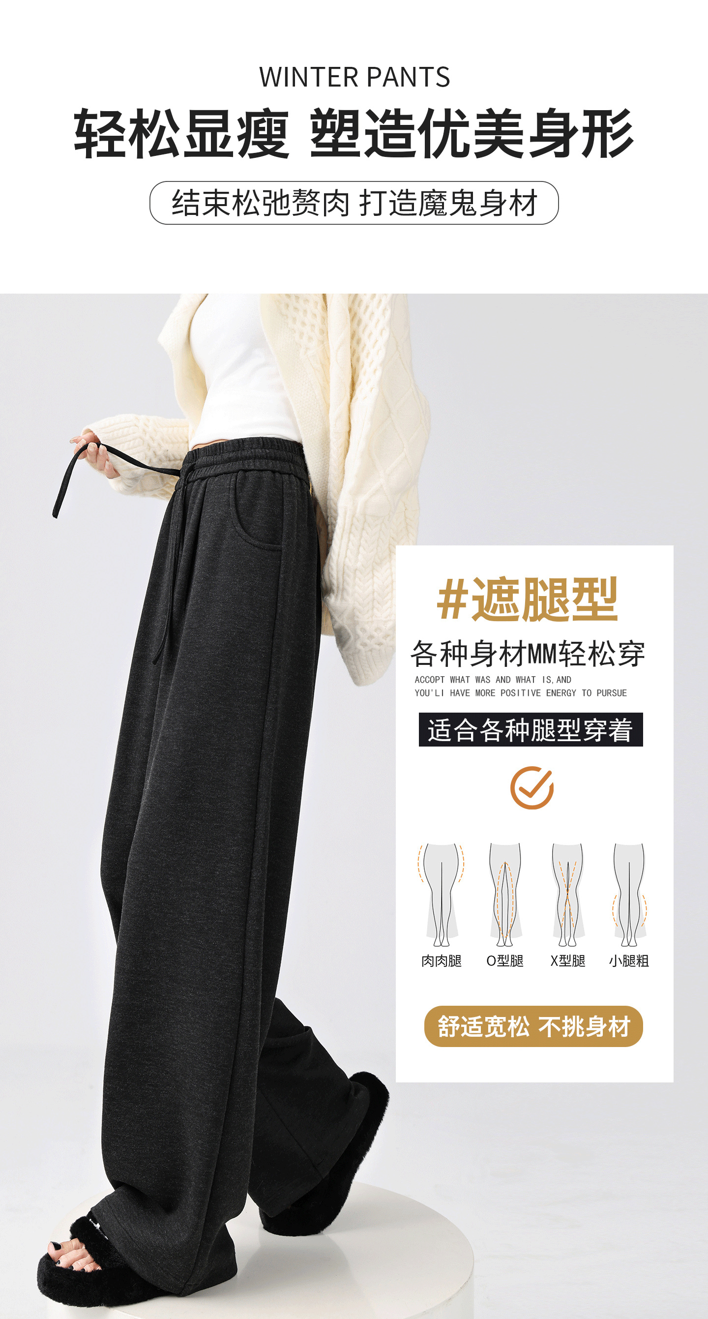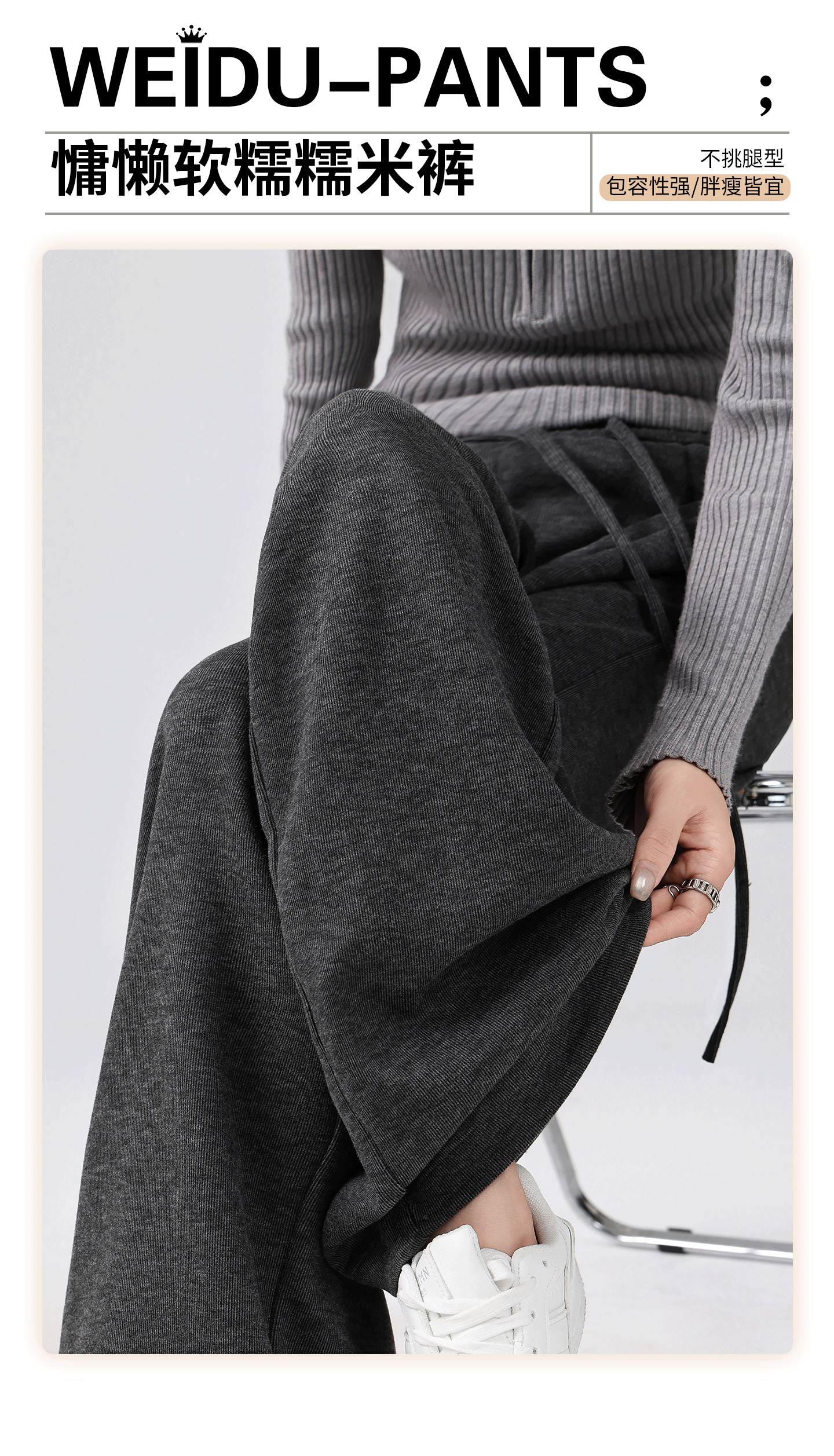 【轻梵 慵懒风加绒糯米裤 】美拉德阔腿裤 加绒保暖 质感亲肤 时尚减龄简约百搭 MWX
