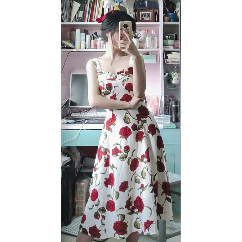 黛唯梵碎花吊带连衣裙2022夏季新款名媛风A性感高质量字裙法式复古茶歇长裙
