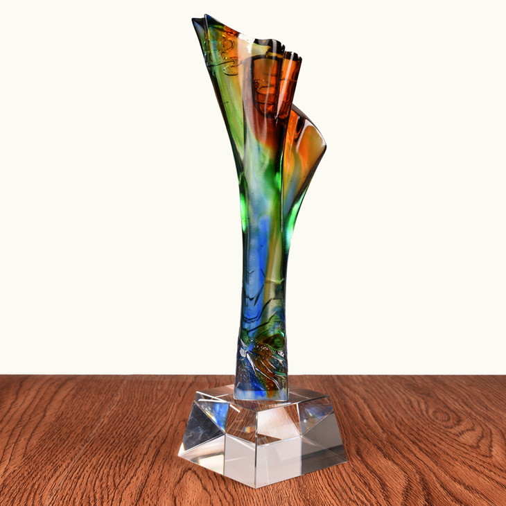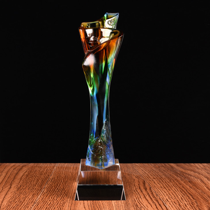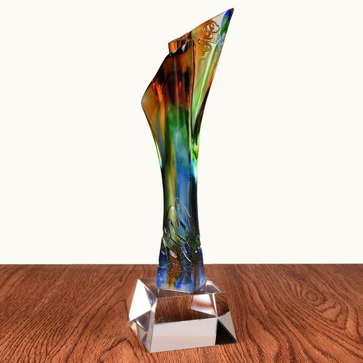 引领者琉璃奖杯定制 优秀员工奖杯定做 先进工作者奖杯创意纪念品