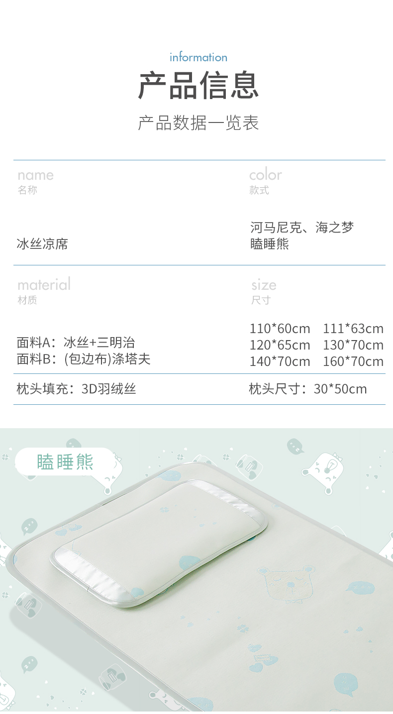 第一站婴儿凉席冰丝新生儿宝宝幼儿床枕头套儿童凉席枕巾透气席子