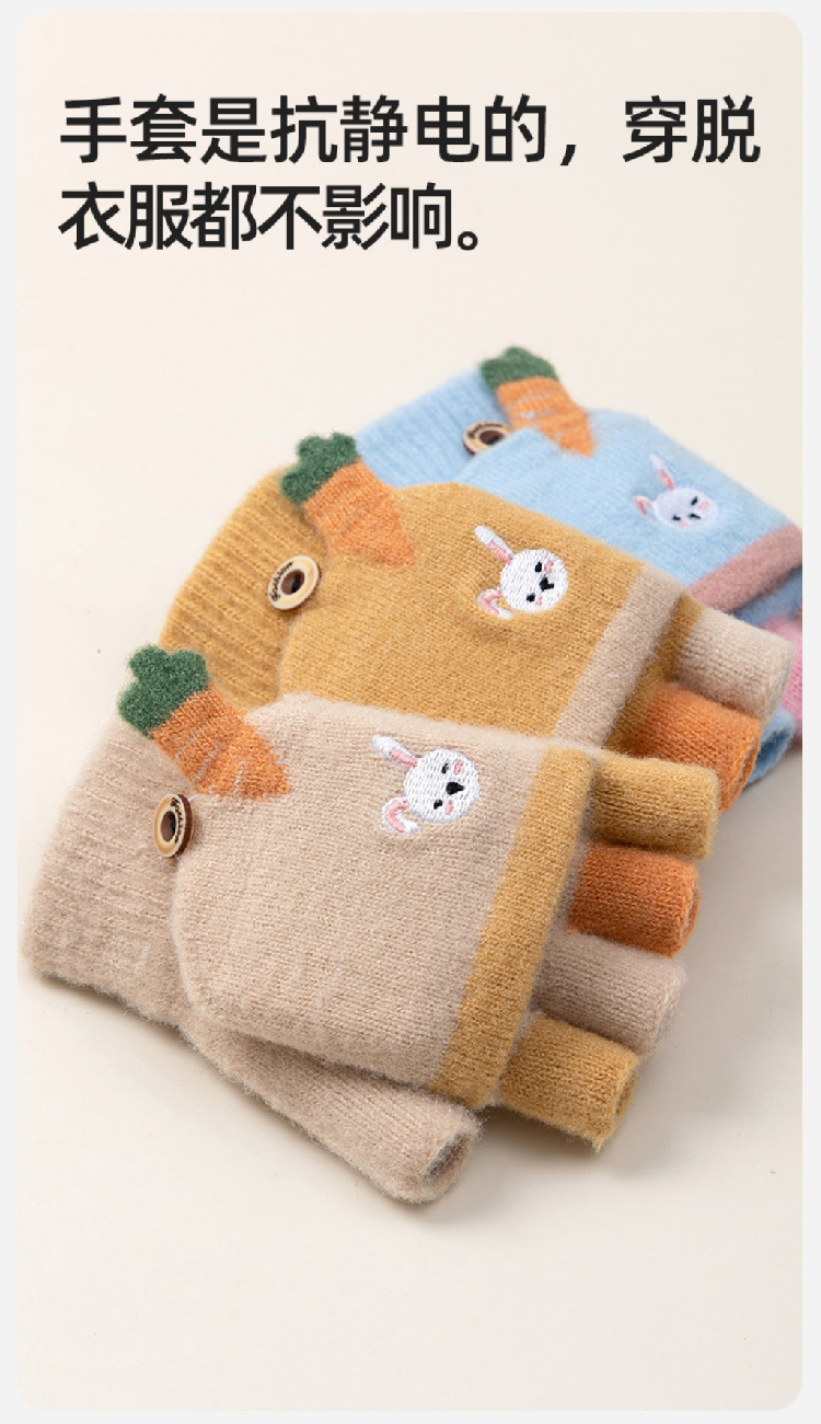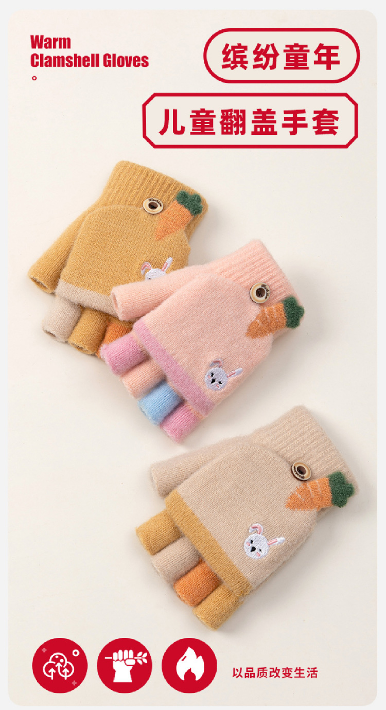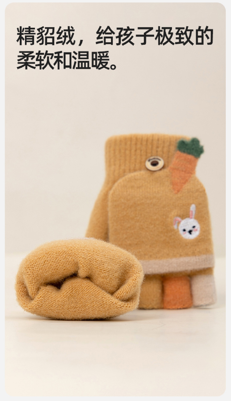 【精貂绒儿童手套】冬季男女童半指翻盖针织手套 防寒保暖男女宝宝可爱卡通露指套(2~10岁)