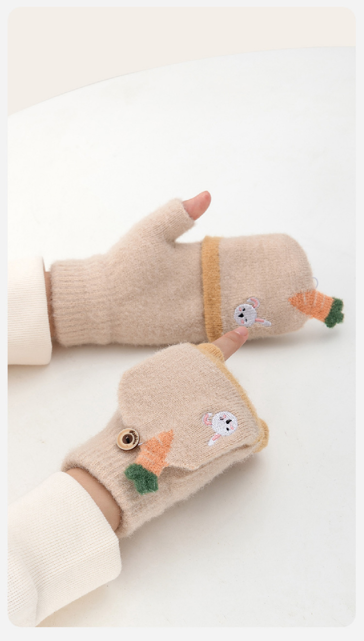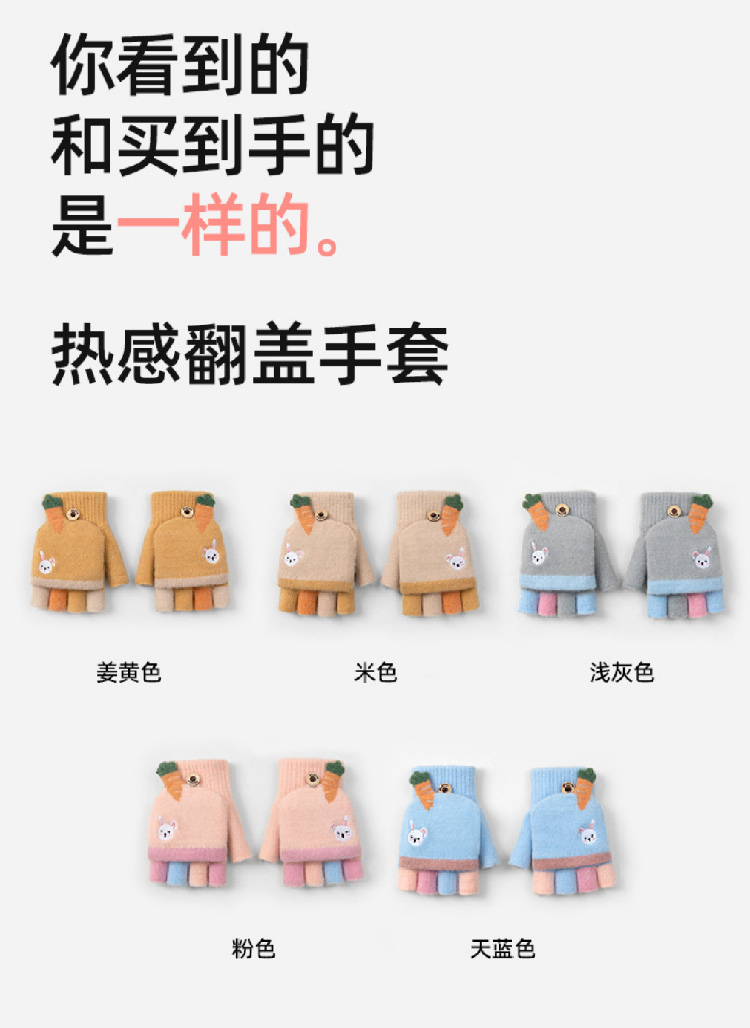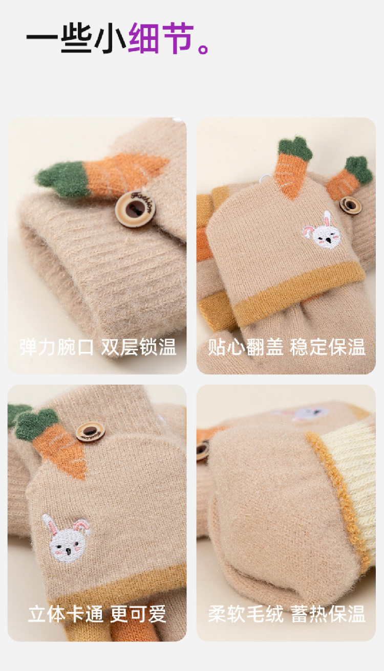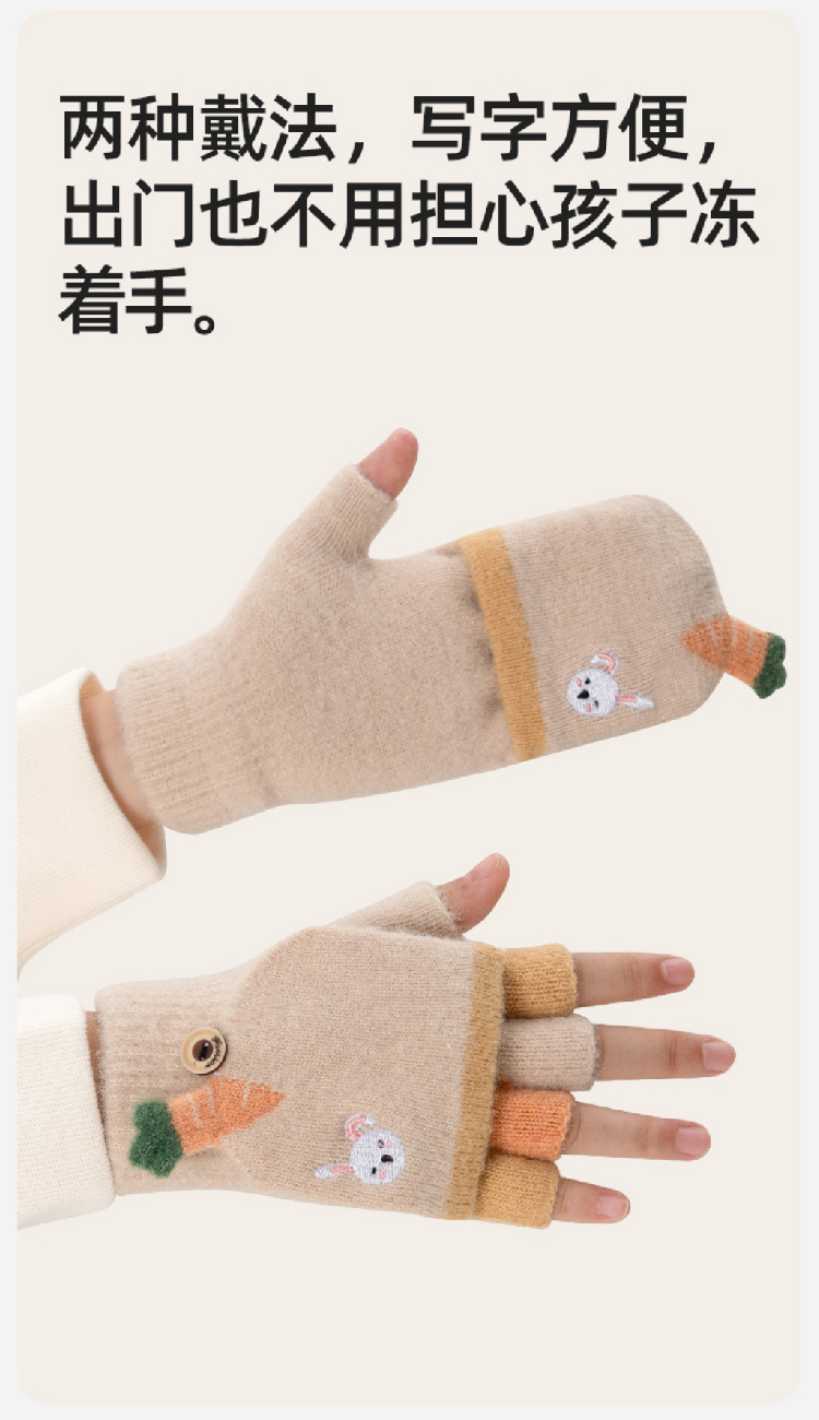 【精貂绒儿童手套】冬季男女童半指翻盖针织手套 防寒保暖男女宝宝可爱卡通露指套(2~10岁)