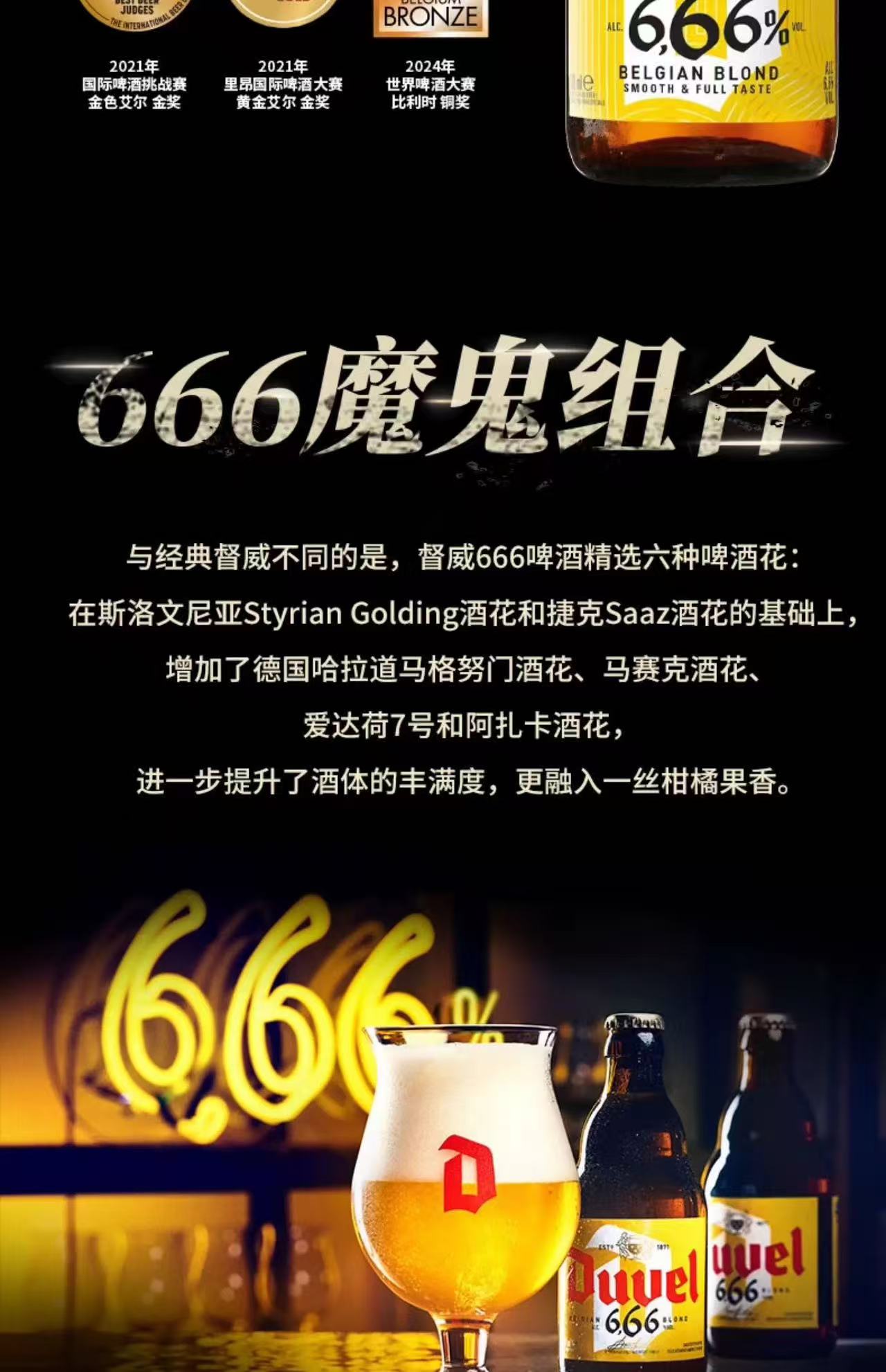 督威666比利时黄金艾尔啤酒 酒精度:6.66° 麦芽度:14.8°