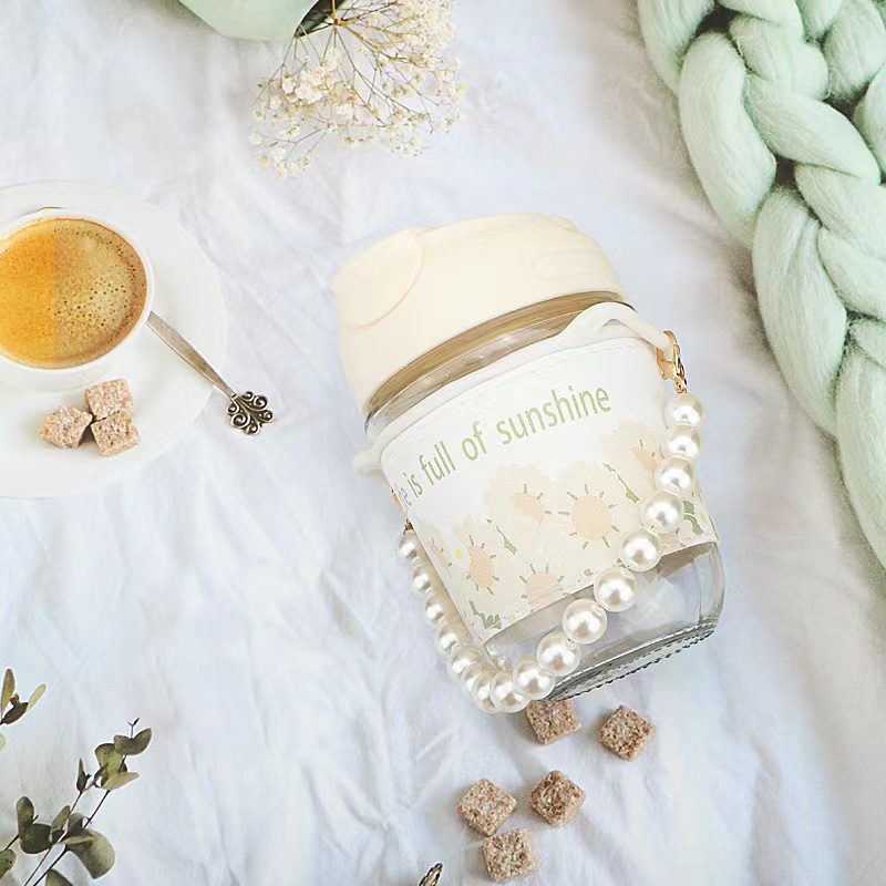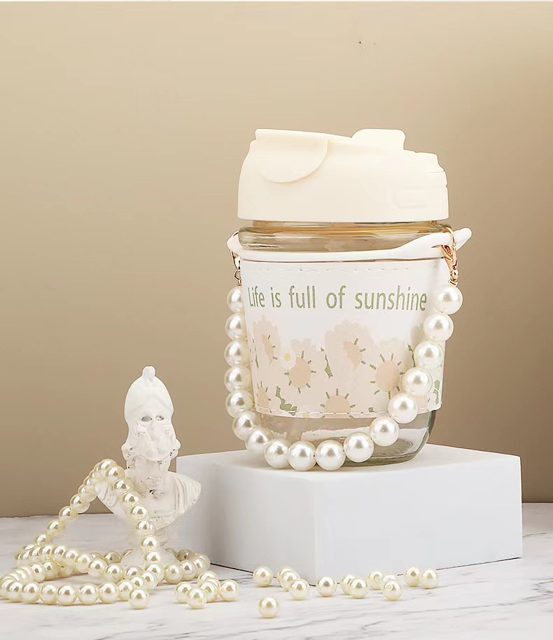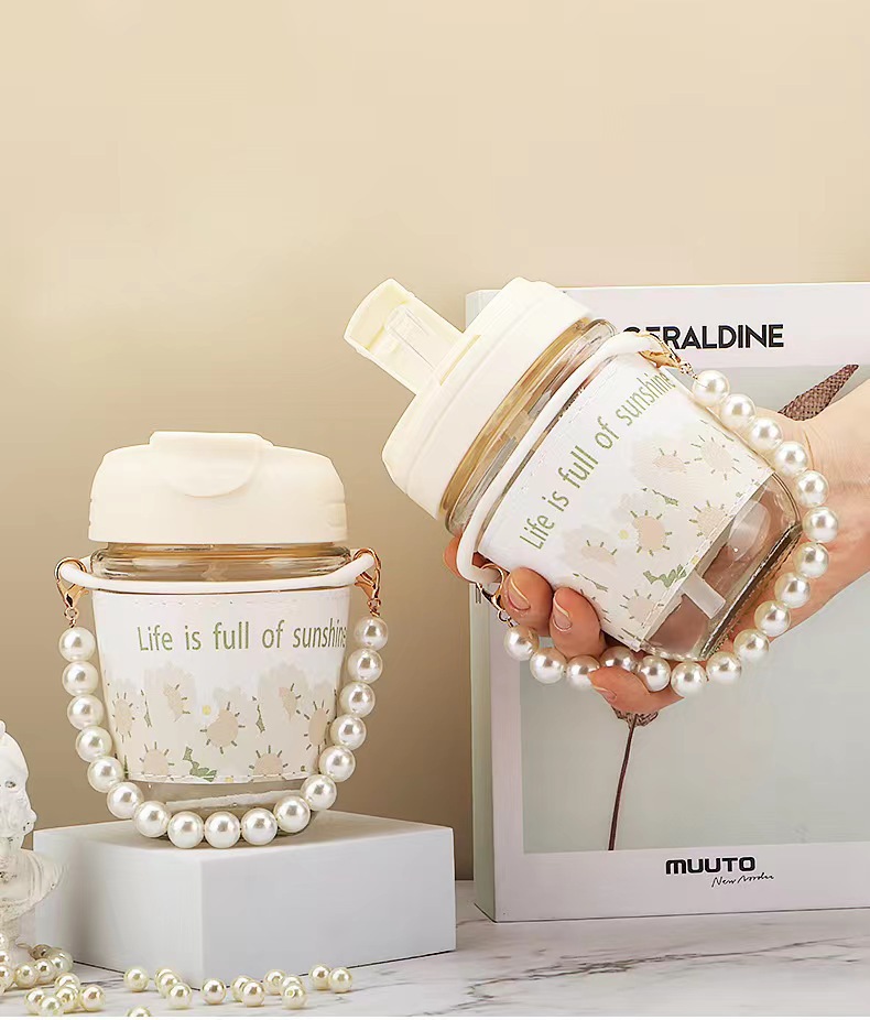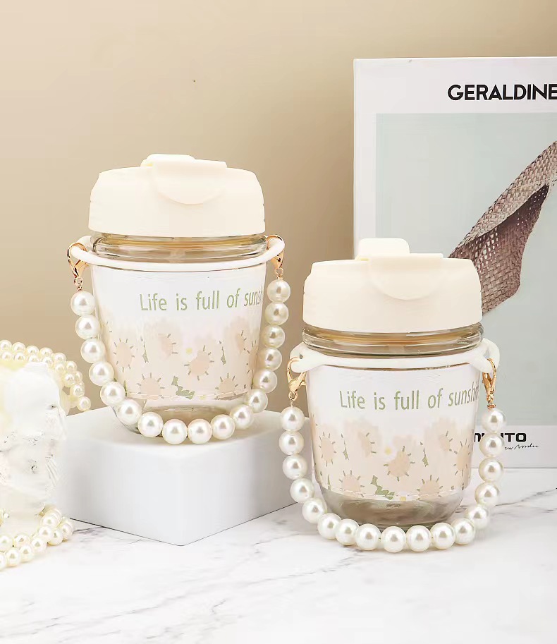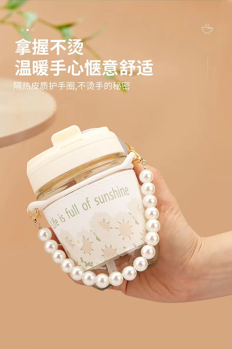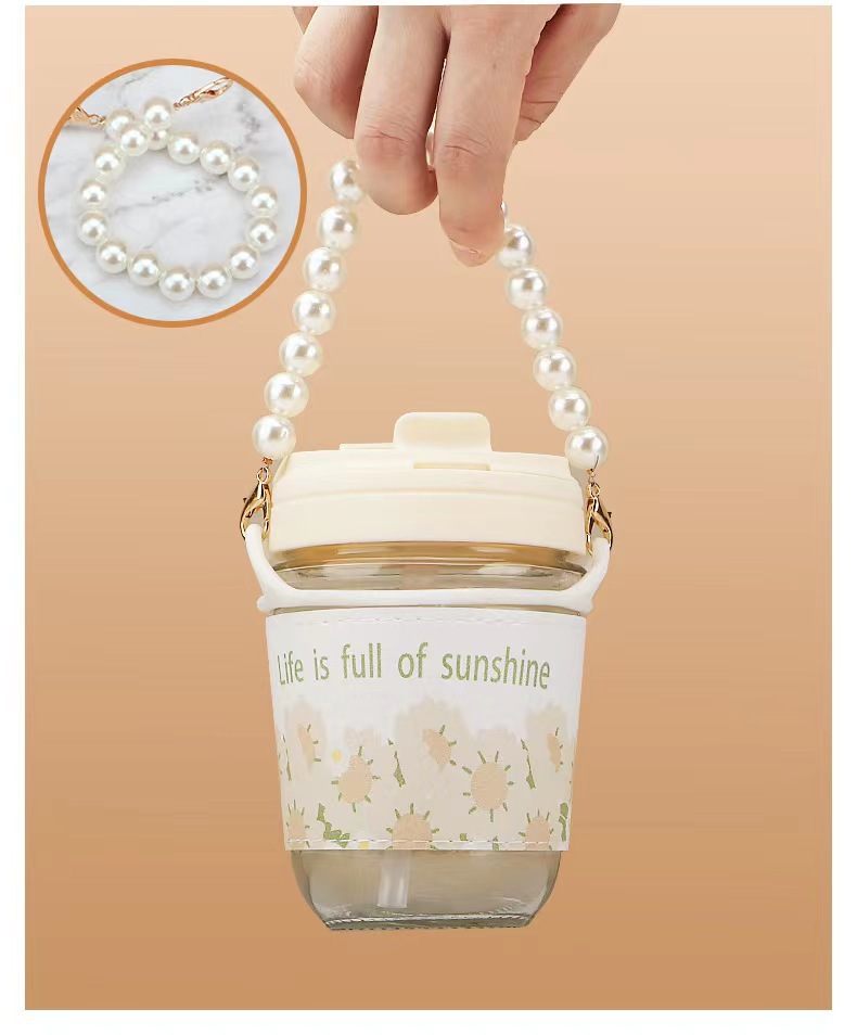 黛唯梵【水杯女手提珍珠杯伴手礼】郁金香杯子便携牛奶咖啡杯玻璃礼品吸管杯