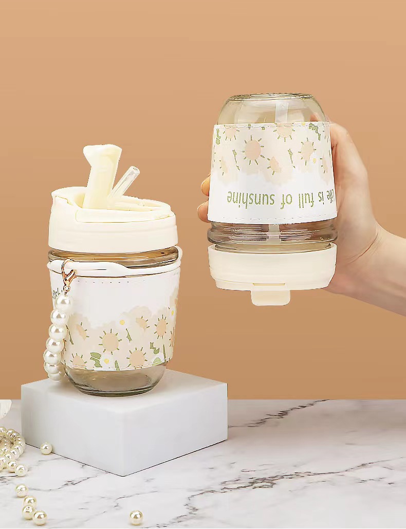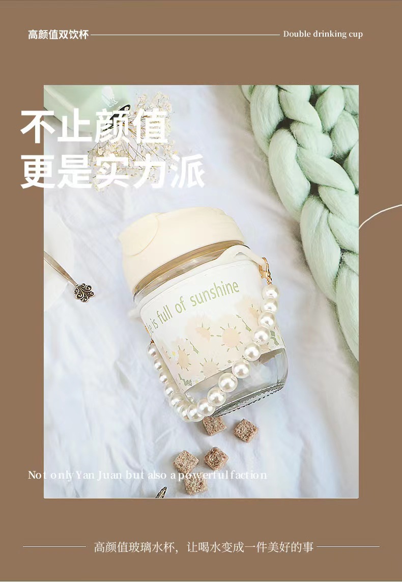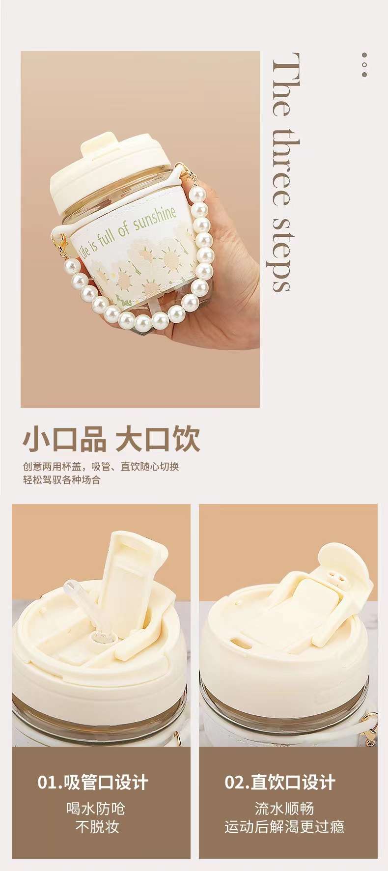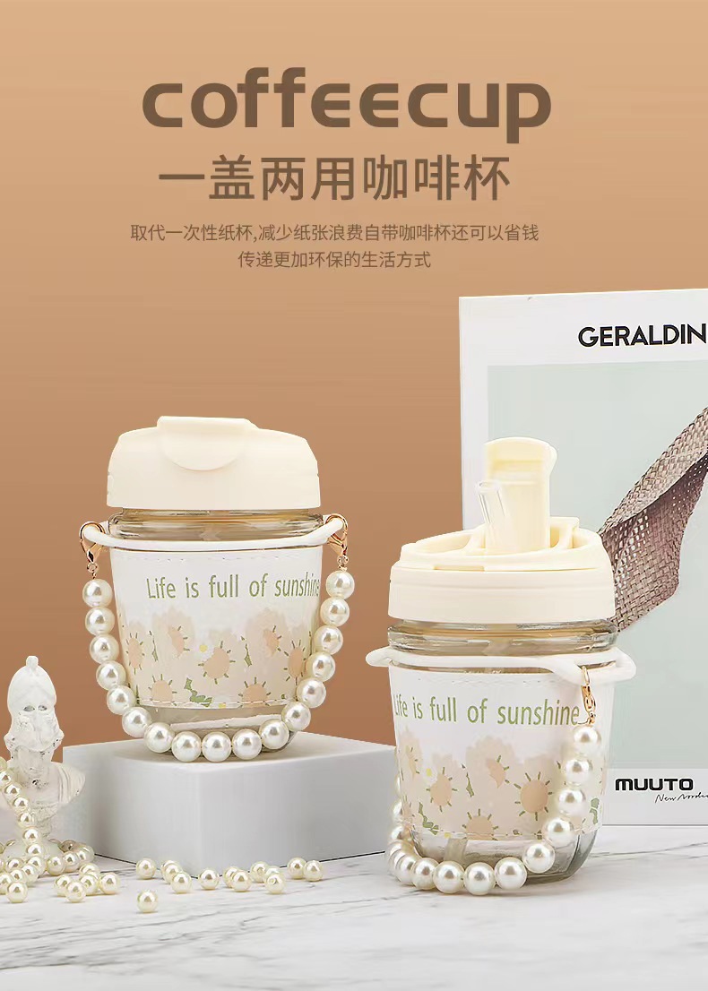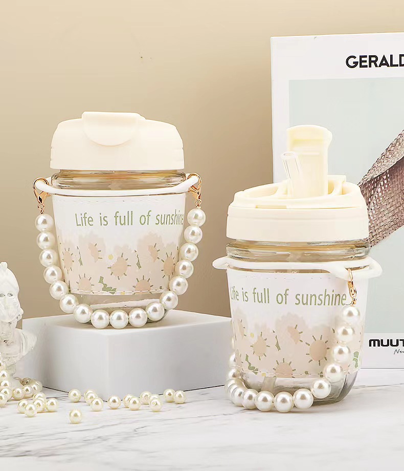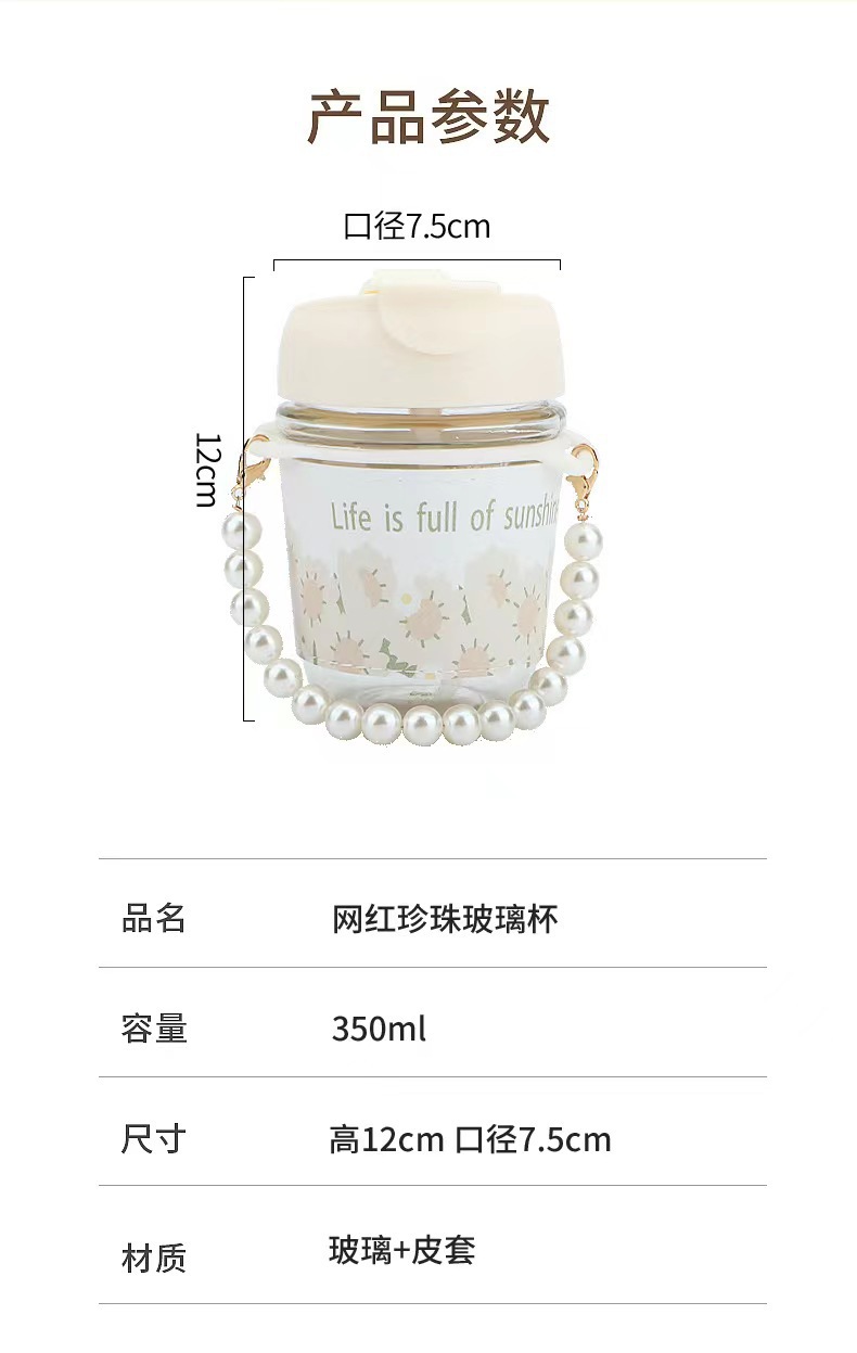 黛唯梵【水杯女手提珍珠杯伴手礼】郁金香杯子便携牛奶咖啡杯玻璃礼品吸管杯