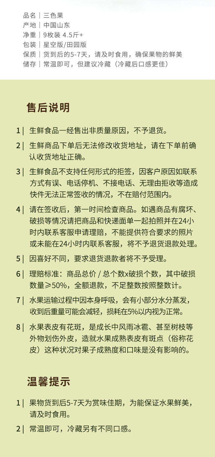 山东三色苹果 (全红富士/黄金富士/青森王林)4.5斤