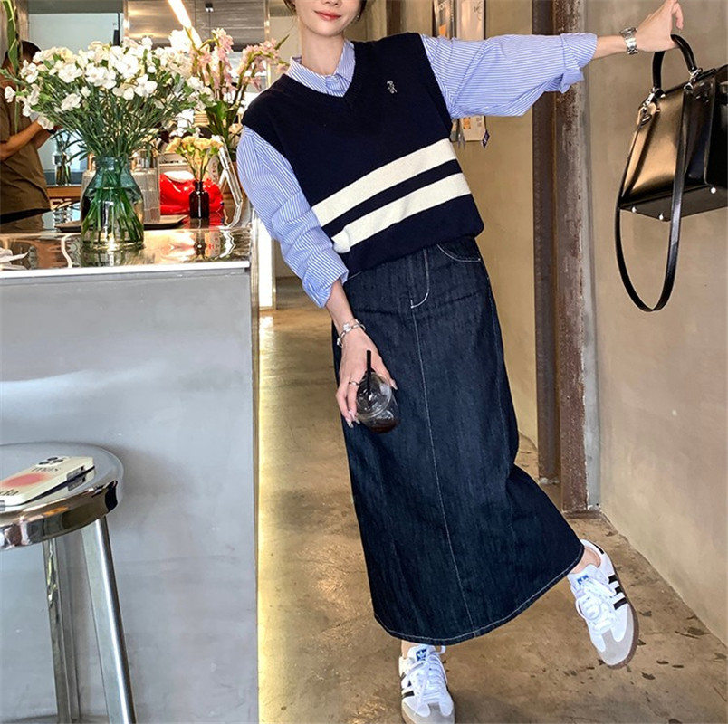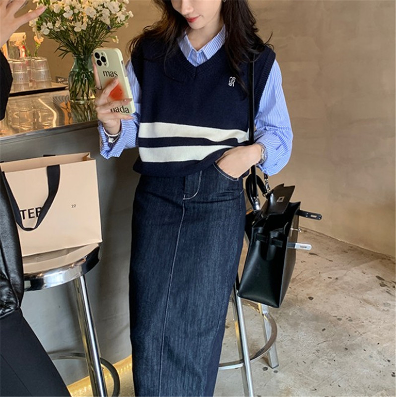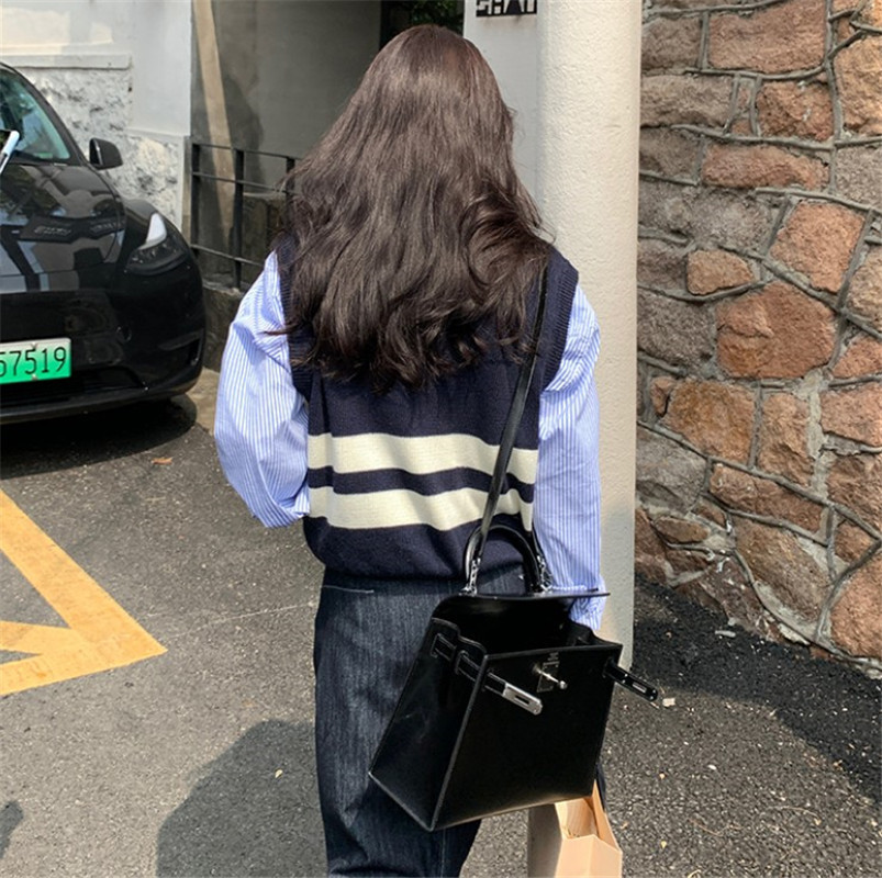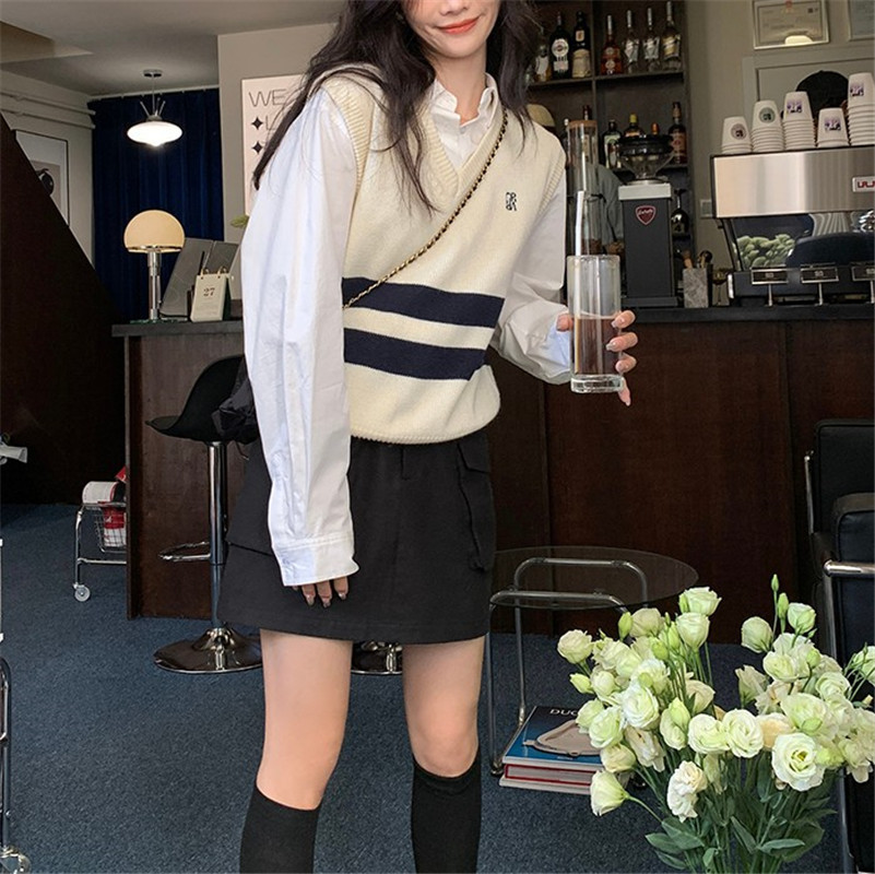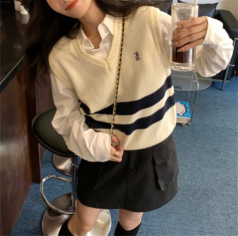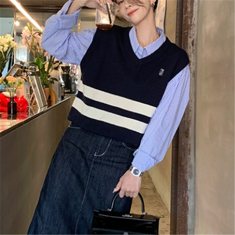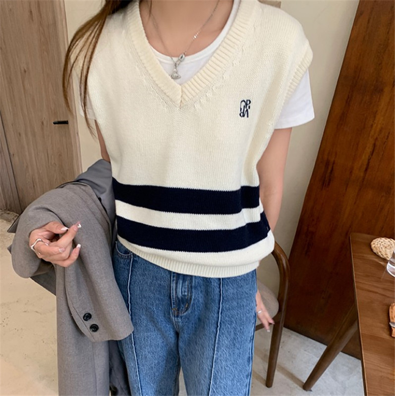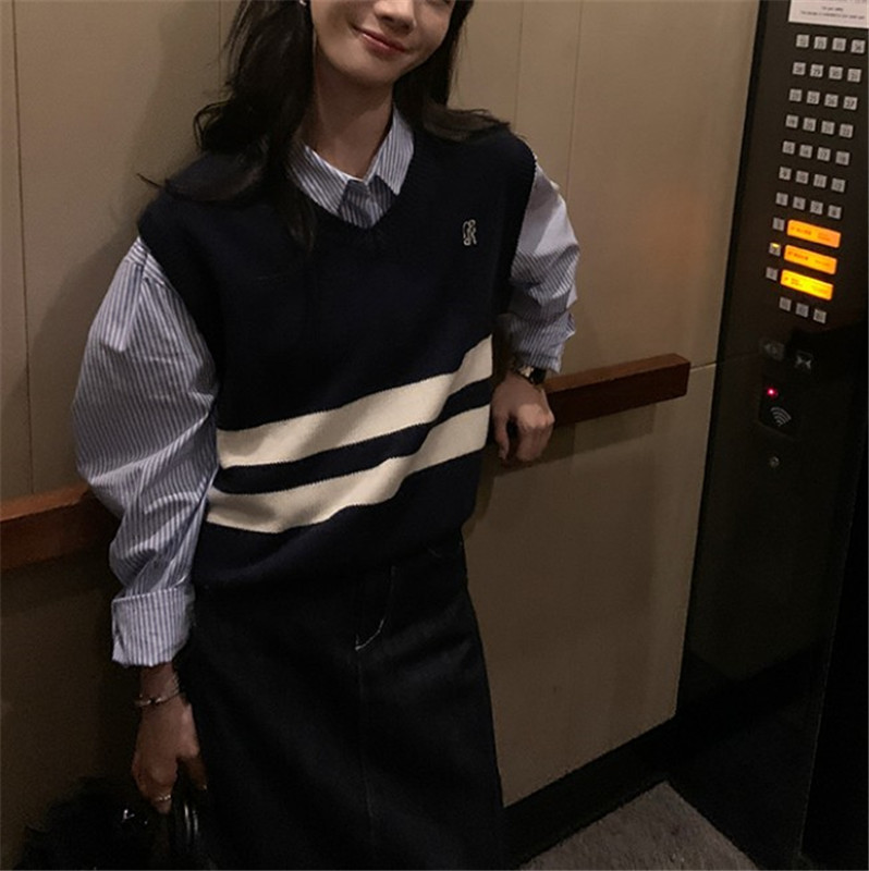 【学院风撞色V领针织马甲】秋冬百搭显瘦 叠穿毛衣 无袖针织上衣