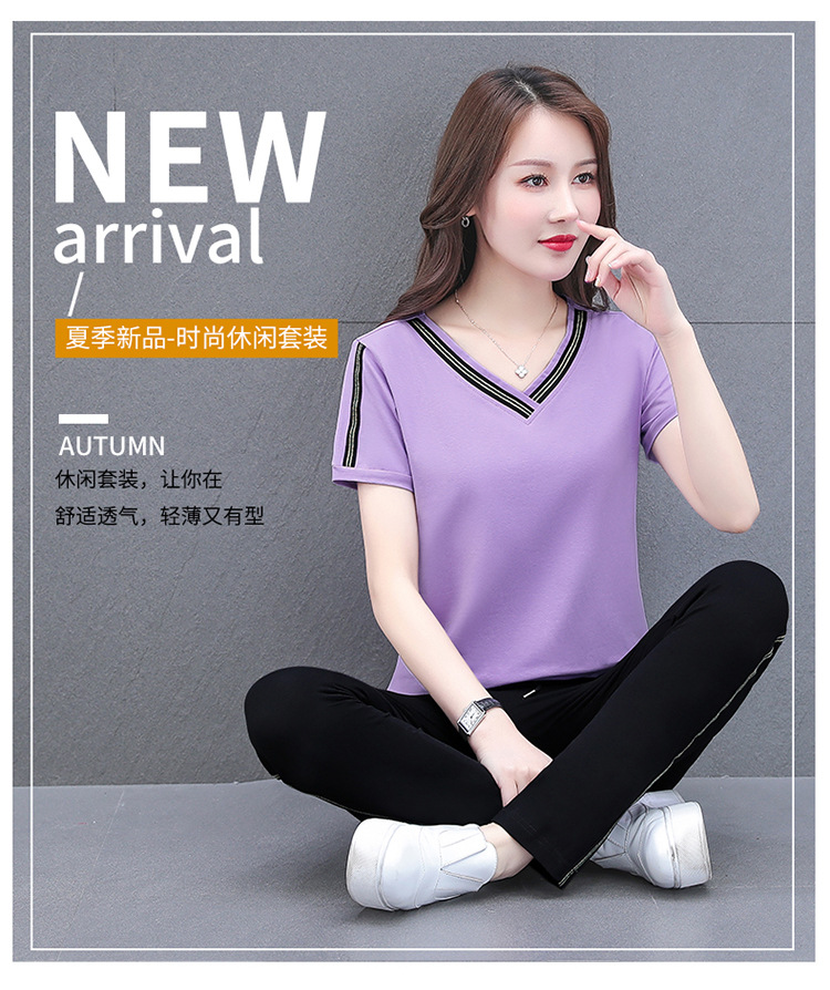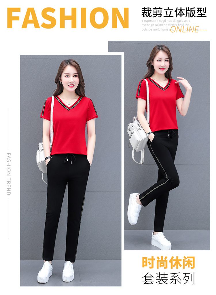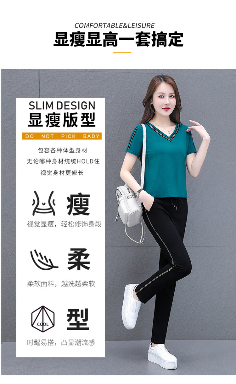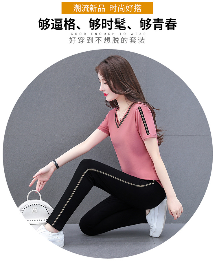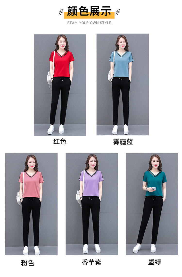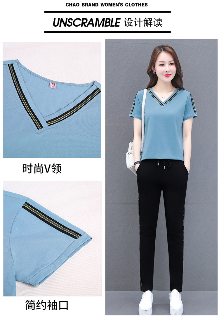 2022新款时尚休闲运动服套装女V领纯棉两件套TR-8303MDLY