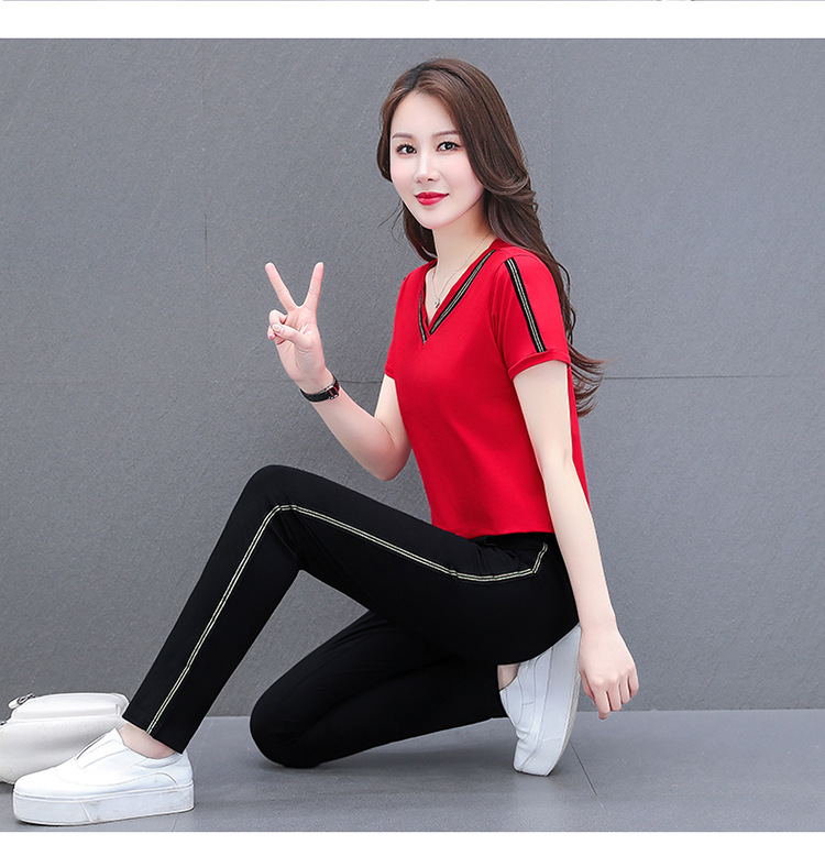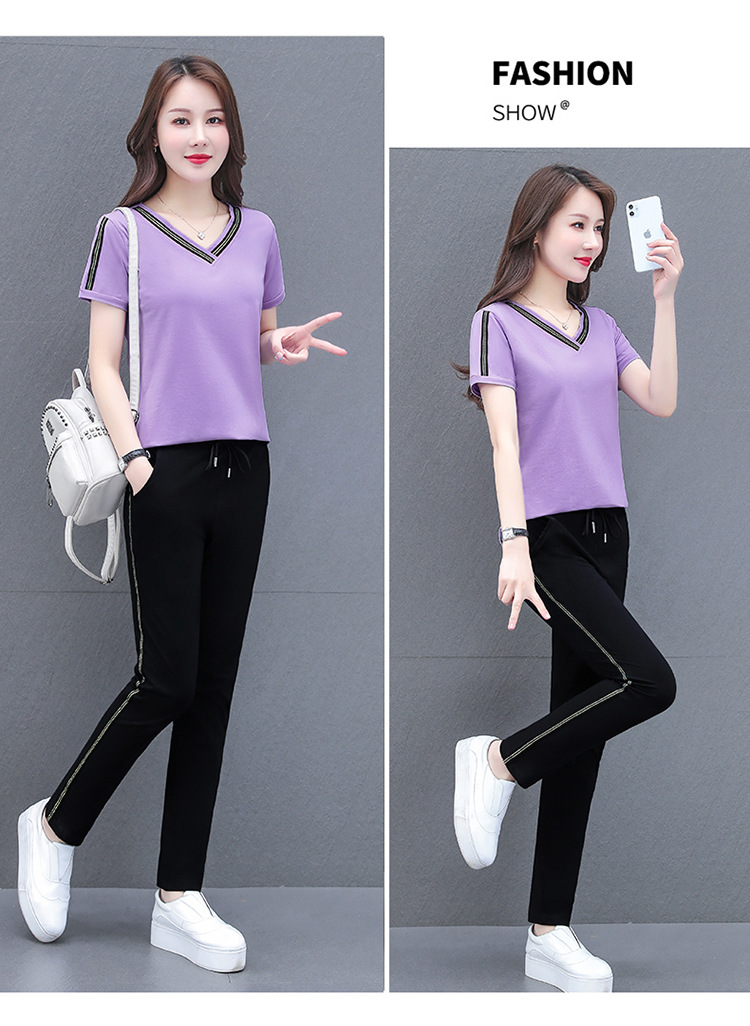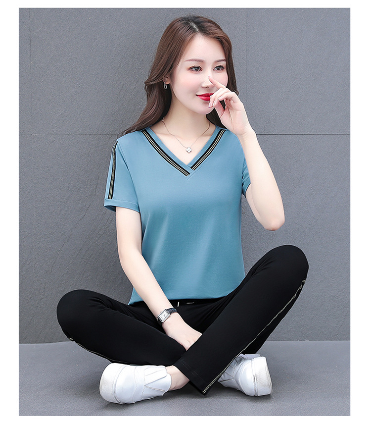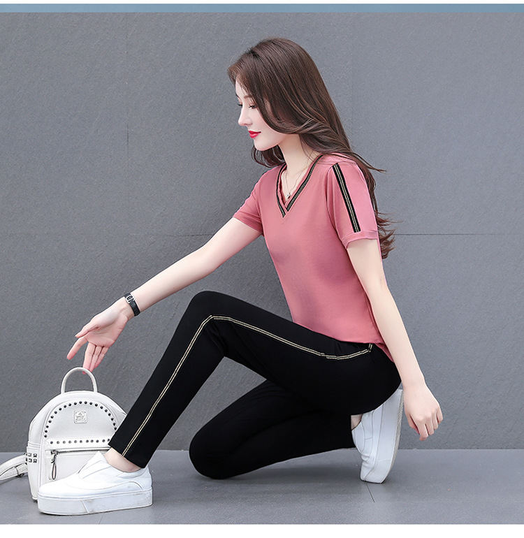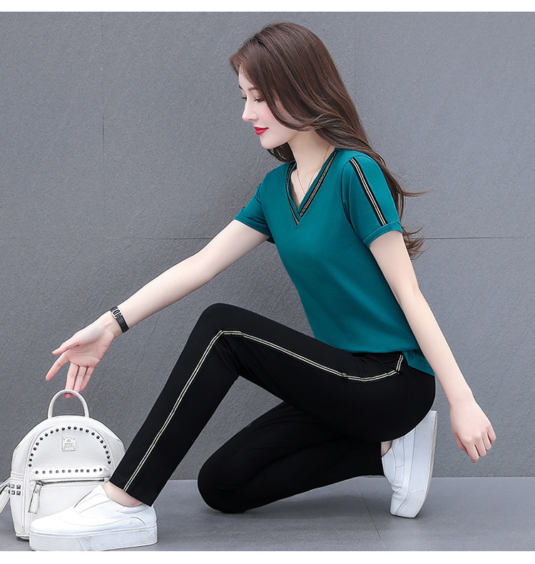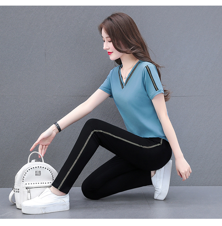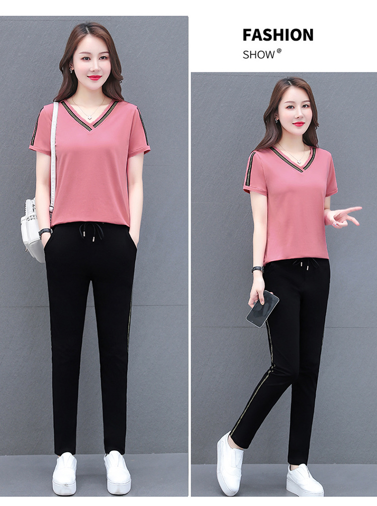 2022新款时尚休闲运动服套装女V领纯棉两件套TR-8303MDLY