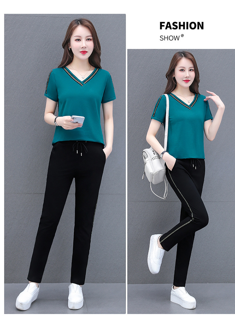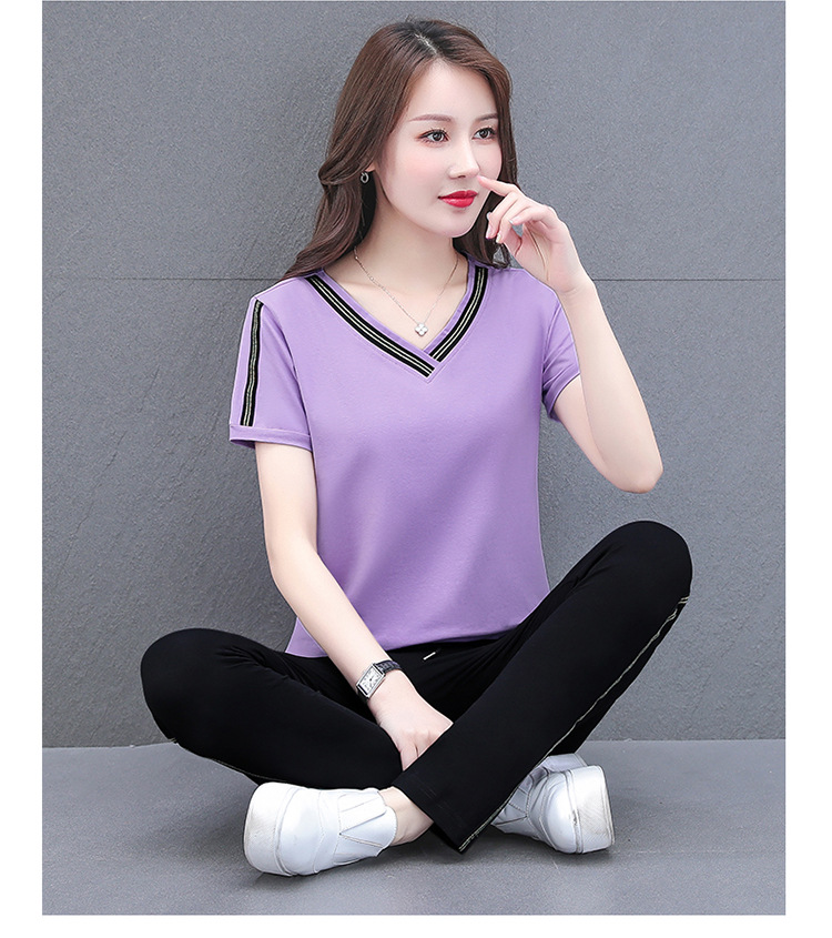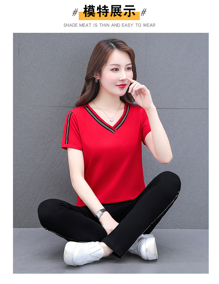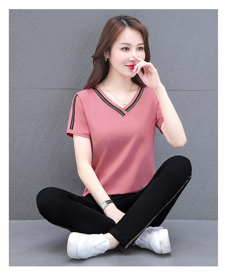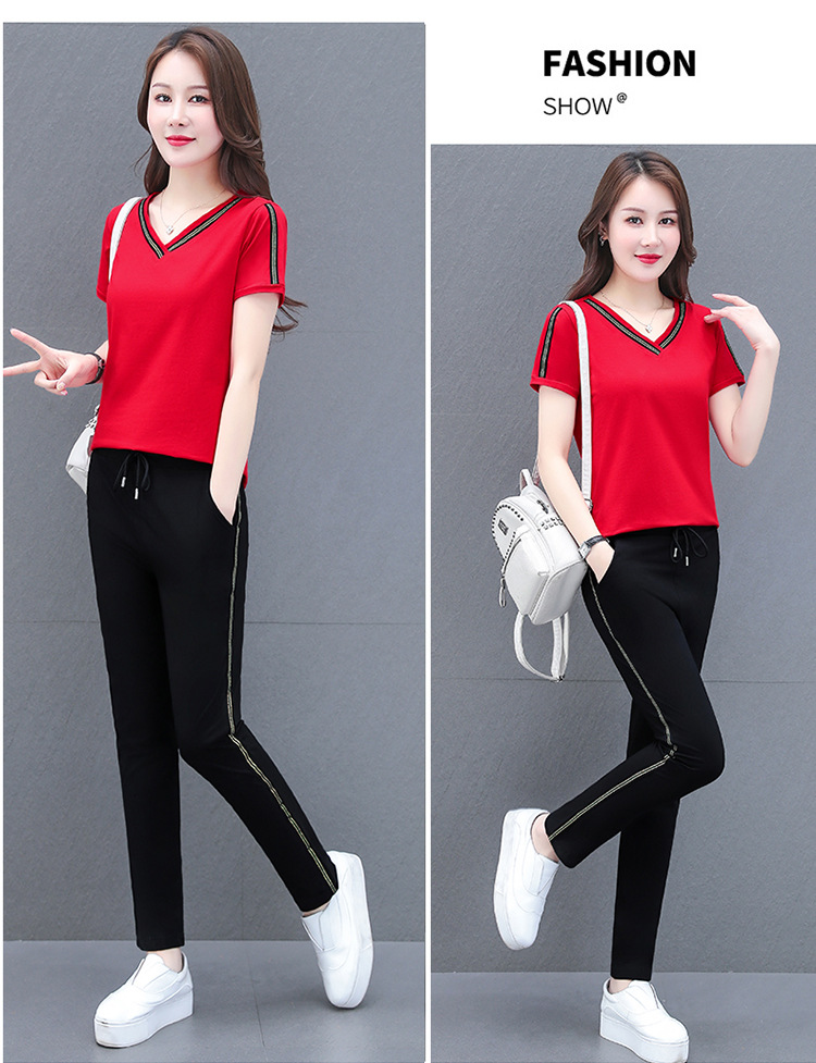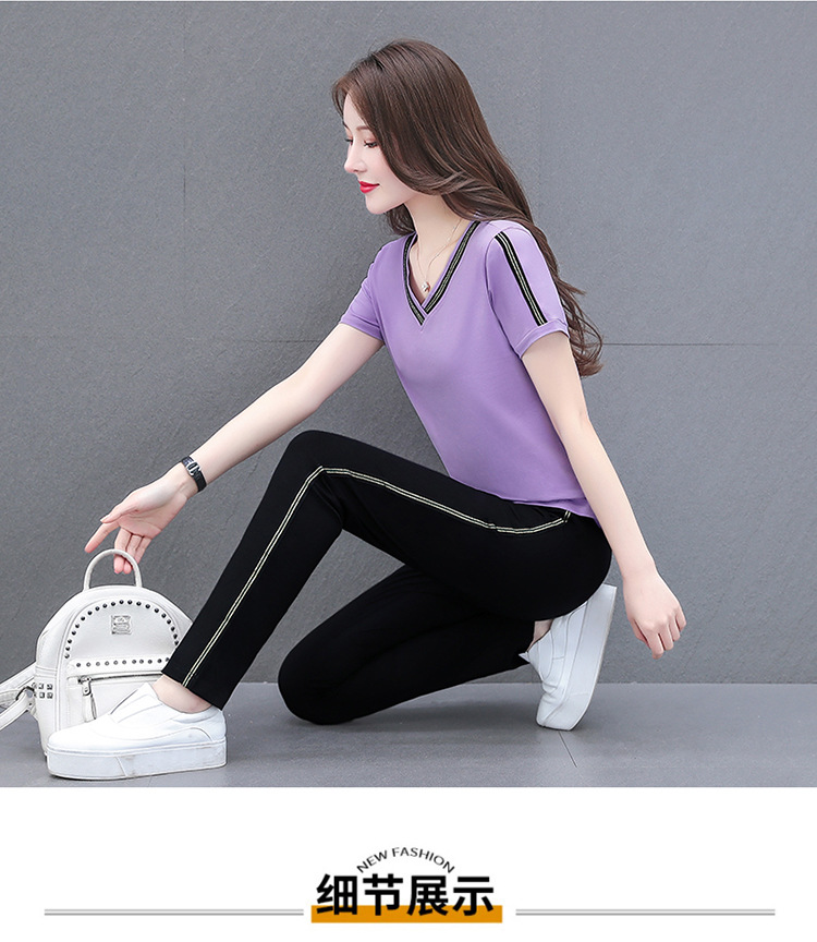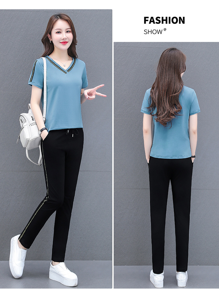 2022新款时尚休闲运动服套装女V领纯棉两件套TR-8303MDLY