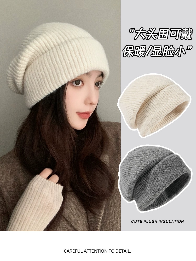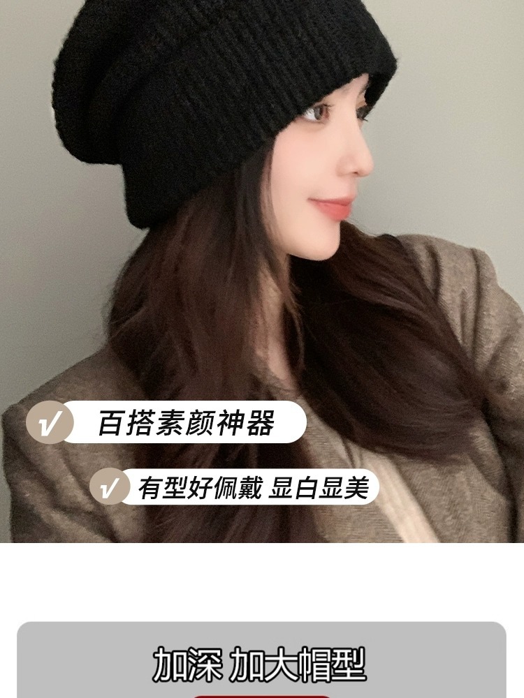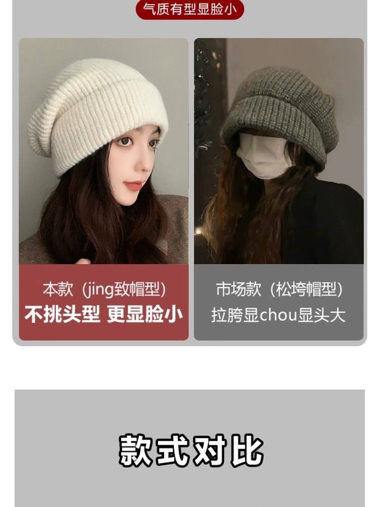 热卖中!春节不打烊【素颜出门神奇】红色帽子秋冬女保暖大头围显脸小冬季贝雷帽针织帽过年帽子,三合一针织堆堆帽。ry